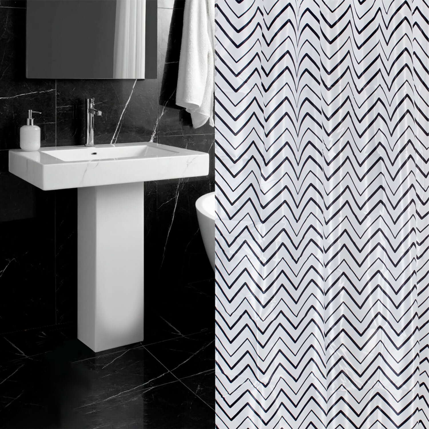 Шторка для ванной ПОЛИЭСТЕР, 180х180 см, кольца в комплекте, УЗОРЫ, PRIMILA (ПРИМИЛА) Код товара: 700078 489,24 ₽ Купить Производитель:PRIMILA Шторка для ванной комнаты PRIMILA – залог чистоты и уюта ванной комнаты. Используется для защиты пола, стен, мебели и зеркала от брызг. Эта шторка идеально впишется в любой интерьер. Шторка для ванной PRIMILA изготовлена из качественного, практичного, износостойкого полиэстера, что гарантирует отсутствие заломов и водостойкость. Быстро сохнет, не шуршит, без запаха и приятная на ощупь. Шторку можно стирать в стиральной машине. Гладить и отпаривать рекомендуется при температуре не выше 110 °С. В комплекте с шторкой идут 12 прочных полипропиленовых колец, которые подойдут под любой тип карниза. • Основные характеристики: - Размер: 180х180 см. - Цвет: белый с рисунком. - Материал: полиэстер. - Плотность шторки: 80 г/м2. Основные преимущества: - Устойчива к плесени. - Легко вписывается в любой интерьер. - Не требует сложного ухода. - Долговечна и практична в использовании. - Безопасна для здоровья.Производство: КитайРазмер (ДхШ): 180х180 смНаличие колец в комплекте: даВид принта: рисунокДизайн: УзорВодоотталкивающая: даОсобенности: Нет данныхПлотность материала: 80 г/м2Материал: полиэстерЦвет: белый/черныйВес: 358 грРазмер упаковки: 2.4 × 30.1 × 22 смОбъём: 0.0013 м3Промежуточная упаковка: 72 штТранспортная упаковка: 72 штШтрих-код: 4606224466880 Сертификат-1.jpg Сертификат-2.jpg