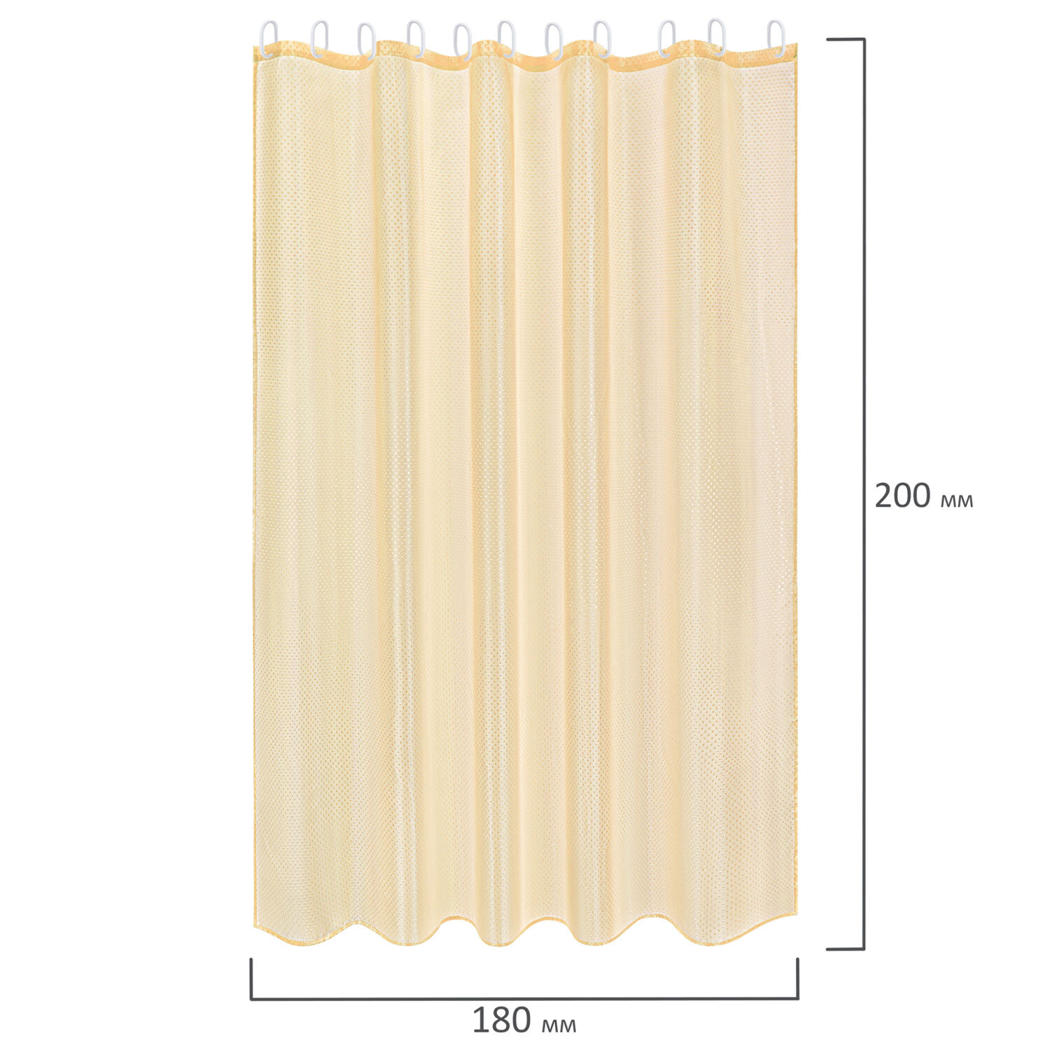 Шторка для ванной ПОЛИЭСТЕР, 180х200 см, кольца в комплекте, ЗОЛОТОЙ БРИЛЛИАНТ, PRIMILA (ПРИМИЛА) Код товара: 700095 514,98 ₽ Купить Производитель:PRIMILA Шторка для ванной комнаты PRIMILA – залог чистоты и уюта ванной комнаты. Используется для защиты пола, стен, мебели и зеркала от брызг. Эта шторка идеально впишется в любой интерьер. Шторка для ванной PRIMILA изготовлена из качественного, практичного, износостойкого полиэстера, что гарантирует отсутствие заломов и водостойкость. Быстро сохнет, не шуршит, без запаха и приятная на ощупь. Шторку можно стирать в стиральной машине. Гладить и отпаривать рекомендуется при температуре не выше 110 °С. В комплекте с шторкой идут 12 прочных полипропиленовых колец, которые подойдут под любой тип карниза. • Основные характеристики: - Размер: 180х200 см. - Цвет: бежевый. - Материал: полиэстер. - Плотность шторки: 90 г/м2. • Основные преимущества: - Устойчива к плесени. - Легко вписывается в любой интерьер. - Не требует сложного ухода. - Долговечна и практична в использовании. - Безопасна для здоровья.Производство: КитайРазмер (ДхШ): 180х200 смНаличие колец в комплекте: даВид принта: ФактурныйДизайн: Золотые бриллиантыВодоотталкивающая: даОсобенности: Фактурный материалПлотность материала: 90 г/м2Материал: полиэстерЦвет: бежевыйВес: 380 грРазмер упаковки: 2.8 × 30.8 × 25.5 смОбъём: 0.0015 м3Промежуточная упаковка: 72 штТранспортная упаковка: 72 штШтрих-код: 4606224467054 Сертификат-1.jpg Сертификат-2.jpg