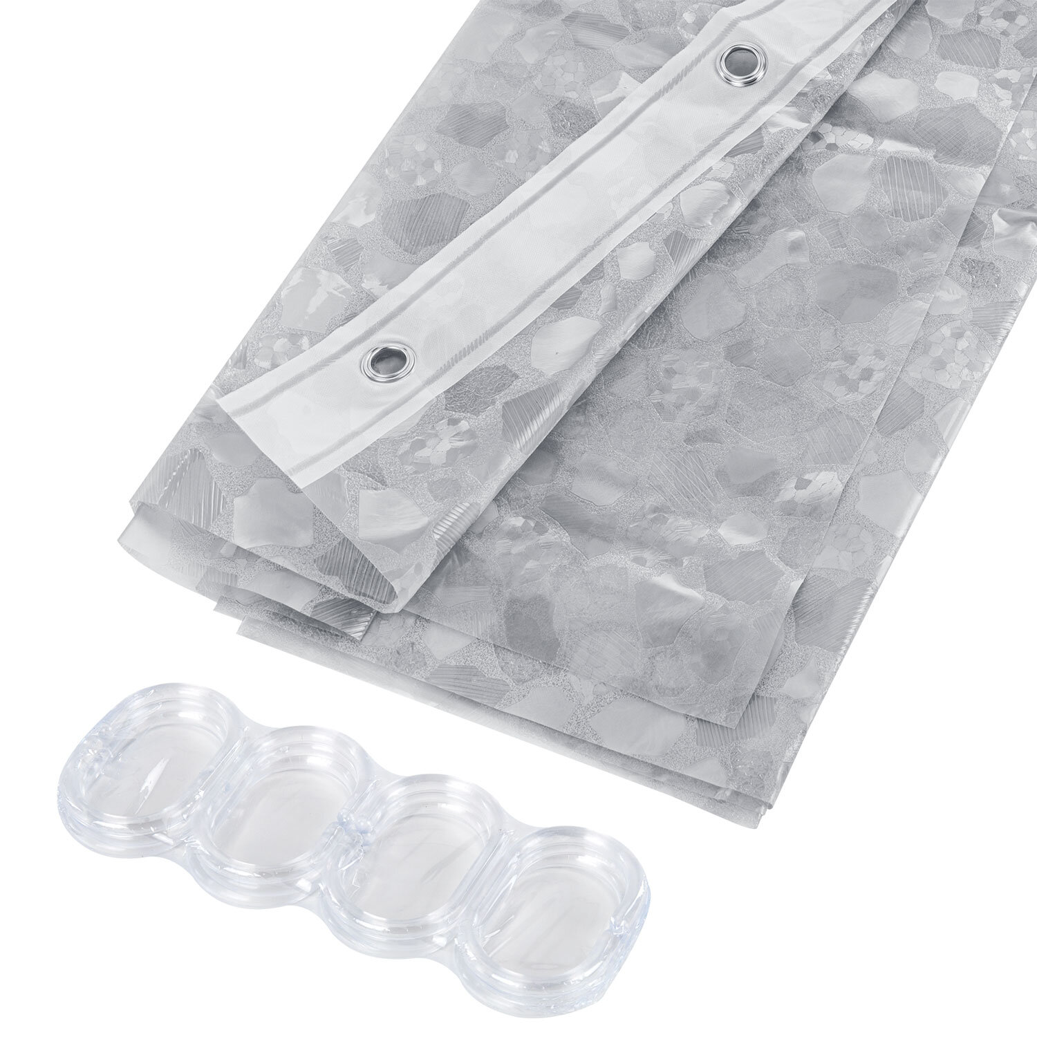 Шторка для ванной EVA, 180х200 см, кольца в комплекте, СЕРАЯ ЛЕДЯНАЯ СВЕЖЕСТЬ, PRIMILA (ПРИМИЛА) Код товара: 700101 374,75 ₽ Купить Производитель:PRIMILA Шторка для ванной комнаты PRIMILA – залог чистоты и уюта ванной комнаты. Используется для защиты пола, стен, мебели и зеркала от брызг. Эта шторка идеально впишется в любой интерьер. Шторка для ванной PRIMILA изготовлена из качественного, практичного, износостойкого, абсолютно нетоксичного материала EVA, что гарантирует отсутствие заломов и водонепроницаемость. Быстро сохнет, не шуршит, без запаха и приятная на ощупь. Шторка максимально проста в уходе – достаточно протереть ее влажной губкой. В комплекте со шторкой идут 12 прочных полипропиленовых колец, которые подойдут под любой тип карниза. • Основные характеристики: - Размер: 180х200 см. - Цвет: серый. - Материал: EVA. - Плотность шторки: 95 г/м2. • Основные преимущества: - Устойчива к плесени. - Легко вписывается в любой интерьер. - Не требует сложного ухода. - Долговечна и практична в использовании. - Безопасна для здоровья.Производство: КитайРазмер (ДхШ): 180х200 смНаличие колец в комплекте: даВид принта: ФактурныйДизайн: Серая ледяная свежестьВодонепроницаемая: даВодоотталкивающая: даОсобенности: 3D эффект / 3D кольцаПлотность материала: 95 г/м2Материал: EVAЦвет: серыйВес: 440 грРазмер упаковки: 2.9 × 30.4 × 22.3 смОбъём: 0.0017 м3Промежуточная упаковка: 72 штТранспортная упаковка: 72 штШтрих-код: 4606224467115 Сертификат-1.jpg Сертификат-2.jpg