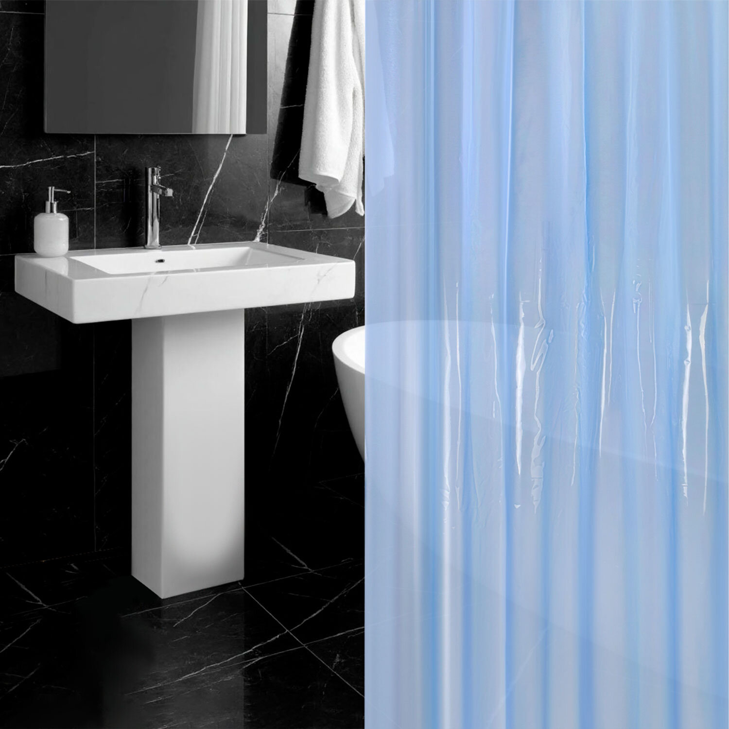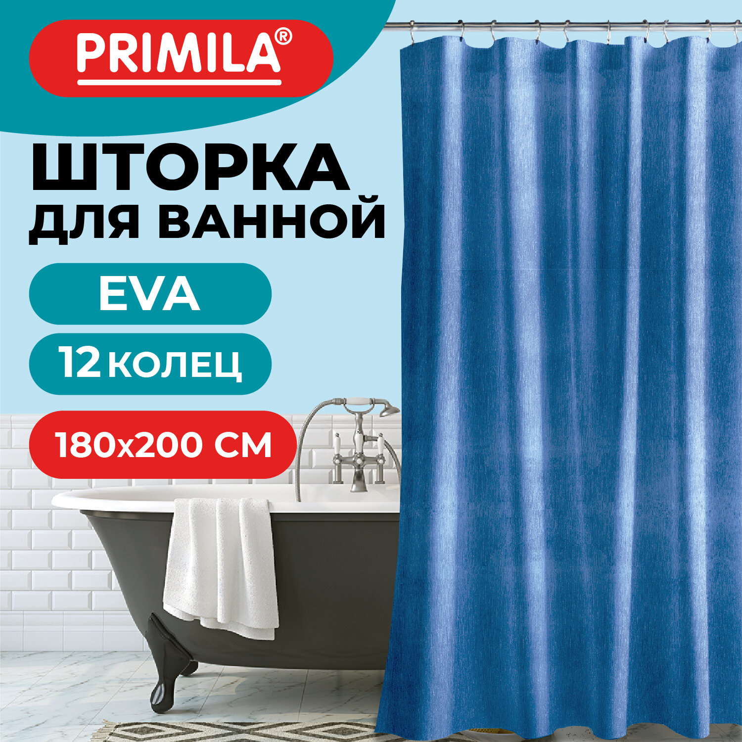 Шторка для ванной EVA, 180х200 см, кольца в комплекте, СИНИЕ ЛИНИИ, PRIMILA (ПРИМИЛА) Код товара: 700106 374,75 ₽ Купить Производитель:PRIMILA Шторка для ванной комнаты PRIMILA – залог чистоты и уюта ванной комнаты. Используется для защиты пола, стен, мебели и зеркала от брызг. Эта шторка идеально впишется в любой интерьер. Шторка для ванной PRIMILA изготовлена из качественного, практичного, износостойкого, абсолютно нетоксичного материала EVA, что гарантирует отсутствие заломов и водонепроницаемость. Быстро сохнет, не шуршит, без запаха и приятная на ощупь. Шторка максимально проста в уходе – достаточно протереть ее влажной губкой. В комплекте со шторкой идут 12 прочных полипропиленовых колец, которые подойдут под любой тип карниза. • Основные характеристики: - Размер: 180х200 см. - Цвет: синий. - Материал: EVA. - Плотность шторки: 95 г/м2. • Основные преимущества: - Устойчива к плесени. - Легко вписывается в любой интерьер. - Не требует сложного ухода. - Долговечна и практична в использовании. - Безопасна для здоровья.Производство: КитайРазмер (ДхШ): 180х200 смНаличие колец в комплекте: даВид принта: ФактурныйДизайн: Синие линииВодонепроницаемая: даВодоотталкивающая: даОсобенности: 3D эффект / 3D кольцаПлотность материала: 95 г/м2Материал: EVAЦвет: синийВес: 441 грРазмер упаковки: 2.9 × 30.4 × 23.6 смОбъём: 0.0015 м3Промежуточная упаковка: 72 штТранспортная упаковка: 72 штШтрих-код: 4606224467160 Сертификат-1.jpg Сертификат-2.jpg