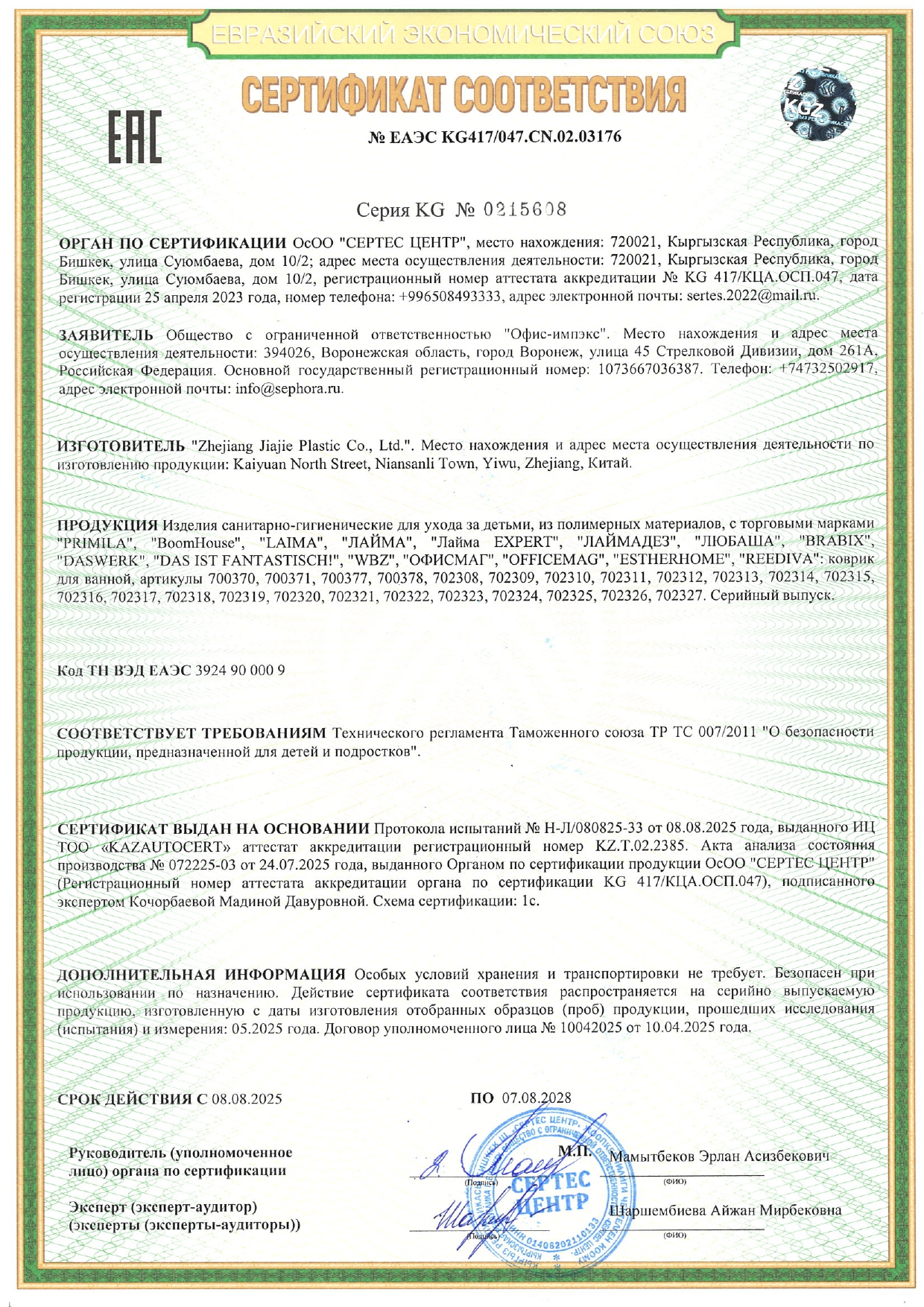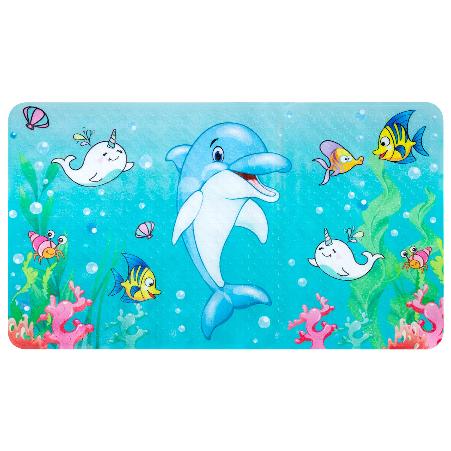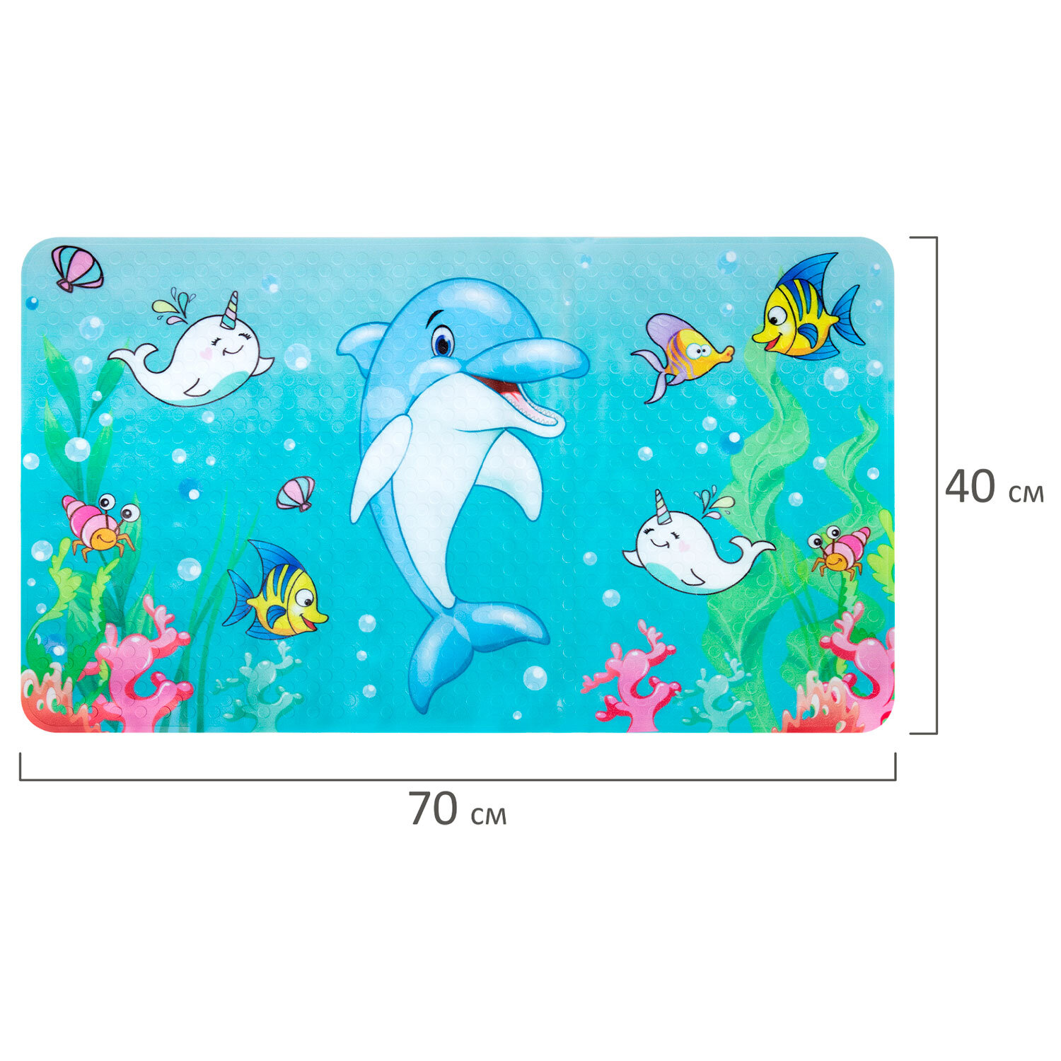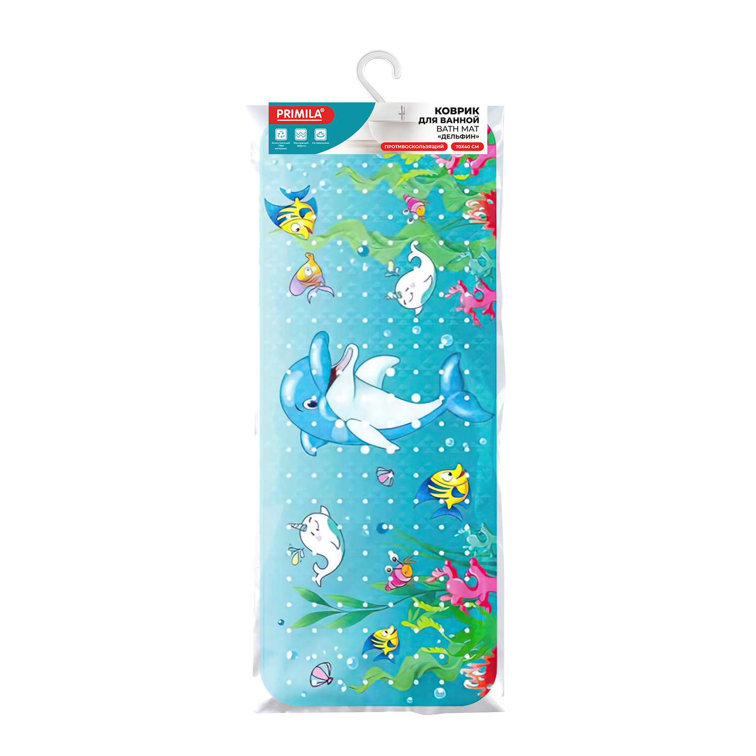 Коврик для ванны противоскользящий 70х40 см с печатью "Дельфин", ПВХ, присоски, PRIMILA (ПРИМИЛА) Код товара: 700370 590,34 ₽ Купить Производитель:PRIMILA Противоскользящий коврик для ванны PRIMILA с детским рисунком "Дельфин" обеспечит безопасность и радость во время купания. Предназначен для защиты от падений во время водных процедур. Коврик для ванны противоскользящий изготовлен из прочного ПВХ-материала. Рисунок нанесен методом УФ-печати, что делает его безопасным, ярким и долговечным. Размер: 70х40 см. Форма: прямоугольник с закругленными углами. Особенности: на одной их узких сторон имеется вырез под сливное отверстие. По всей задней поверхности коврика равномерно распределены присоски. Этот яркий и привлекательный коврик с милым детским рисунком не только украсит ванную комнату, но и создаст безопасное пространство для водных процедур. Специальная текстура коврика предотвращает скольжение. Удобные присоски на дне коврика обеспечивают крепкое сцепление с поверхностью ванны, гарантируя, что коврик останется на месте даже во время активных игр. Перед использованием наберите в ванну теплую воду, положите коврик и плотно прижмите каждую присоску, чтобы закрепить коврик. Поднимите его за края, чтобы убедиться, что он надежно закреплен. Коврик предназначен для использования на гладких, ровных, чистых и влажных поверхностях. Внимание! Коврик не прилипает к текстурированным, выложенным фактурной плиткой и неровным поверхностям! Не используйте масла и пену для ванн во избежание падения. Коврик легко очищается и быстро сохнет, что делает его идеальным выбором для повседневного использования.Производство: КитайНазначение: в ваннуРазмер коврика для ванной (ДхШ): 70х40 смРазмер коврика для туалета (ДхШ): - смТолщина: 0 ммКоличество в комплекте: 1 шт.Наличие рисунка: даЦвет: MixОсобенности: на присоскахСерия: ДетскийДизайн: ДельфинМатериал: ПВХВес: 666 грРазмер упаковки: 1.3 × 40.5 × 40.7 смОбъём: 0.002 м3Промежуточная упаковка: 24 штТранспортная упаковка: 24 штШтрих-код: 4606224474076 Файлы Сертификат-1.jpg Сертификат-2.jpg Сертификат-3.jpg Сертификат-4.jpg
