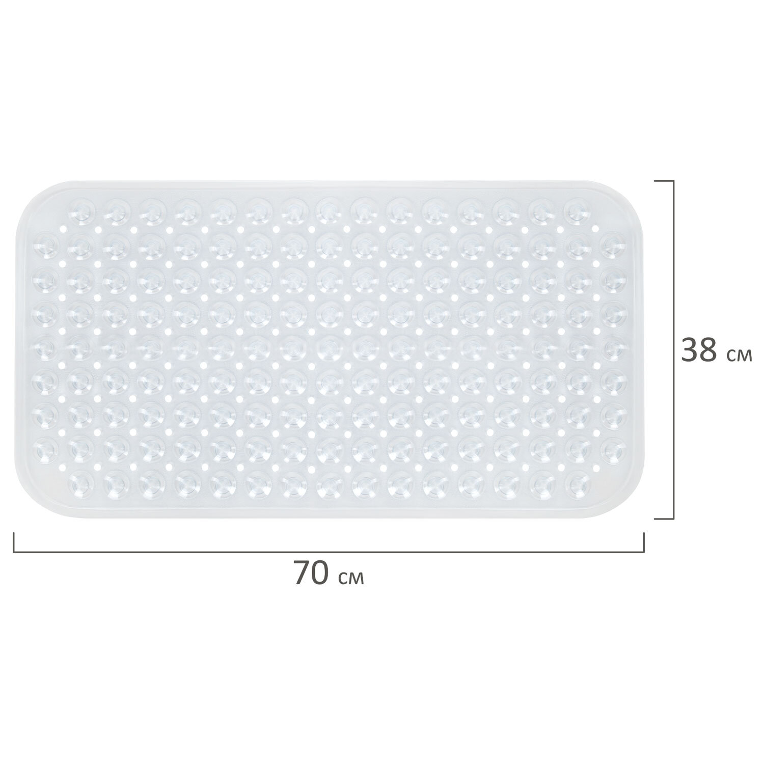 Коврик для ванны противоскользящий 70х38 см, "Полусферы", прозрачный, ПВХ, присоски, PRIMILA (ПРИМИЛА) Код товара: 700382 362,7 ₽ Купить Производитель:PRIMILA Противоскользящий коврик для ванны PRIMILA обеспечит безопасность и комфорт во время купания. Предназначен для защиты от падений во время водных процедур. Противоскользящий коврик для ванны изготовлен из прочного ПВХ-материала. Размер: 70х38 см. Форма: прямоугольник с закругленными углами. Рисунок: Полусферы. По всей задней поверхности коврика равномерно распределены присоски. Мягкая фактурная поверхность с полусферами обеспечивает дополнительный массажный эффект для ступней. Перед использованием наберите в ванну теплую воду, положите коврик и плотно прижмите каждую присоску, чтобы закрепить коврик. Поднимите его за края и убедитесь, что он надежно закреплен. Коврик предназначен для использования на гладких, ровных, чистых и влажных поверхностях. Внимание! Коврик не прилипает к текстурированным, выложенным плиткой и неровным поверхностям! Коврик легко очищается и быстро сохнет, что делает его идеальным выбором для повседневного использования.Производство: КитайНазначение: в ваннуРазмер коврика для ванной (ДхШ): 70х38 смРазмер коврика для туалета (ДхШ): - смТолщина: 0 ммКоличество в комплекте: 1 шт.Цвет: прозрачныйОсобенности: на присоскахСерия: СтандартДизайн: ПолусферыМатериал: ПВХВес: 582 грРазмер упаковки: 1.7 × 58.7 × 38.9 смОбъём: 0.0019 м3Промежуточная упаковка: 24 штТранспортная упаковка: 24 штШтрих-код: 4606224474199 Сертификат-1.jpg Сертификат-2.jpg Сертификат-3.jpg