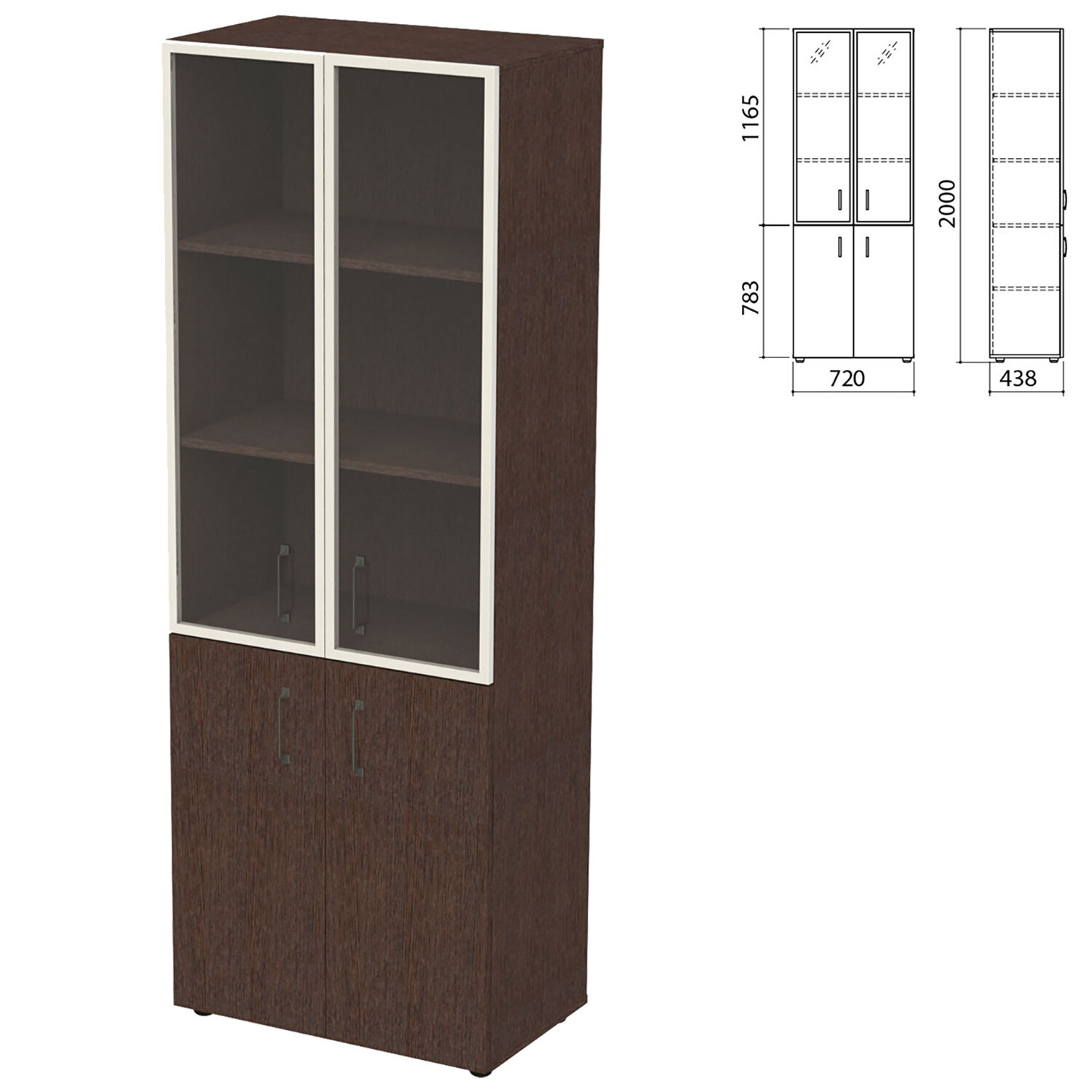 Шкаф закрытый со стеклом в алюминиевой рамке "Приоритет" 720х438х2000 мм, 4 полки, венге (КОМПЛЕКТ) Код товара: 982184 54 140,45 ₽ Купить Производитель:ПРИОРИТЕТ Шкаф предназначен для хранения документов, архивов и других предметов обихода. Оборудован регулируемыми опорами. Производство: РоссияФасады верхние - алюминиевая рамка 20х20мм, стекло матовое. Каркас и фасады нижние - ЛДСП 18 мм, кромка - ПВХ 0,4 мм.Полка (центральная) - ЛДСП 38 мм, кромка - ПВХ 0,4 мм.Задняя стенка - ДВП 4 мм.4 полки.Регулируемые опоры.Поставляется в разобранном виде.Ручка металл.В комплект входит крепеж и инструкция по сборке.Цвет - венге.Размер (ШхГхВ) - 720х438х2000 мм.Вес: 65,43 кгОбъём: 0.1377 м3Промежуточная упаковка: 1 штТранспортная упаковка: 1 шт Приложение-1.zip Приложение-2.pdf