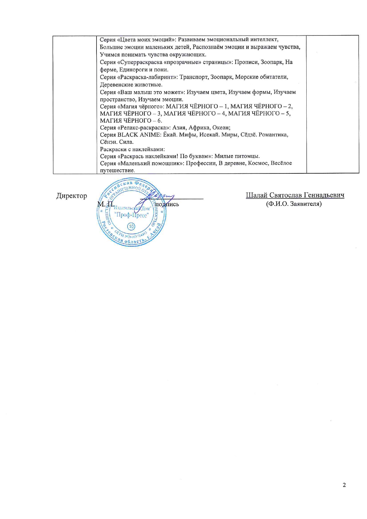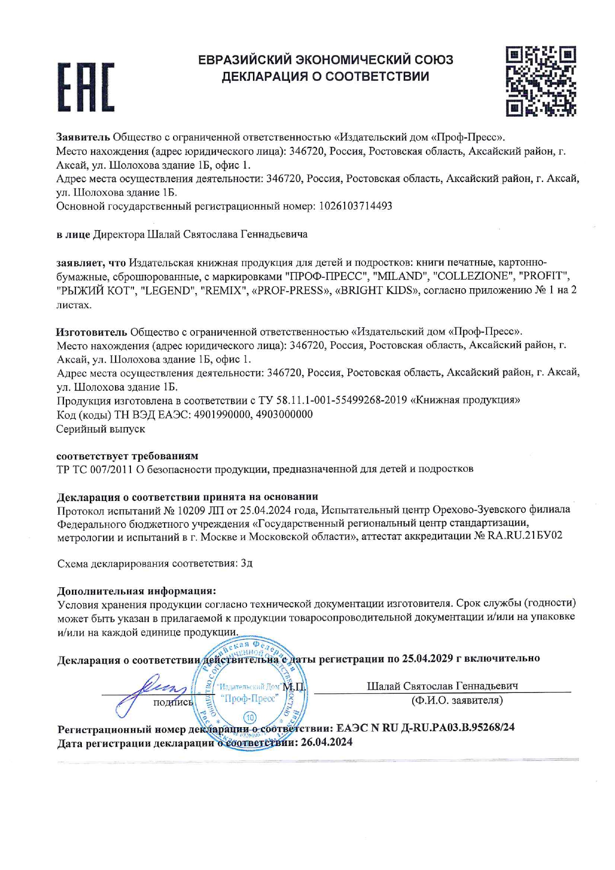 Книжка-раскраска С НАКЛЕЙКАМИ АССОРТИ, 210х297 мм, 12 стр., ПП Код товара: 690968 136,03 ₽ Купить Производитель:PROF-PRESS Новая серия раскрасок с наклейками обязательно понравится всем детям! Раскрашивать милых персонажей, различные узоры, надписи и дополнять странички яркими наклейками – это здорово и интересно. Книжка-раскраска поможет маленькому начинающему художнику хорошо разбираться в цветах и пополнить словарный запас. Раскраски способствуют развитию мелкой моторики, образного мышления и, разумеется, усидчивости и внимательности. Дизайн – ассорти без возможности выбора.Производство: РоссияФормат: 210 x 297Количество листов: 8С наклейками: даОбложка: нетПлотность обложки: 0 г/м2Внутренний блок: офсетСерия: Книжка-раскраскаСюжет: с наклейкамиПлотность внутренного блока: 0 г/м2Тип скрепления: скрепкаВес: 70 грРазмер упаковки: 0.2 × 26 × 20 смОбъём: 0.0001 м3Промежуточная упаковка: 32 штТранспортная упаковка: 32 штШтрих-код: 9785378309917 Файлы Сертификат-1.jpg Сертификат-2.jpg Сертификат-3.jpg Сертификат-4.jpg Сертификат-5.jpg