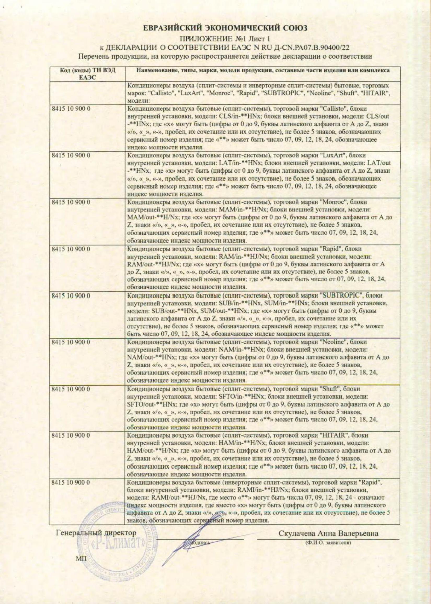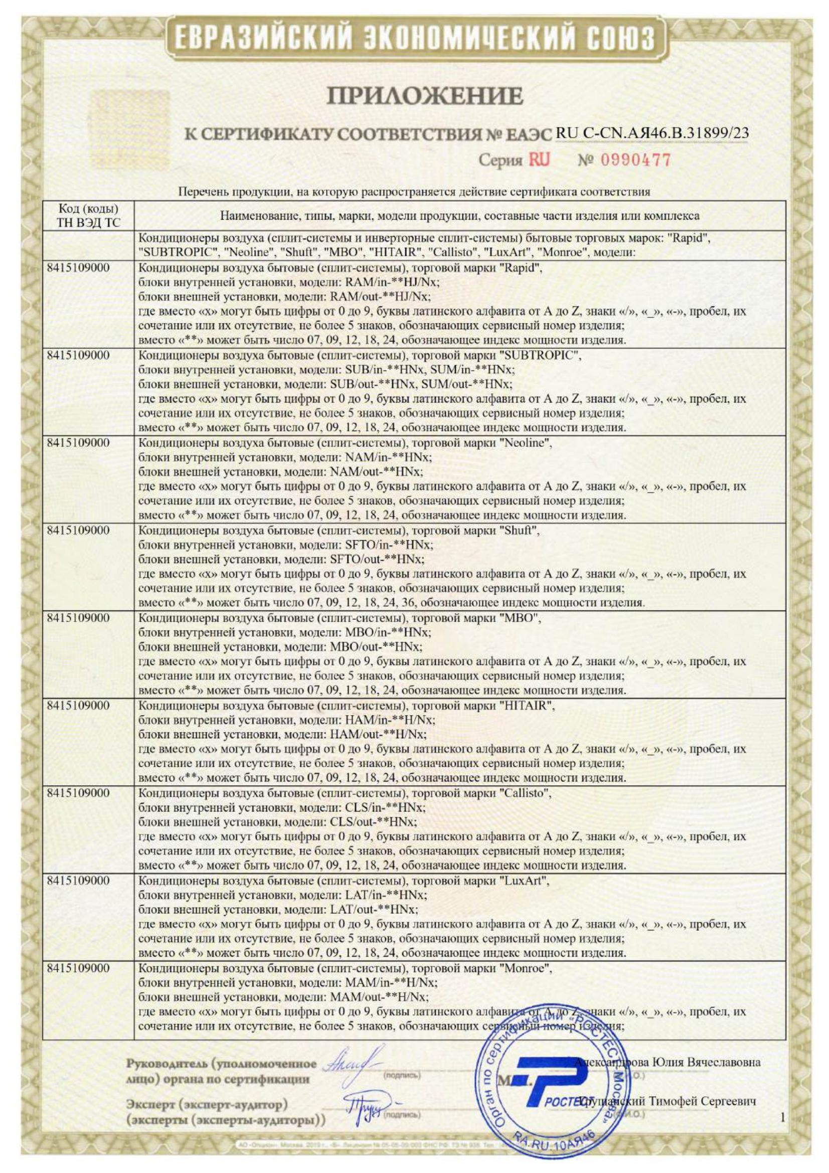 Сплит-система SHUFT SFTO-07HN1, внешний и внутренний блок, площадь помещения до 22 м2 Код товара: 456326 21 989,89 ₽ Купить Производитель:SHUFT Сплит-система SHUFT серии BERG – это удачное сочетание лаконичного дизайна и оптимального набора режимов, что делает ее одним из лучших предложений на рынке сплит-систем. Сплит-система SHUFT — это сочетание высокой энергоэффективности, надежности и современных технологий. Оснащенная мощными компрессорами GREE и GMCC, она обеспечивает стабильную работу и долговечность. Функция самоочистки I-Clean и антикоррозийное покрытие Golden Fin защищают устройство от внешних воздействий, продлевая срок службы. Режимы Turbo и Sleep позволяют быстро охладить или обогреть помещение, а также обеспечить комфорт во время сна. Энергоэффективность класса "А" и эко-режим делают эксплуатацию экономичной, снижая затраты на электроэнергию. Удобный пульт с подсветкой и таймером упрощает управление, а низкий уровень шума и надежная система защиты обеспечивают комфорт и безопасность. Производитель оставляет за собой право без предварительного уведомления вносить изменения в технические характеристики, комплектацию и конструкцию, не ухудшающие эксплуатационные характеристики изделия.Производство: КитайРежимы работы: вентиляция, обогрев, осушение, охлаждениеРекомендуемая площадь помещения: 22 м2Охлаждающая способность: 7000 BTUМощность (охлаждение): 2.2 кВтМощность (обогрев): 2.25 кВтПотребляемая мощность, охлаждение: 0.685 кВтПотребляемая мощность, обогрев: 0.623 кВтМаксимальная длина коммуникаций: 20 мУровень шума внутреннего блока: 24 дБ(А)Уровень шума внешнего блока: 50 дБ(А)Температура охлаждения: 16 °CТемпература обогрева: 32 °CМаксимальный расход воздуха: 500 м3/часКоличество скоростей вентилятора: 3Фильтр грубой очистки: даДисплей: даПульт дистанционного управления: даАвтоматическое поддержание температуры: даСамодиагностика неисправностей: даСамоочистка: даТаймер: даСерия: BERGПодключение: 220-240 В ~ 50 ГцВысота внутреннего блока: 250 ммШирина внутреннего блока: 700 ммГлубина внутреннего блока: 190 ммВысота внешнего блока: 420 ммШирина внешнего блока: 680 ммГлубина внешнего блока: 275 ммЦвет внутреннего блока: белыйЦвет внешнего блока: белыйВес внутреннего блока: 7 кгВес внешнего блока: 22 кгТип товара: сплит-системаВес: 27,54 кгРазмер упаковки: 1 × 1 × 198368.5 смОбъём: 0.1984 м3Промежуточная упаковка: 1 штТранспортная упаковка: 1 шт Файлы Приложение-1.pdf Сертификат-1.jpg Сертификат-2.jpg Сертификат-3.jpg Сертификат-4.jpg Сертификат-5.jpg Сертификат-6.jpg Сертификат-7.jpg Сертификат-8.jpg Сертификат-9.jpg Сертификат-10.jpg Сертификат-11.jpg Сертификат-12.jpg Сертификат-13.jpg
