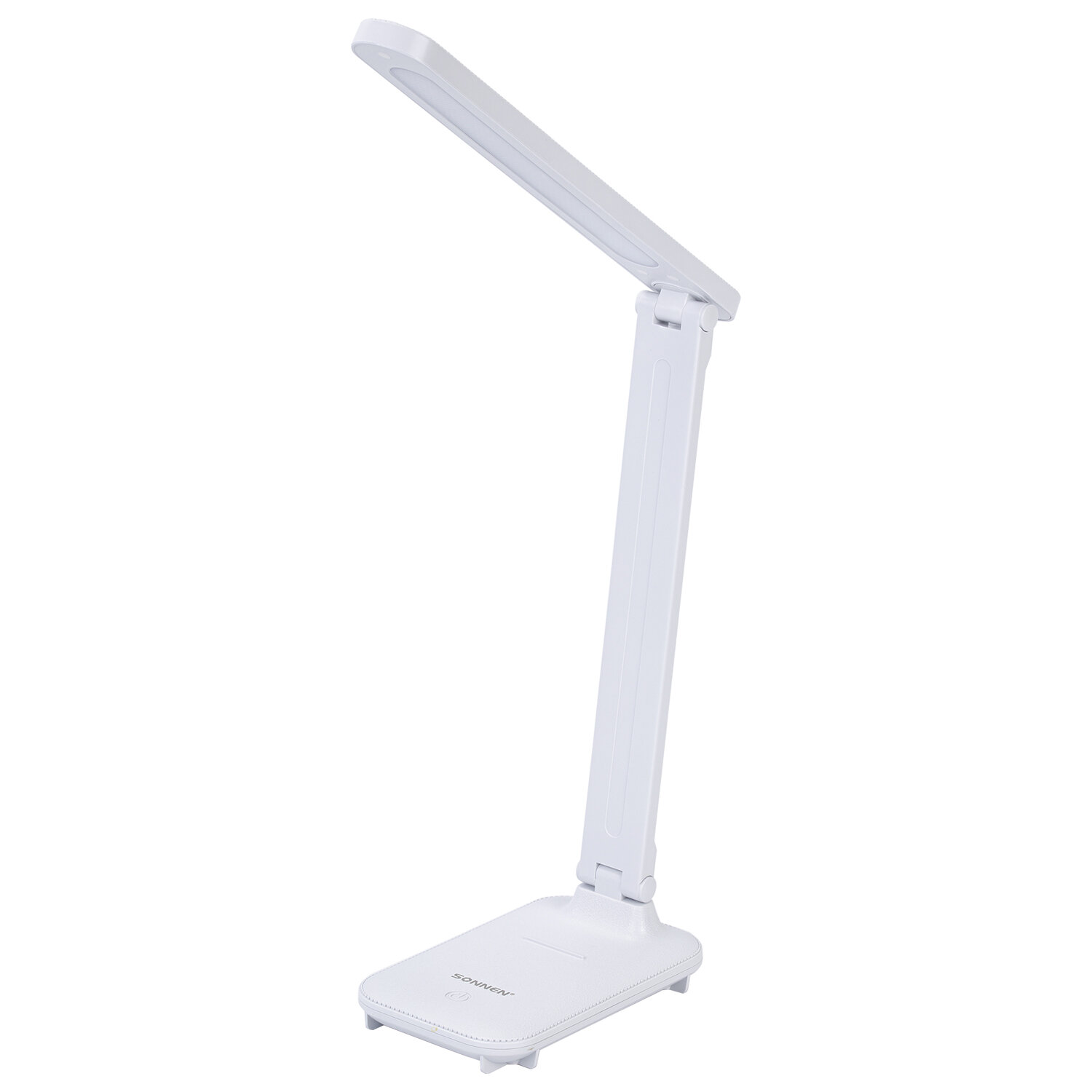 Настольная лампа / светильник беспроводная SONNEN PT-102, USB, LED, 3 Вт, 3 режима, белый Код товара: 238777 627,27 ₽ Купить Производитель:SONNEN Настольная лампа-светильник SONNEN PT-102 предназначена для освещения рабочего места в офисе или дома. Конструкция светильника обеспечивает произвольную регулировку направления света. Многофункциональный светодиодный светильник 3 Вт – идеальное решение для офиса и дома. Светильник оснащен 26 яркими диодами, что обеспечивает равномерное освещение и бережную нагрузку на глаза при длительной работе. Три режима цветовой температуры (тёплый, нейтральный, холодный свет) и бесступенчатая регулировка яркости позволяют настроить свет под любую задачу и время суток. Встроенный аккумулятор обеспечит бесперебойную работу светильника, а специальная подставка для телефона позволит удобно держать устройство под рукой.Производство: КитайТип лампы: светодиоднаяТип крепления: подставкаМощность: 3 ВтЦоколь: нетНазначение: универсальныйСерия: PT-10Цветность света: нейтральный белый - 3500-4500 К, теплый белый - 2700-3400 К, холодный белый - от 6100 и болееСветовой поток: 300 ЛюменКол-во режимов свечения: 3Источник света: 26 LEDИсточник питания: сеть, аккумуляторРасположение кнопки выключателя: на корпусеСенсорный выключатель: даПроизвольная регулировка направления подсветки: даОтсутствие мерцания и шумов: даСкладная конструкция: даВысота: 35 смДлина шнура: 1.2 мМатериал корпуса: пластикЦвет корпуса: белыйВес: 494 грРазмер упаковки: 5.8 × 34.5 × 10.2 смОбъём: 0.0025 м3Промежуточная упаковка: 40 штТранспортная упаковка: 40 штШтрих-код: 4606224465937 Сертификат-1.jpg Сертификат-2.jpg