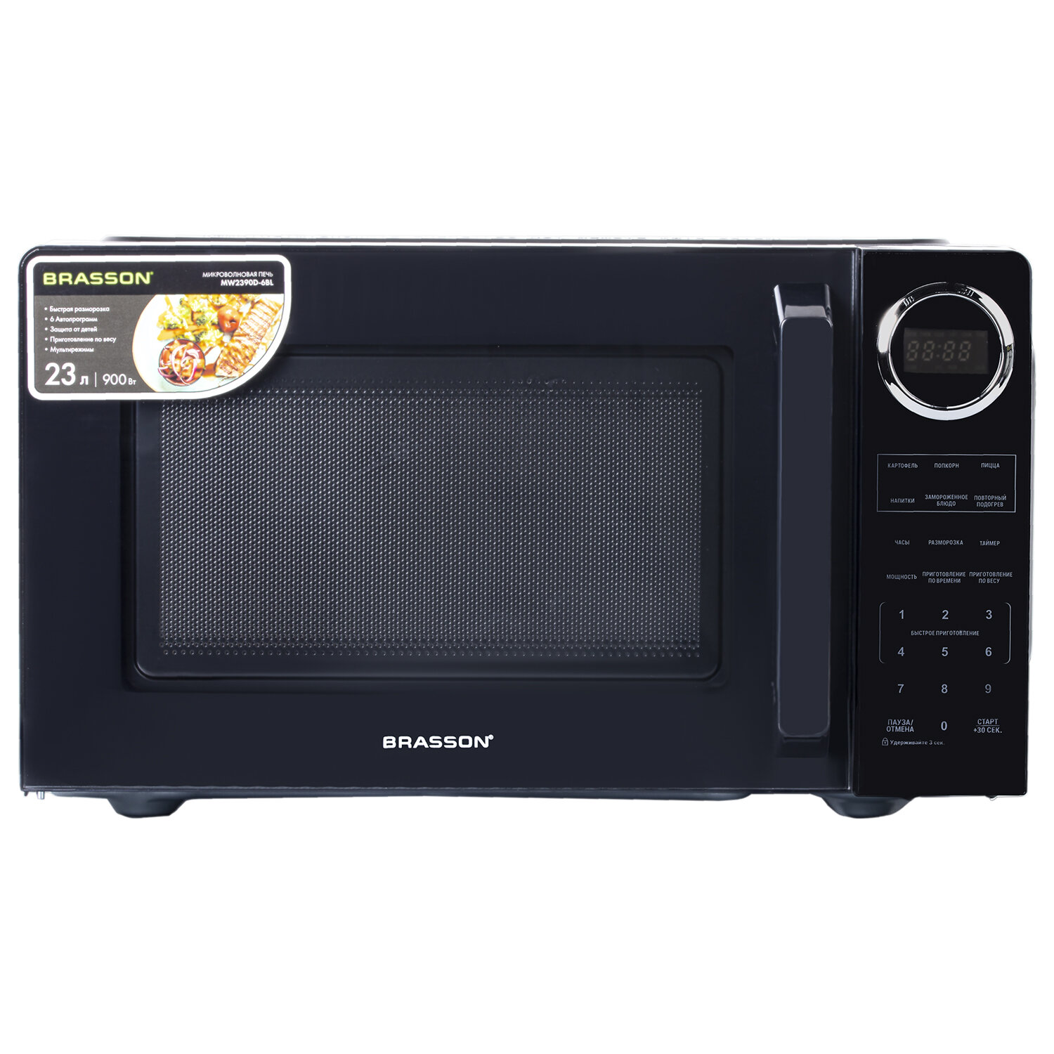 Микроволновая печь BRASSON (БРАССОН) MW2390D-6BL, 23 л, 900 Вт, сенсорное управление, дисплей, таймер, 6 АВТОПРОГРАММ, черная Код товара: 454980 8 725,66 ₽ Купить Производитель:BRASSON Микроволновая печь BRASSON MW2390D-6BL с легкостью выполнит все ваши кулинарные запросы. Мощная, вместительная и надежная – она надолго станет вашим главным помощником на кухне. Микроволновая печь BRASSON MW2390D-6BL имеет мощность 900 Вт и объем 23 литра. Печь вместительна, при этом не займет много места на кухне за счет эргономичной сборки. Вы можете выбрать более 11 режимов мощности, что позволяет сохранить сочность, а также равномерно разогреть блюда. На корпусе расположена интуитивно понятная сенсорная панель управления. С ее помощью вы можете регулировать подогрев, приготовления, разморозку продуктов и выбирать из 6 автоматических программ. Автопрограммы значительно упрощают процесс приготовления блюд и делают его более удобным и эффективным. Яркий дисплей показывает время, оставшееся время приготовления, номер автопрограммы и режим мощности. Диаметр внутренней тарелки – 270 мм: на ней можно готовить и разогревать крупные и объемные блюда. Микроволновая печь имеет функцию защиты от детей, которая предотвращает случайные включения изделия и помогает защитить ребенка от ожогов.Производство: КитайОбъем: 23 лМощность микроволн: 900 ВтУправление: электронноеВнутреннее покрытие: эмалированная стальФункционал: автоматическая разморозка, автоприготовление, режим размораживанияДисплей: даТаймер: 99 мин.Блокировка от детей: даВнутреннее освещение: даВстроенные часы: даНаличие звукового сигнала: даНаличие поворотного стола: даКоличество автоматических программ: 6 шт.Диаметр поддона: 27 смОткрывание дверцы: ручкаСерия: MWДизайн: MW2390D-6BLЦвет корпуса: черныйШирина: 27.6 смВысота: 37.5 смГлубина: 48.2 смВес (без упаковки): 11.8 кгВес: 13,1 кгРазмер упаковки: 29.3 × 51.5 × 42.9 смОбъём: 0.0647 м3Промежуточная упаковка: 1 штТранспортная упаковка: 1 штШтрих-код: 4606224441344 Файлы Сертификат-1.jpg Сертификат-2.jpg Сертификат-3.jpg Сертификат-4.jpg Сертификат-5.jpg Сертификат-6.jpg Сертификат-7.jpg