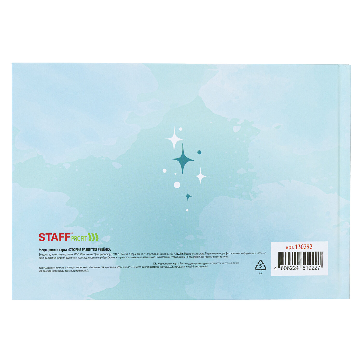 Медицинская карта "История развития ребенка", форма №112, 96 л., картон, А5 (218х153 мм), "Мишки" Код товара: 130292 340,9 ₽ Купить Производитель:STAFF Медицинская карта "История развития ребенка" STAFF является основным медицинским документом детских лечебно-профилактических учреждений, который ведется на каждого ребенка от рождения и до 18 лет. Бланк формата А5 (218х153 мм) формы 112 содержит 96 листов офсетной бумаги. Обложка из твердого картона с матовой ламинацией в сочетании с книжным переплетом обеспечивает изделию хорошую износоустойчивость. Горизонтальная ориентация. Медицинская карта предназначена для детских садов, школ и колледжей. Соответствует государственным стандартам документального ведения учета. Утвержден Министерством здравоохранения.Производство: РоссияТип: История развития ребенкаДизайн: МедведиГосударственная форма документа: 112Формат: А5Назначение: детский сад, колледжи, школаОриентация: горизонтальнаяКоличество листов: 96Тип скрепления: книжноеВнутренний блок: офсетМатериал обложки: твердая обложка с матовой ламинацией.Длина: 218 ммШирина: 153 ммИндивидуальная упаковка: даВес: 277 грРазмер упаковки: 1.1 × 22 × 15.4 смОбъём: 0.0005 м3Промежуточная упаковка: 20 штТранспортная упаковка: 20 штШтрих-код: 4606224519227 Файлы Приложение-1.pdf Сертификат-1.jpg Сертификат-2.jpg Сертификат-3.jpg Сертификат-4.jpg Сертификат-5.jpg Сертификат-6.jpg Сертификат-7.jpg Сертификат-8.jpg Сертификат-9.jpg Сертификат-10.jpg Сертификат-11.jpg Сертификат-12.jpg Сертификат-13.jpg Сертификат-14.jpg Сертификат-15.jpg Сертификат-16.jpg Сертификат-17.jpg Сертификат-18.jpg Сертификат-19.jpg Сертификат-20.jpg Сертификат-21.jpg Сертификат-22.jpg Сертификат-23.jpg Сертификат-24.jpg Сертификат-25.jpg Сертификат-26.jpg