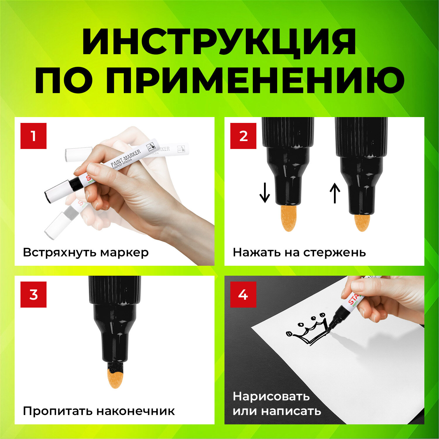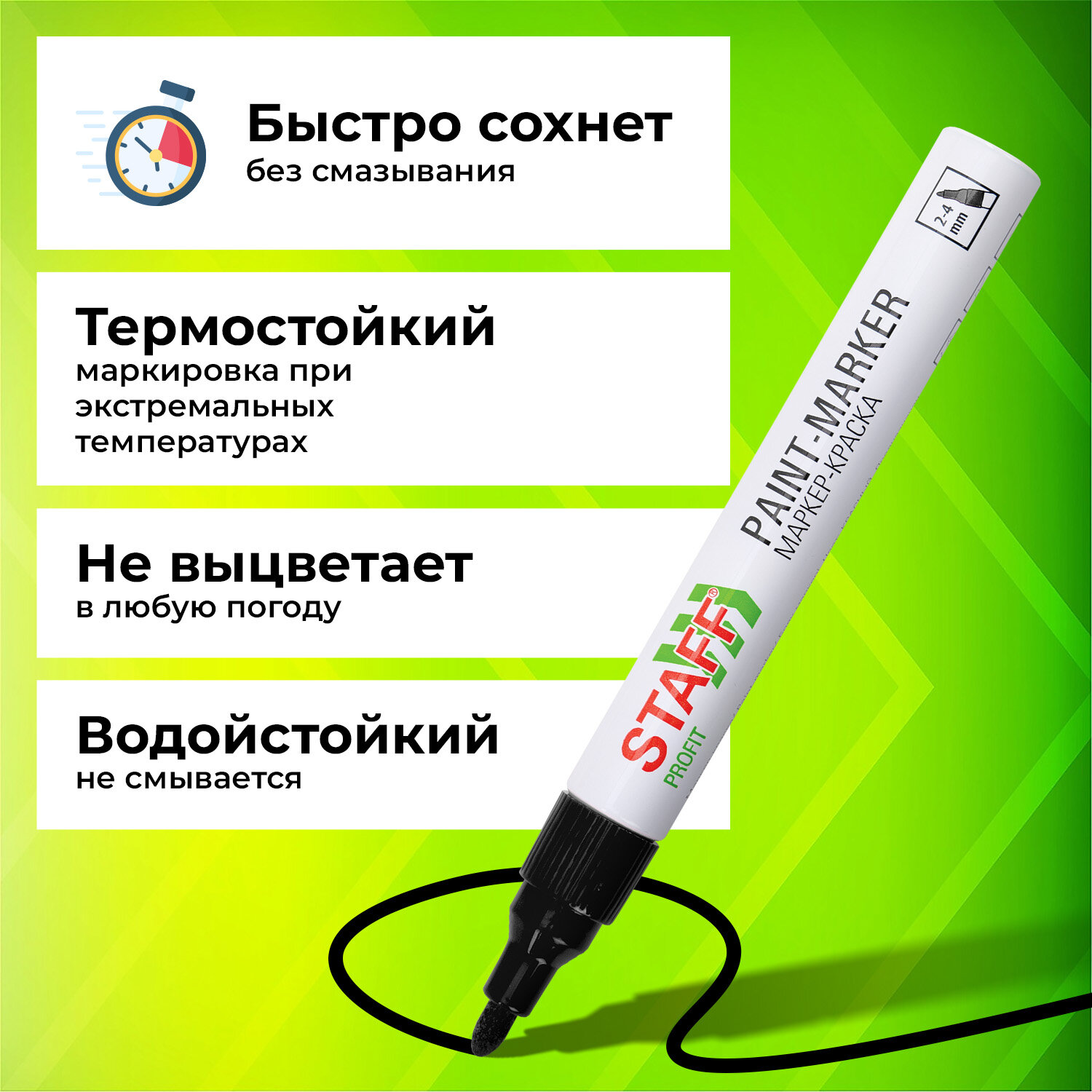 Маркер-краска лаковый (paint marker) 2-4 мм, ЧЕРНЫЙ, НИТРО-ОСНОВА, STAFF PROFIT, для любых поверхностей Код товара: 152578 85,78 ₽ Купить Производитель:STAFF Маркер-краска лаковый STAFF PROFIT предназначен для маркировки различных поверхностей: бетон, дерево, стекло, металл, резина, пластик. Подходит для использования как в промышленных, так и в бытовых целях. СПОСОБ ПРИМЕНЕНИЯ: 1. Перед использованием хорошо встряхнуть с закрытым колпачком. 2. Снять колпачок, надавить наконечником на поверхность. 3. Подождать 20 секунд, когда краска полностью пропитает наконечник. 4. После использования плотно закрыть колпачок. Высококачественные чернила черного цвета с лаковым эффектом идеально подходят для нанесения долговечной маркировки на любые поверхности. Благодаря усиленной формуле чернил краска ложится ровным слоем, полностью закрашивая поверхность. С помощью круглого прочного наконечника, выполненного из пористого акрила с шириной линии письма 2-4 мм, можно легко наносить широкие линии равномерным и однородным слоем. Быстросохнущие чернила предотвращают смазывание в процессе маркировки. После высыхания надписи становятся термо- и водостойкими, а также устойчивыми к выцветанию и механическому истиранию. Отлично подходит для маскировки бытовых дефектов, таких как царапины и сколы. Надежный помповый механизм подачи чернил предотвращает вытекание и разбрызгивание в процессе использования, а также преждевременное высыхание. Корпус маркера выполнен из алюминия, внутри находятся 2 металлических шарика для взбалтывания краски. Цвет колпачка соответствует цвету чернил. Это товар эконом-сегмента, поэтому он отличается привлекательной ценой. Товар обладает базовым набором характеристик и простой упаковкой, при этом полностью соответствует основным требованиям потребителей.Производство: КитайТип: маркер-краскаСерия: PROFITКоличество в комплекте: 1 шт.Цвет чернил: черныйФорма наконечника: круглыйШирина линии письма: 2-4 ммЧернила с лакирующим эффектом: даМатериал корпуса: алюминийВодостойкие: даУстойчивы к выцветанию: даБыстросохнущие чернила: даСрок годности: 60 месВес: 23 грРазмер упаковки: 1.5 × 14.7 × 1.5 смОбъём: 0.0001 м3Промежуточная упаковка: 12 штТранспортная упаковка: 576 штШтрих-код: 4606224462165 Файлы Сертификат-1.jpg Сертификат-2.jpg Сертификат-3.jpg Сертификат-4.jpg Сертификат-5.jpg Сертификат-6.jpg Сертификат-7.jpg Сертификат-8.jpg Сертификат-9.jpg Сертификат-10.jpg Сертификат-11.jpg Сертификат-12.jpg Сертификат-13.jpg Сертификат-14.jpg Сертификат-15.jpg Сертификат-16.jpg Сертификат-17.jpg Сертификат-18.jpg Сертификат-19.jpg Сертификат-20.jpg Сертификат-21.jpg Сертификат-22.jpg Сертификат-23.jpg Сертификат-24.jpg Сертификат-25.jpg Сертификат-26.jpg