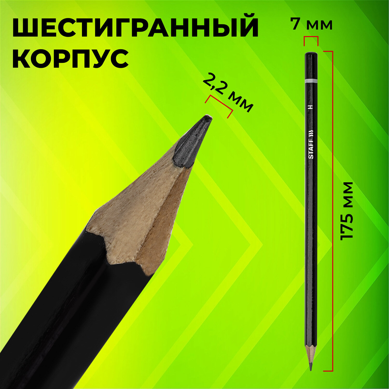 Карандаши чернографитные STAFF "College" BLP-254, НАБОР 6 шт., 2H-2B, черный корпус Код товара: 181254 255,93 ₽ Купить Производитель:STAFF Набор чернографитных карандашей STAFF "College" – универсален для дома, офиса и школы. Подходит для чертежей, письма и рисования. Карандаши изготовлены из дерева высокого качества. Имеют шестигранное сечение. Карандаши длиной 175 мм легко точатся и не крошатся. Набор состоит из карандашей различных степеней твердости: 2H – 1 штука, Н – 1 штука, НВ – 2 штуки, В – 1 штука и 2B – 1 штука. Диаметр грифеля – 2,2 мм. Выполнены в черном цвете. Поставляются заточенными.Производство: КитайТвердость: ассортиЗаточенный: даДиаметр грифеля: 2.2 ммКоличество карандашей в упаковке: 6 шт.Количество твердостей в наборе: 6Серия: CollegeФорма корпуса: шестиграннаяДлина карандаша: 175 ммМатериал корпуса: деревоЦвет корпуса: черныйДизайн: без дизайнаКоличество дизайнов в упаковке: 1 шт.Упаковка: ПП-пакетВес: 31 грРазмер упаковки: 0.7 × 17.4 × 4.1 смОбъём: 0.0001 м3Промежуточная упаковка: 120 штТранспортная упаковка: 480 штШтрих-код: 4606224155937 Сертификат-1.jpg Сертификат-2.jpg Сертификат-3.jpg