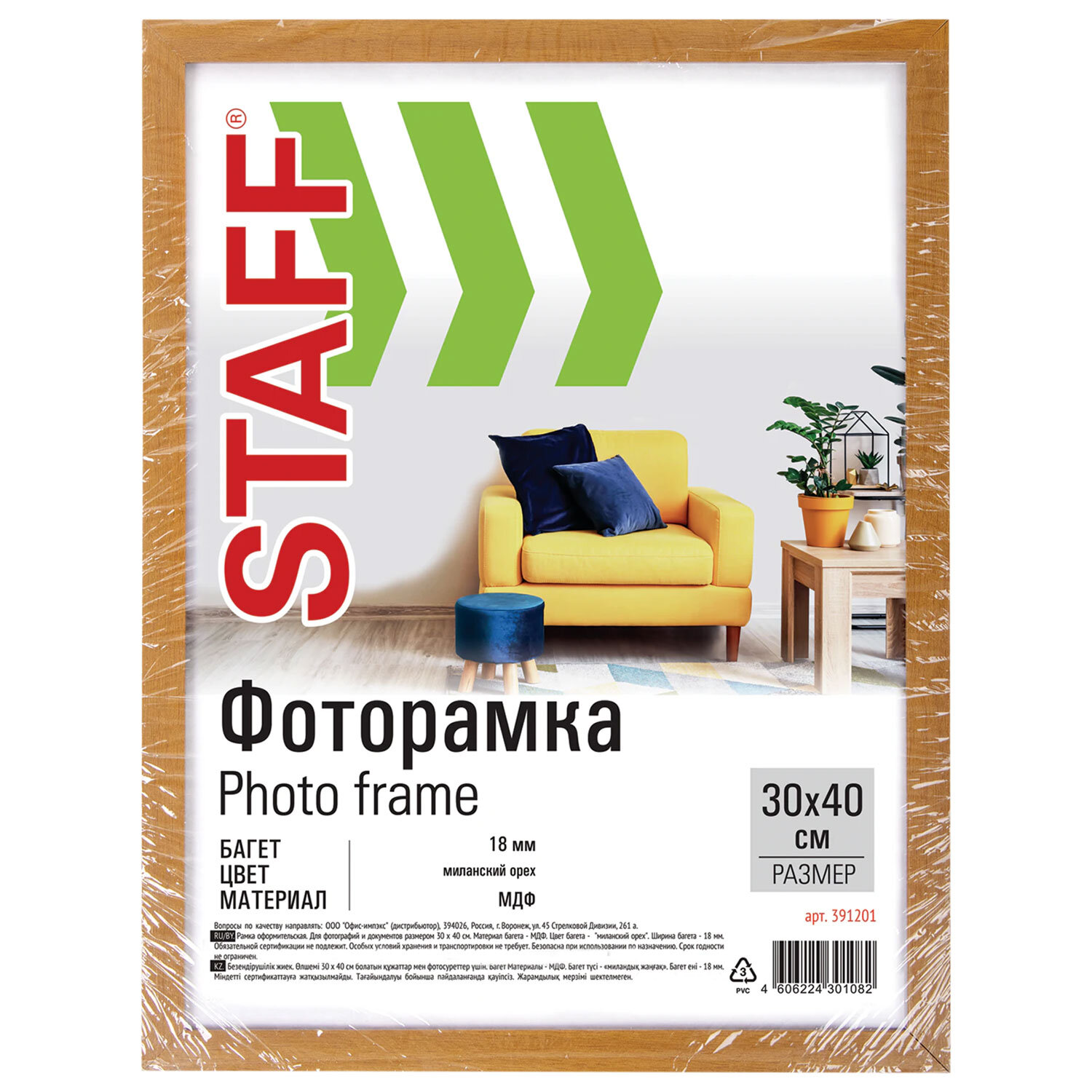 Рамка 30х40 см небьющаяся, STAFF "Grand", багет 18 мм, МДФ, цвет "миланский орех" Код товара: 391201 528,59 ₽ Купить Производитель:STAFF Рамка STAFF "Grand" с фотографиями, наградами, дипломами, сертификатами и другими ценными документами гармонично будет смотреться на стенах дома и офиса, салонов и предприятий, магазинов и различных учреждений. Рамка формата А3 (30х40 см) выполнена из материала МДФ в цвете "миланский орех", за счет чего отлично впишется в домашний и деловой интерьер. Имеется возможность вертикального и горизонтального подвеса. Ширина багета - 18 мм. Аккуратный вид достигается благодаря стеклянной вставке. Микрогофрокартон обеспечивает плотное прилегание и отсутствие в будущем деформации содержимого в рамке. Поставляется в термоусадочной пленке, которая гарантирует сохранность рамки при транспортировке, отсутствие сколов и потертостей. ВНИМАНИЕ! На данный момент производится перевод данного артикула со стекла на пластиковую вставку. На переходный период допускается поставка данной продукции как со стеклом, так и с пластиком.Производство: РоссияРазмер: 30х40 смНазначение: для фотографий, для дипломов, сертификатов, грамот, для студийных и оформительских работСерия: GrandДизайн: СовременныйМатериал рамки: МДФЦвет рамки: орехово-коричневыйВозможность размещения: вертикальное, горизонтальноеШирина багета: 18 ммМатериал вставки: стекло/пластиковая вставкаМатериал подложки: микрогофрокартонУпаковка: термоусадочная пленкаВес: 675 грРазмер упаковки: 1.1 × 42.9 × 32.8 смОбъём: 0.0021 м3Промежуточная упаковка: 15 штТранспортная упаковка: 15 штШтрих-код: 4606224301082 Файлы Сертификат-1.jpg Сертификат-2.jpg Сертификат-3.jpg Сертификат-4.jpg Сертификат-5.jpg Сертификат-6.jpg Сертификат-7.jpg Сертификат-8.jpg Сертификат-9.jpg Сертификат-10.jpg Сертификат-11.jpg Сертификат-12.jpg Сертификат-13.jpg Сертификат-14.jpg Сертификат-15.jpg Сертификат-16.jpg Сертификат-17.jpg Сертификат-18.jpg Сертификат-19.jpg Сертификат-20.jpg Сертификат-21.jpg Сертификат-22.jpg Сертификат-23.jpg Сертификат-24.jpg Сертификат-25.jpg Сертификат-26.jpg