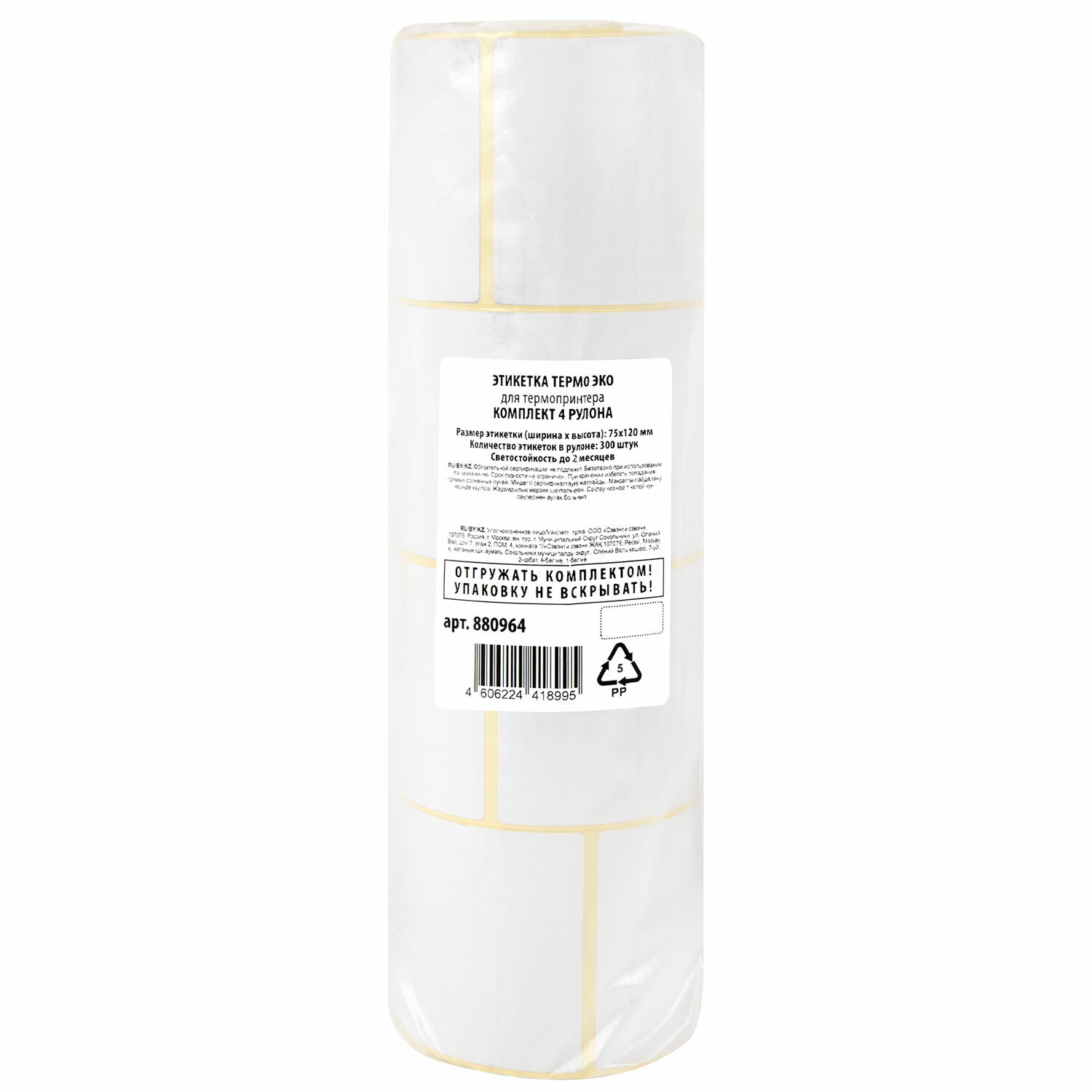 Этикетка ТермоЭко (75х120 мм), 300 этикеток в ролике, КОМПЛЕКТ 4 шт., светостойкость до 2 месяцев Код товара: 880964 1 042,33 ₽ Купить Производитель:ТЕРМОЭКО Самоклеящиеся этикетки предназначены для использования в термопринтерах. Термоэтикетка ЭКО изготавливается из бумаги без защитного покрытия, поэтому применяется в основном в магазинах непосредственно перед самой продажей товара или используется для маркировки продуктов с небольшим сроком хранения.Производство: РоссияТип этикетки: термо ЭКОРазмер этикетки (ШхВ): 75х120 ммДиаметр втулки: 40 ммКоличество этикеток в рулоне: 300 шт.Диаметр ролика: 92 ммСерия: ЭкоЦвет: белыйСветостойкость до: 2 месяцевТип подложки: крафтТип клея: каучуковыйВес: 1,68 кгРазмер упаковки: 9.3 × 31.1 × 9.3 смОбъём: 0.0029 м3Промежуточная упаковка: 9 штТранспортная упаковка: 9 штШтрих-код: 4606224418995 Файлы Сертификат-1.jpg Сертификат-2.jpg Сертификат-3.jpg Сертификат-4.jpg Сертификат-5.jpg Сертификат-6.jpg Сертификат-7.jpg Сертификат-8.jpg Сертификат-9.jpg Сертификат-10.jpg Сертификат-11.jpg Сертификат-12.jpg Сертификат-13.jpg Сертификат-14.jpg Сертификат-15.jpg Сертификат-16.jpg Сертификат-17.jpg Сертификат-18.jpg Сертификат-19.jpg Сертификат-20.jpg Сертификат-21.jpg Сертификат-22.jpg Сертификат-23.jpg Сертификат-24.jpg Сертификат-25.jpg Сертификат-26.jpg