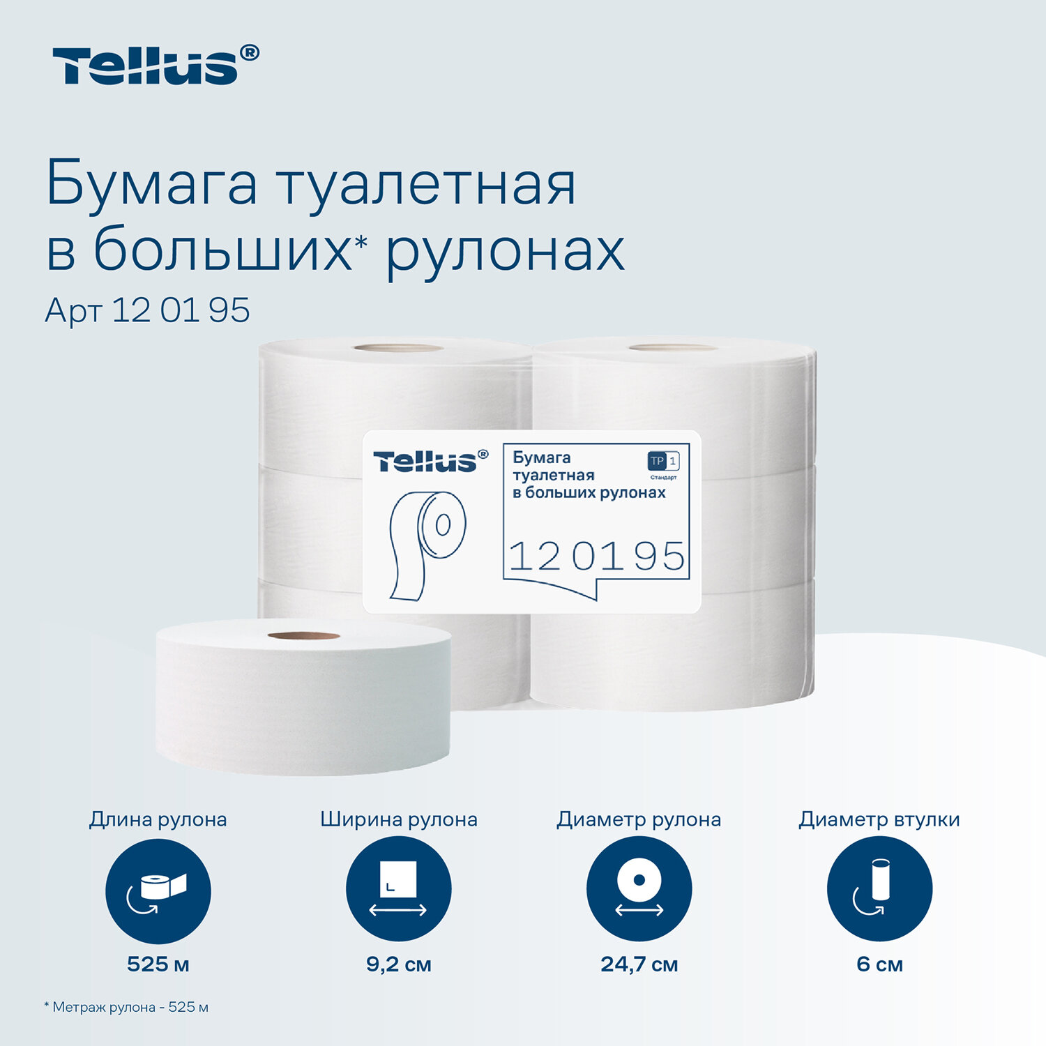 Бумага туалетная 525 м, БОЛЬШОЙ РУЛОН, Tellus/TORK (Система T1) UNIVERSAL, КОМПЛЕКТ 6 рулонов, 1-слойная Код товара: 124548 2 164,75 ₽ Купить Производитель:Tellus/TORK Туалетная бумага однослойная в больших рулонах Tellus категории качества Стандарт удовлетворяет базовые потребности, предлагая экономичное решение для помещений с высокой проходимостью. Диспенсеры системы T1 (TP1) помогают сократить затраты и уменьшить время на обслуживание за счет большего объема бумаги по сравнению со стандартными рулонами. - Категория качества – Стандарт; - Произведено из переработанного сырья; - Длина рулона – 525 м. Артикул: Tellus 120195Производство: РоссияДиспенсерная система: Т1 (TP1)Тип: рулонныеСырье: макулатураКоличество слоев: 1Перфорация: нетДоля вторичного сырья: 100 %Спайка/комплект: 6 штДлина намотки: 525 мДиаметр рулона: 247 ммШирина рулона: 9.2 смВнутренний диаметр втулки: 60 ммЦвет: натуральныйСочетается с оборудованием других производителей: даРастворяется в воде: даСерия: СТАНДАРТВес: 7,74 кгРазмер упаковки: 24.8 × 48 × 28.1 смОбъём: 0.0335 м3Промежуточная упаковка: 1 штТранспортная упаковка: 1 штШтрих-код: 7322540135800 Файлы Приложение-1.pdf Приложение-2.pdf Приложение-3.pdf Приложение-4.pdf Приложение-5.pdf Приложение-6.pdf Сертификат-1.jpg Сертификат-2.jpg