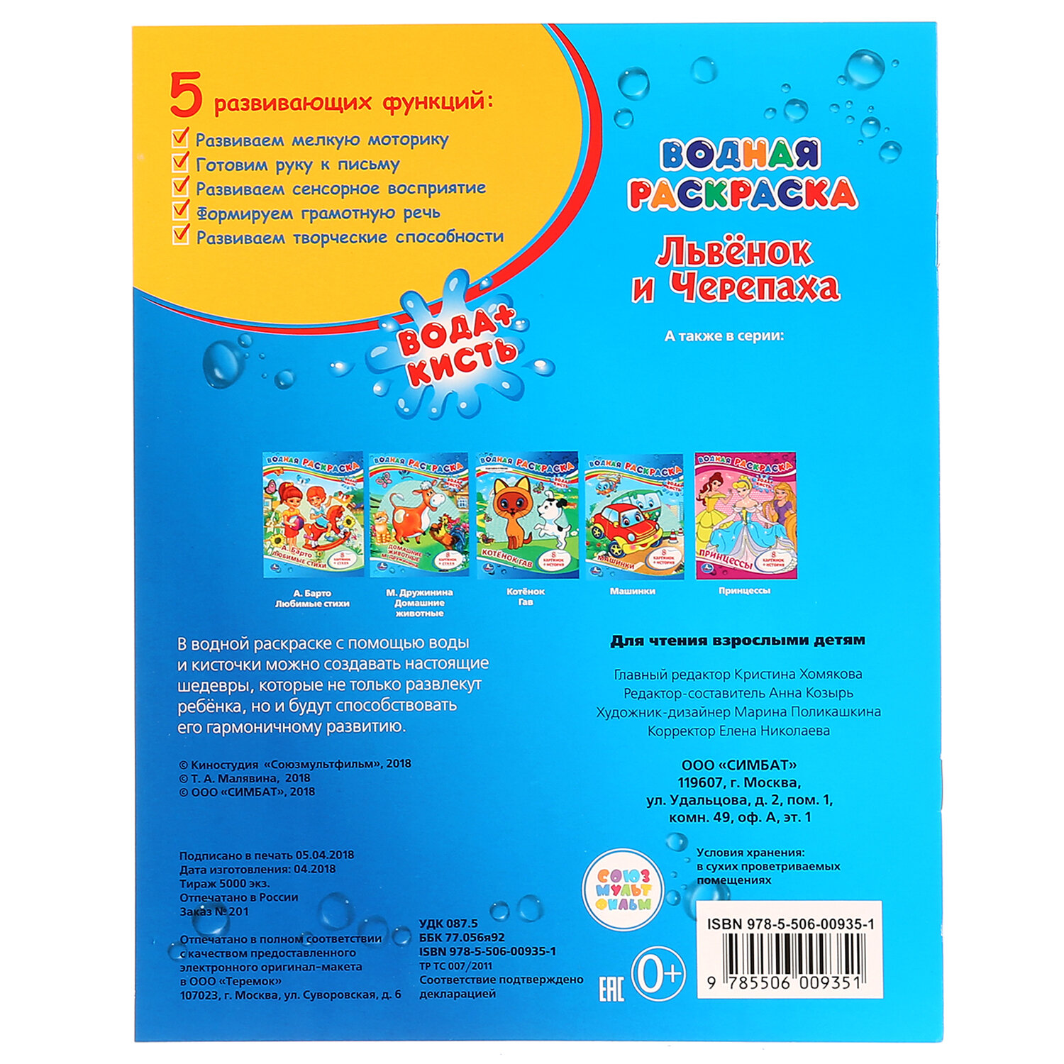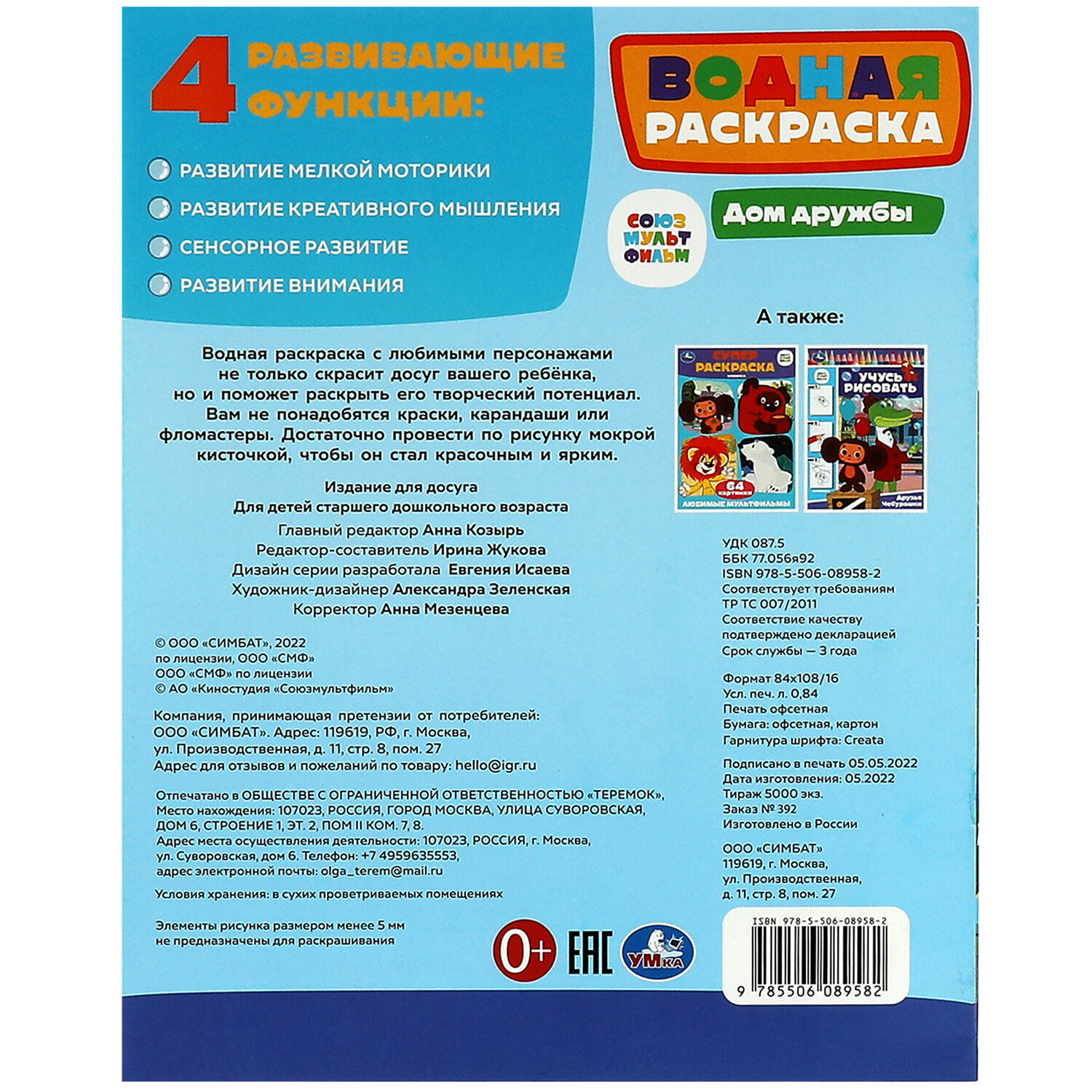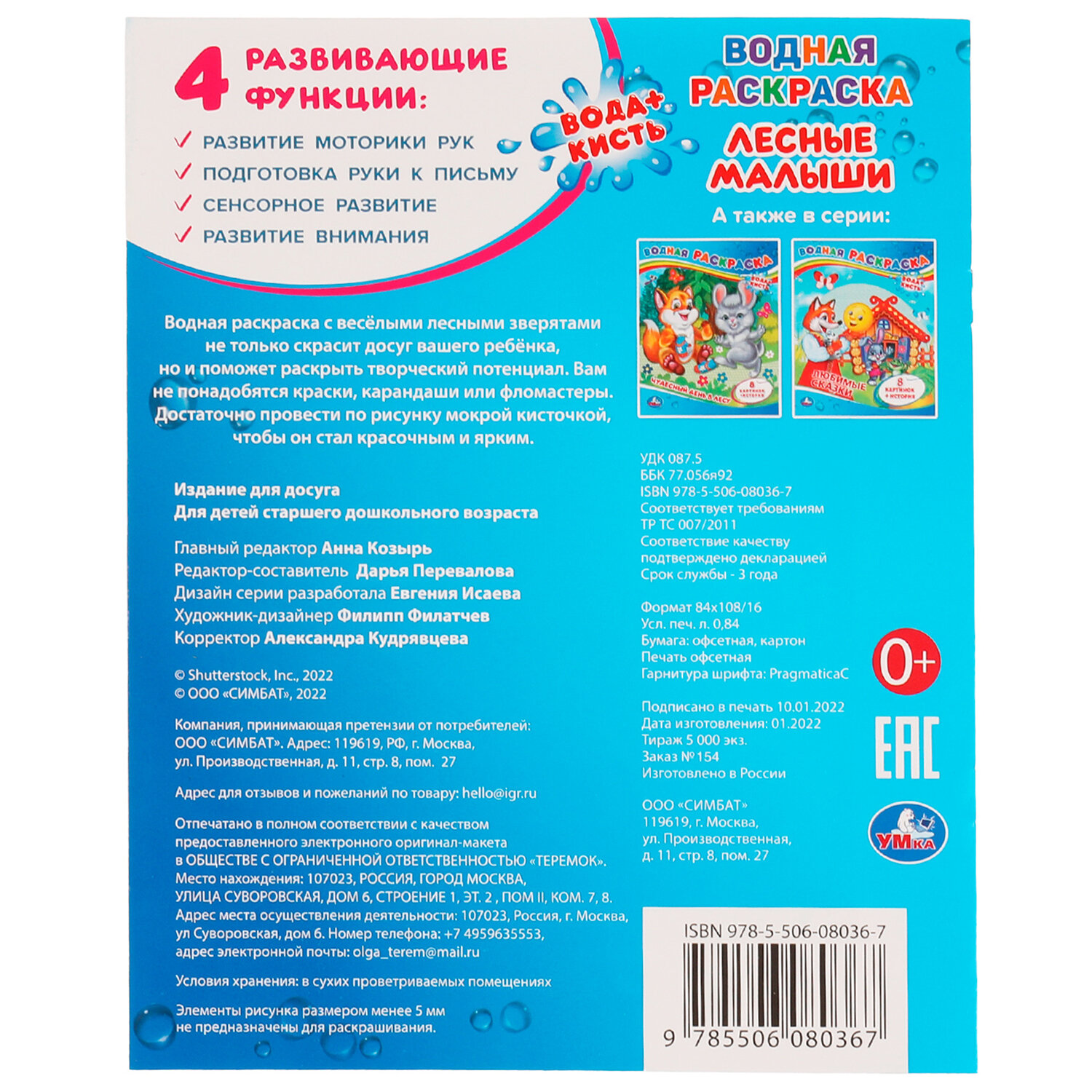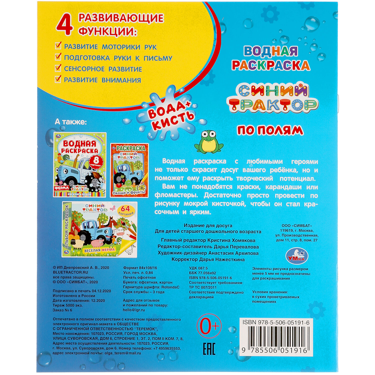 Раскраска водная "Для самых маленьких", АССОРТИ, 200х250 мм, 8 стр., лицензия, УМКА Код товара: 691069 127,64 ₽ Купить Производитель:УМКА Вашему маленькому художнику уже хочется взять в руки кисть, но пока сложно справиться с рисованием самостоятельно? Серия "Моя первая водная раскраска" наверняка понравится ему, ведь это полезное и увлекательное занятие. Все, что нужно для раскрашивания – это вода и кисточка. Намочите кисточку, немного отожмите, проведите по рисунку и... картинки станут цветными!Производство: РоссияФормат: 200 х 250Количество листов: 8Обложка: мелованная бумагаПлотность обложки: 0 г/м2Внутренний блок: офсетСерия: Раскраски УМКАСюжет: АссортиПлотность внутренного блока: 0 г/м2Тип скрепления: скобаВес: 41 грРазмер упаковки: 0.1 × 25.1 × 19.8 смОбъём: 0.0004 м3Промежуточная упаковка: 25 штТранспортная упаковка: 25 штШтрих-код: 9785506103059 Сертификат-1.jpg Сертификат-2.jpg Сертификат-3.jpg