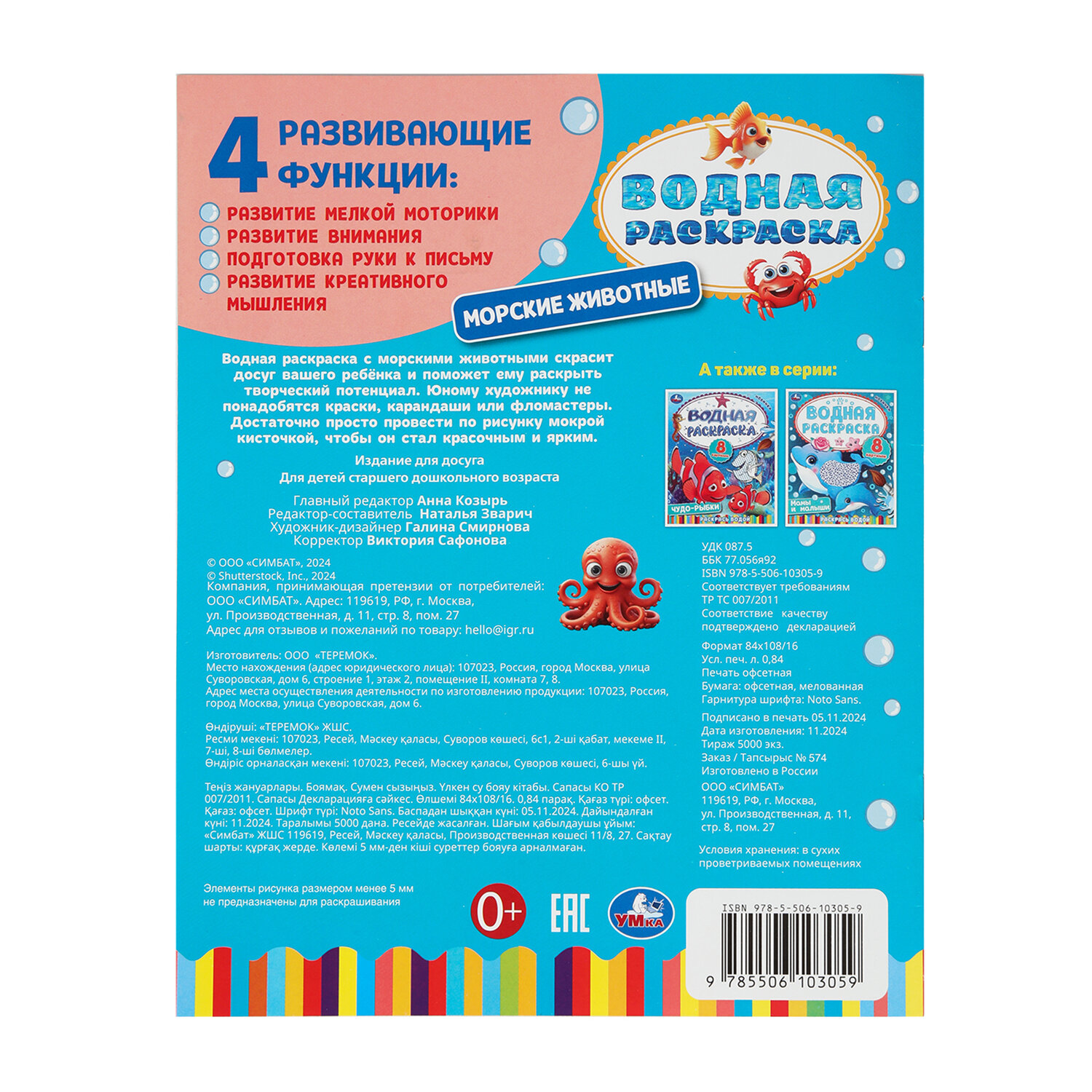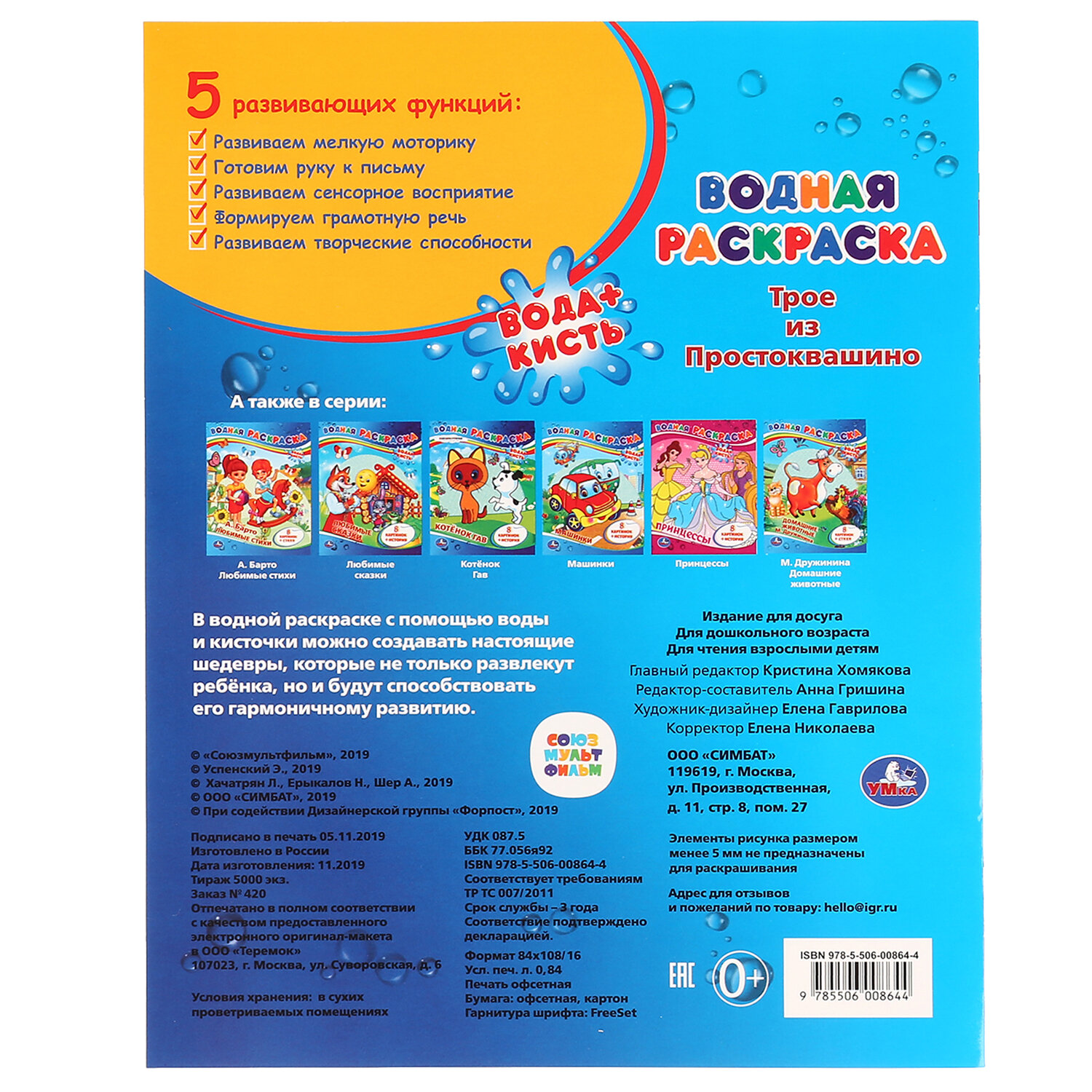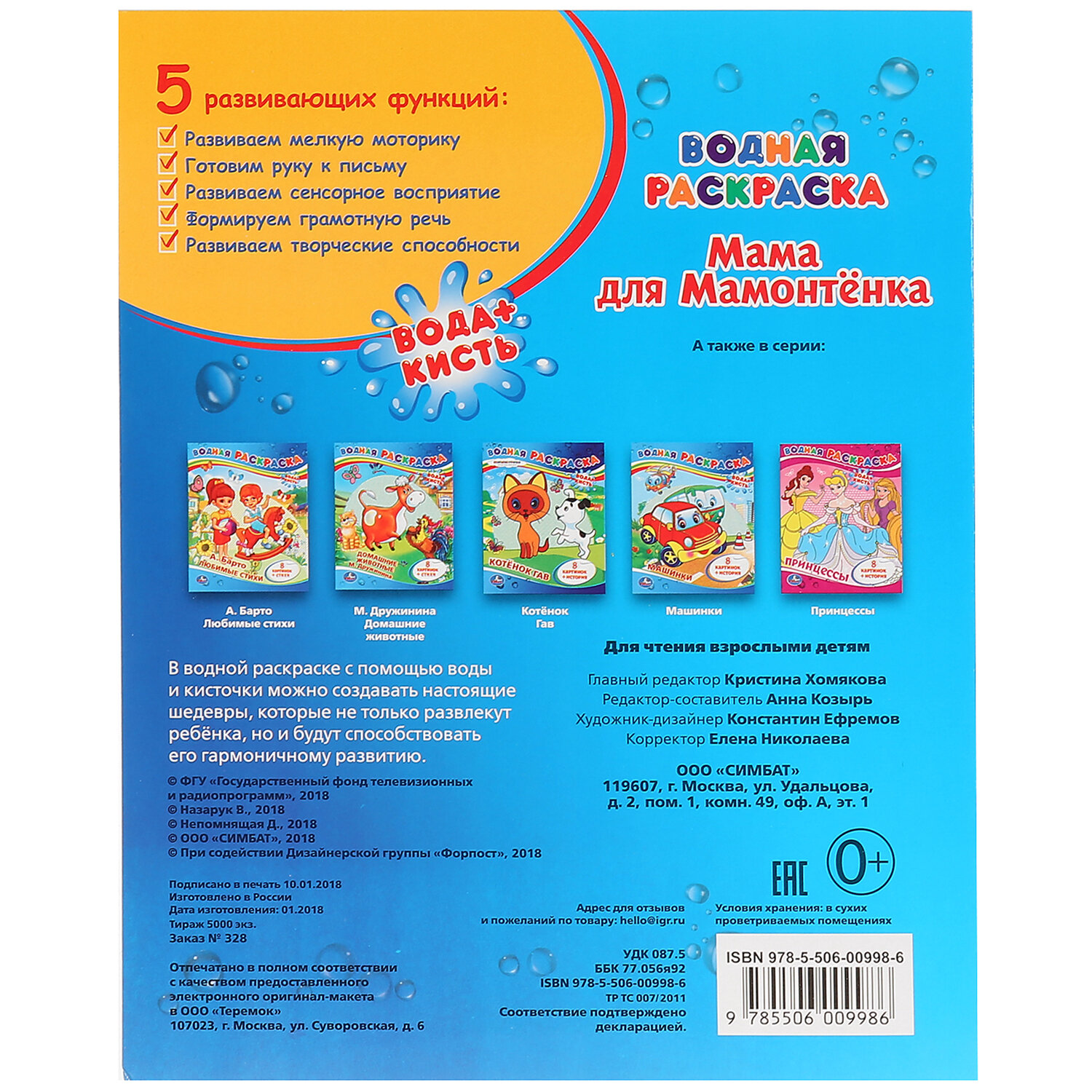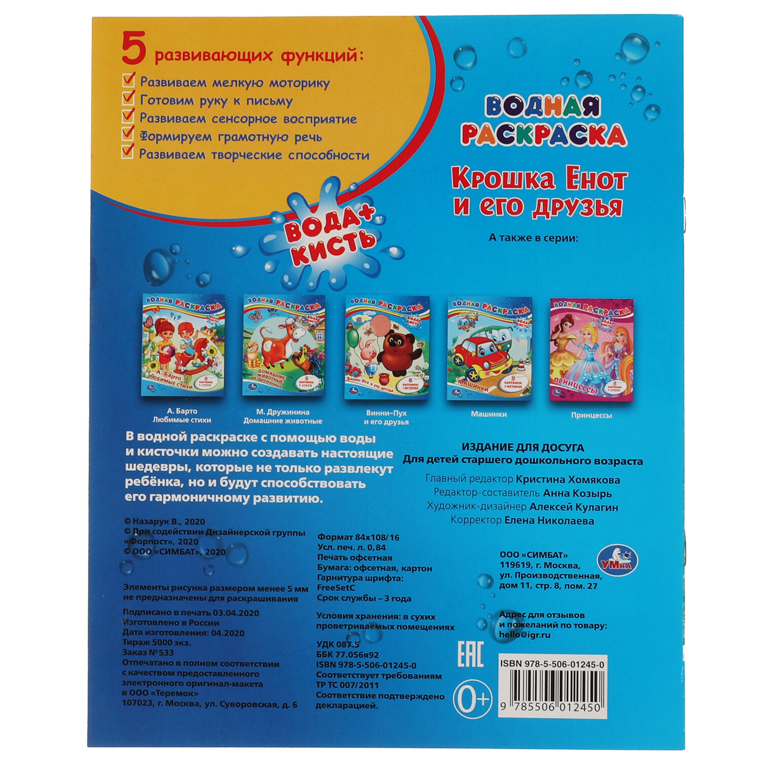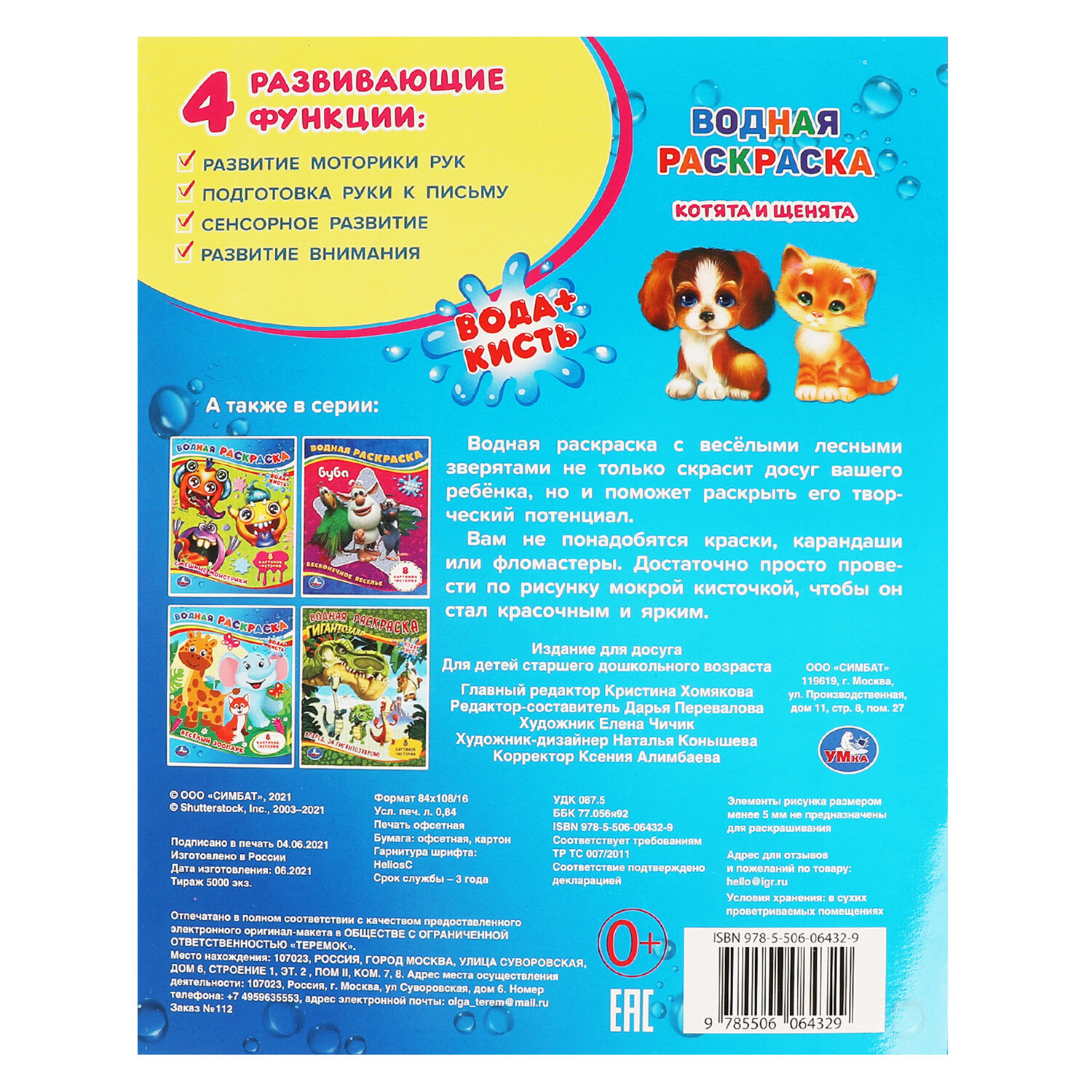 Раскраска водная "Для самых маленьких", АССОРТИ, 200х250 мм, 8 стр., лицензия, УМКА Код товара: 691069 127,64 ₽ Купить Производитель:УМКА Вашему маленькому художнику уже хочется взять в руки кисть, но пока сложно справиться с рисованием самостоятельно? Серия "Моя первая водная раскраска" наверняка понравится ему, ведь это полезное и увлекательное занятие. Все, что нужно для раскрашивания – это вода и кисточка. Намочите кисточку, немного отожмите, проведите по рисунку и... картинки станут цветными!Производство: РоссияФормат: 200 х 250Количество листов: 8Обложка: мелованная бумагаПлотность обложки: 0 г/м2Внутренний блок: офсетСерия: Раскраски УМКАСюжет: АссортиПлотность внутренного блока: 0 г/м2Тип скрепления: скобаВес: 41 грРазмер упаковки: 0.1 × 25.1 × 19.8 смОбъём: 0.0004 м3Промежуточная упаковка: 25 штТранспортная упаковка: 25 штШтрих-код: 9785506103059 Сертификат-1.jpg Сертификат-2.jpg Сертификат-3.jpg