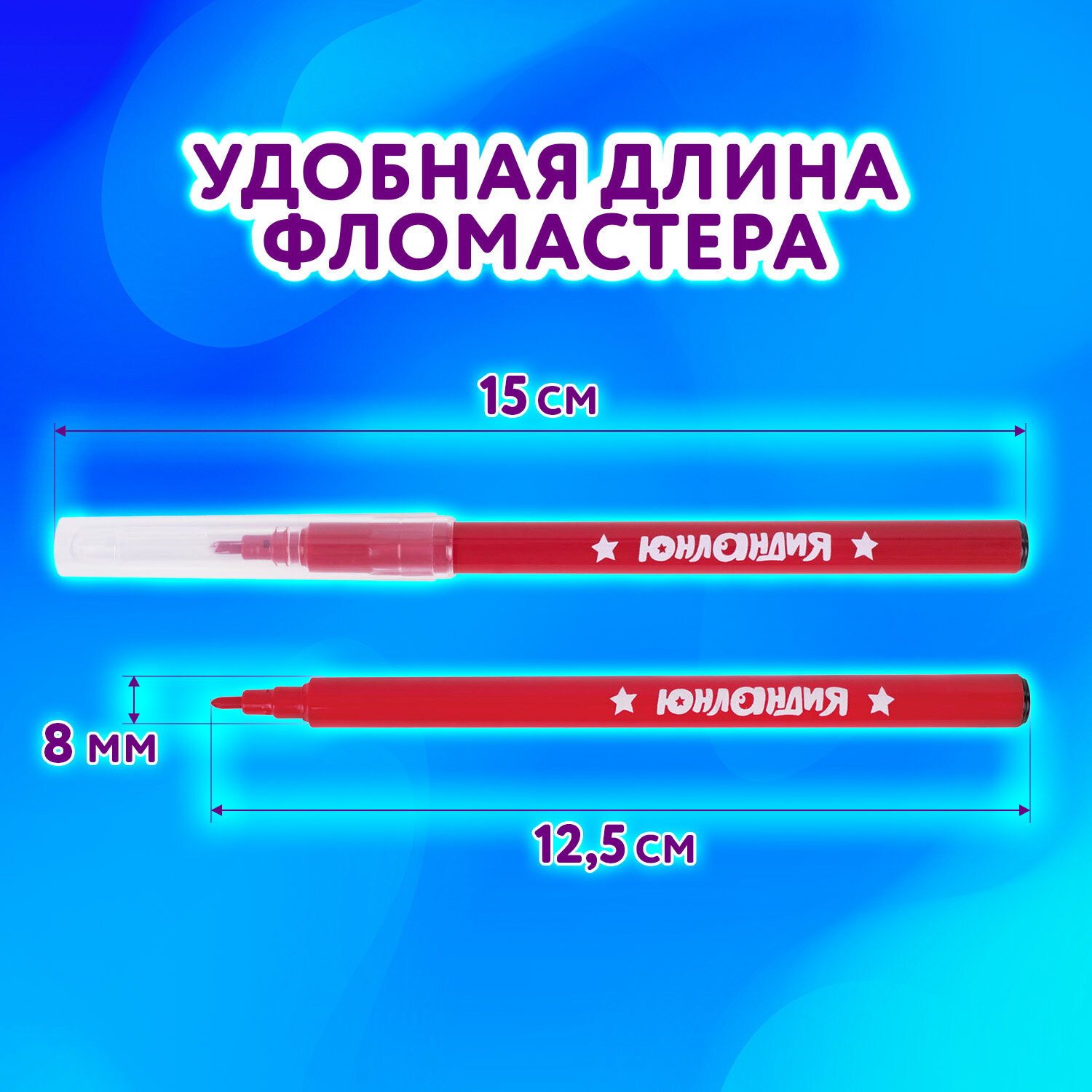 Фломастеры ЮНЛАНДИЯ 18 цветов "КЛАССНЫЕ!", вентилируемый колпачок, ПВХ Код товара: 152479 184,2 ₽ Купить Производитель:ЮНЛАНДИЯ Фломастерами ЮНЛАНДИЯ "КЛАССНЫЕ" легко наполнять цветом картинки в раскраске, дать волю воображению и создать сочный рисунок, искрящийся красками. Настолько удобны в использовании, что с ними справится даже самый юный художник. Обладают яркими насыщенными цветами в количестве 18 штук. Удобная круглая форма корпуса, длина которого 150 мм, а диаметр – 8 мм. Благодаря толщине линии письма 1 мм и диаметру пишущего узла 2,1 мм процесс раскрашивания становится легким. Длина письма составляет 600 м – такого расхода хватит надолго. Фломастеры изготовлены на водной основе, поэтому они безопасны и легко смываются с большинства материалов и кожи. Полипропиленовый корпус значительно продлевает срок службы фломастеров. Колпачок оснащен специальными прорезями для вентиляции, которые делают использование фломастеров более безопасным. Рекомендованы для детей от 3-х лет.Производство: КитайКоличество цветов: 18Форма корпуса: круглаяЭффект чернил: без эффектаТип чернил: легкосмываемыеСерия: КЛАССНЫЕШирина линии письма: 1 ммПишущий узел: 2.1 ммДлина письма: 600 мДлина корпуса: 150 ммДиаметр корпуса: 8 ммВентилируемый колпачок: даУпаковка: ПВХ-конверт с европодвесомСрок годности: 60 месВес: 127 грРазмер упаковки: 0.9 × 19.4 × 18 смОбъём: 0.0005 м3Промежуточная упаковка: 12 штТранспортная упаковка: 144 штШтрих-код: 4606224381022 Сертификат-1.jpg Сертификат-2.jpg Сертификат-3.jpg