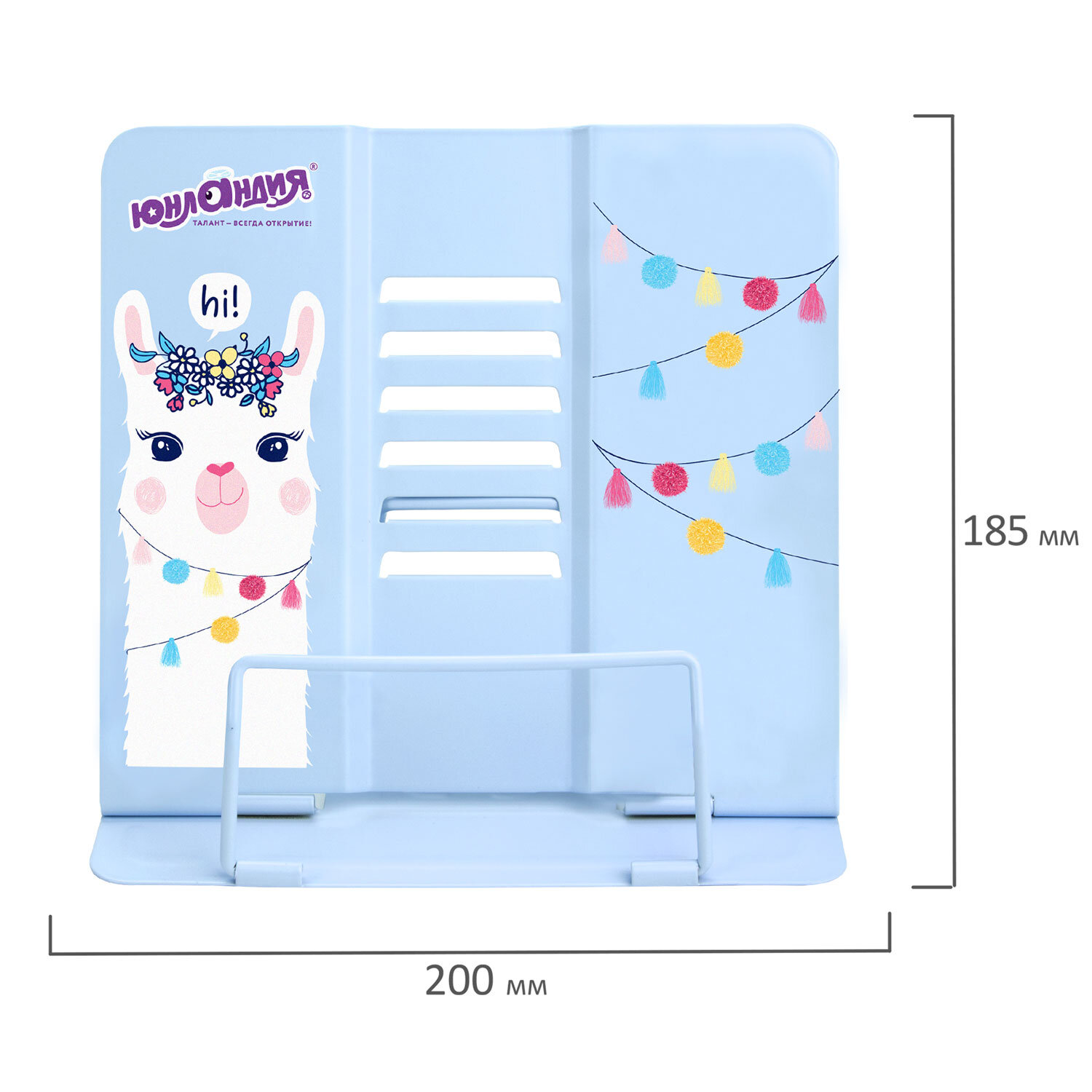 Подставка для книг и учебников ЮНЛАНДИЯ "Lama", регулируемый наклон, металлическая Код товара: 237576 320,99 ₽ Купить Производитель:ЮНЛАНДИЯ Подставка для книг и учебников ЮНЛАНДИЯ "Lama" станет незаменимым помощником для школьников и любителей чтения. Использование подставки для книг способствует правильному формированию осанки. Яркий дизайн станет изюминкой в любом интерьере. Подставка полностью изготовлена из металла, поэтому отлично подойдет для надежной фиксации тяжелых и объемных учебных материалов и книг. Оригинальный дизайн понравится как младшим школьникам, так и школьникам среднего звена. Регулируемый угол наклона обеспечивает удобство при работе с текстом, облегчает чтение и подготовку домашней работы. Размер подставки – 20х18,5 см. Цвет – голубой.Производство: КитайНазначение: для книг и учебниковРегулируемый угол наклона: даДержатель для страниц: нижнийСерия: CuteМатериал корпуса: металлВысота: 18.5 смШирина: 20 смЦвет: голубойДизайн: LamaУпаковка: пакетВес: 454 грРазмер упаковки: 2 × 21.9 × 20.1 смОбъём: 0.0009 м3Промежуточная упаковка: 12 штТранспортная упаковка: 48 штШтрих-код: 4606224298467 Файлы Сертификат-1.jpg Сертификат-2.jpg Сертификат-3.jpg Сертификат-4.jpg Сертификат-5.jpg Сертификат-6.jpg Сертификат-7.jpg Сертификат-8.jpg Сертификат-9.jpg Сертификат-10.jpg Сертификат-11.jpg Сертификат-12.jpg Сертификат-13.jpg Сертификат-14.jpg Сертификат-15.jpg Сертификат-16.jpg Сертификат-17.jpg Сертификат-18.jpg Сертификат-19.jpg Сертификат-20.jpg Сертификат-21.jpg Сертификат-22.jpg Сертификат-23.jpg Сертификат-24.jpg Сертификат-25.jpg Сертификат-26.jpg