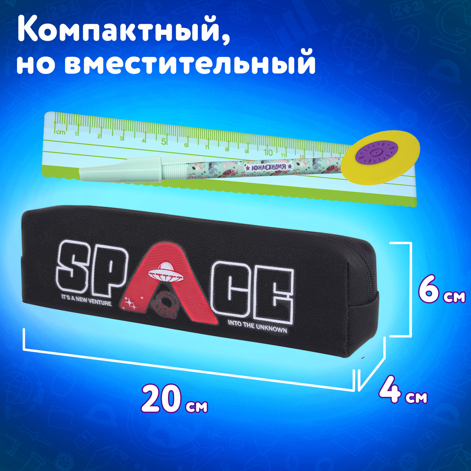 Пенал ЮНЛАНДИЯ ЮНИОР, 1 отделение, полиэстер, "Space", 20х6х4 см Код товара: 273809 194,69 ₽ Купить Производитель:ЮНЛАНДИЯ Пенал ЮНЛАНДИЯ ЮНИОР предназначен для хранения школьных канцелярских принадлежностей. Застегивается на молнию с металлическим бегунком. Вмещает до 50 предметов. Выполнен из прочного полиэстера, приятного на ощупь. Внутри пенала одно отделение с застежкой-молнией, оснащенной металлическим бегунком. Пенал выполнен в ярких цветах с печатью уникального дизайна. Компактный размер 20х6х4 см делает пенал удобным для ежедневного использования. Идеально подходит для хранения ручек, карандашей, ластиков и других канцелярских принадлежностей. Упакован в прозрачный полиэтиленовый пакет с европодвесом, который сохранит качество и товарный вид при хранении и транспортировке.Производство: КитайТип товара: пенал мягкийЗастежка: молнияНазначение: для мальчиковКоличество отделений: 1Материал: полиэстерСерия: ЮНИОРДизайн: SpaceБазовый цвет: черный/красныйДлина: 20 смШирина: 6 смУпаковка: прозрачный пакет с европодвесомВес: 36 грРазмер упаковки: 4.5 × 21.4 × 6.9 смОбъём: 0.0007 м3Промежуточная упаковка: 12 штТранспортная упаковка: 144 штШтрих-код: 4606224493640 Сертификат-1.jpg Сертификат-2.jpg Сертификат-3.jpg