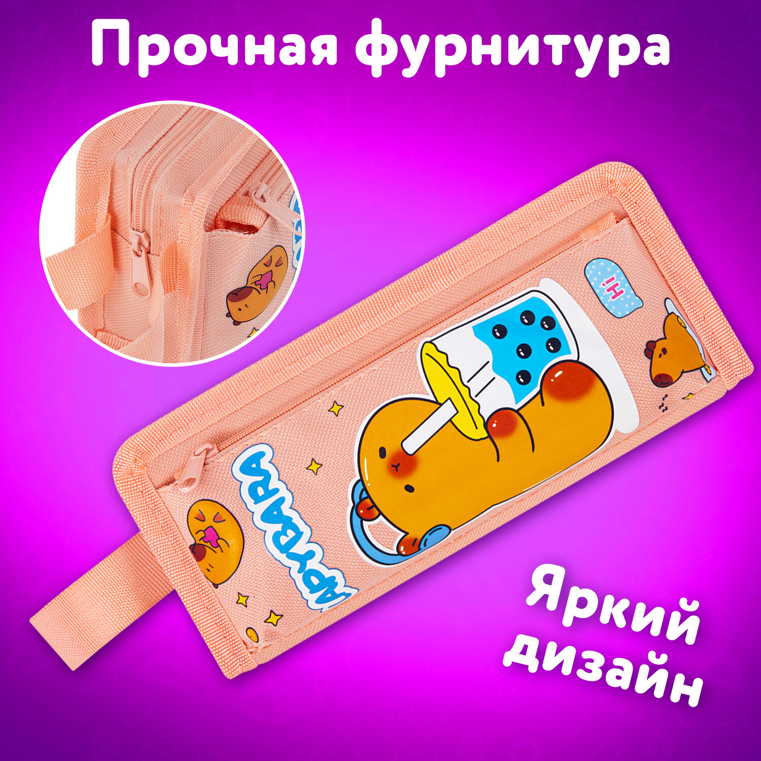Пенал ЮНЛАНДИЯ ЮНИОР, 2 отделения, с ручкой, полиэстер, "Capybara", 21х8х6 см Код товара: 273814 253,24 ₽ Купить Производитель:ЮНЛАНДИЯ Пенал ЮНЛАНДИЯ ЮНИОР "Capybara" с двумя отделениями предназначен для хранения школьных канцелярских принадлежностей. Застегивается на молнию с металлическим бегунком. Вмещает до 50 предметов. Выполнен из прочного полиэстера, приятного на ощупь. Внутри пенала одно отделение с застежкой-молнией, оснащенной металлическим бегунком. Снаружи дополнительное отделение - карман с застежкой на молнии. Удобная ручка-петля сбоку для переноски. Яркая печать уникального дизайна на переднем кармашке пенала. Компактный размер 21х8х6 см делает пенал удобным для ежедневного использования. Идеально подходит для хранения ручек, карандашей, ластиков и других канцелярских принадлежностей. Упакован в прозрачный полиэтиленовый пакет с европодвесом, который сохранит качество и товарный вид при хранении и транспортировке.Производство: КитайТип товара: пенал мягкийЗастежка: молнияНазначение: для девочекКоличество отделений: 2Материал: полиэстерСерия: ЮНИОР СмартДизайн: СapybaraБазовый цвет: персиковыйДлина: 21 смШирина: 8 смУпаковка: прозрачный пакет с европодвесомВес: 55 грРазмер упаковки: 4.5 × 21.5 × 9.4 смОбъём: 0.0009 м3Промежуточная упаковка: 12 штТранспортная упаковка: 144 штШтрих-код: 4606224493695 Сертификат-1.jpg Сертификат-2.jpg Сертификат-3.jpg