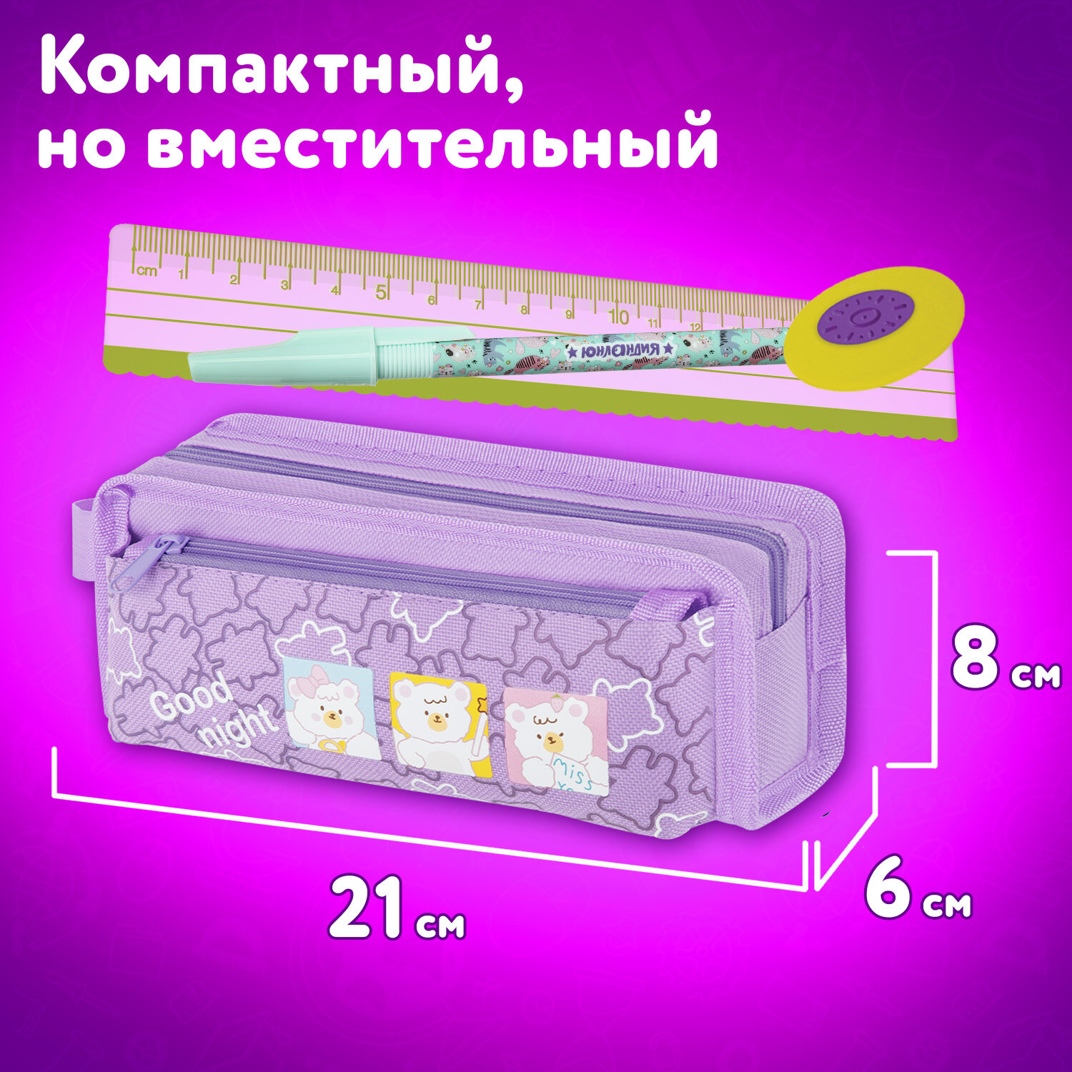 Пенал ЮНЛАНДИЯ ЮНИОР, 2 отделения, с ручкой, полиэстер, "Bears", 21х8х6 см Код товара: 273815 239,66 ₽ Купить Производитель:ЮНЛАНДИЯ Пенал ЮНЛАНДИЯ ЮНИОР "Bears" с двумя отделениями предназначен для хранения школьных канцелярских принадлежностей. Застегивается на молнию с металлическим бегунком. Вмещает до 50 предметов. Выполнен из прочного полиэстера, приятного на ощупь. Внутри пенала одно отделение с застежкой-молнией, оснащенной металлическим бегунком. Снаружи дополнительное отделение - карман с застежкой на молнии. Удобная ручка-петля сбоку для переноски. Яркая печать уникального дизайна на переднем кармашке пенала. Компактный размер 21х8х6 см делает пенал удобным для ежедневного использования. Идеально подходит для хранения ручек, карандашей, ластиков и других канцелярских принадлежностей. Упакован в прозрачный полиэтиленовый пакет с европодвесом, который сохранит качество и товарный вид при хранении и транспортировке.Производство: КитайТип товара: пенал мягкийЗастежка: молнияНазначение: для девочекКоличество отделений: 2Материал: полиэстерСерия: ЮНИОР СмартДизайн: BearsБазовый цвет: фиолетовыйДлина: 21 смШирина: 8 смУпаковка: прозрачный пакет с европодвесомВес: 56 грРазмер упаковки: 4.3 × 21.1 × 10.1 смОбъём: 0.0009 м3Промежуточная упаковка: 12 штТранспортная упаковка: 144 штШтрих-код: 4606224493701 Сертификат-1.jpg Сертификат-2.jpg Сертификат-3.jpg