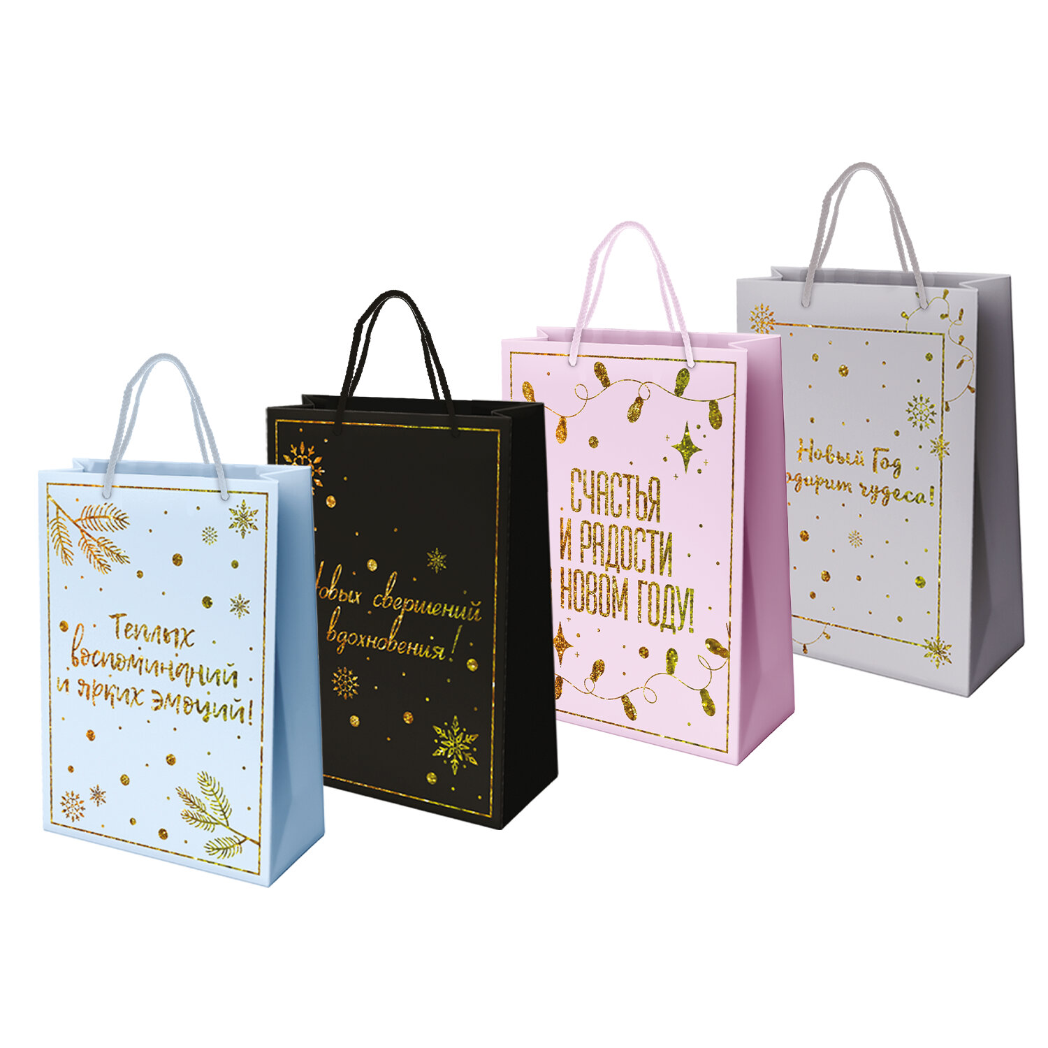 Пакет подарочный (1 шт.) новогодний, 33x13x45 см, "Сказочный Новый Год", голография, ЗОЛОТАЯ СКАЗКА Код товара: 592428 112,53 ₽ Купить Производитель:ЗОЛОТАЯ СКАЗКА Подарочный новогодний пакет "Сказочный Новый Год" ЗОЛОТАЯ СКАЗКА – отличное решение для упаковки любого презента, которое позволит легко и со вкусом оформить выбранный подарок. Подарочный пакет новогодний, как и все виды подарочной упаковки, способен придать особый статус подарку. Также он является достаточно практичным изделием, которое может использоваться в повседневной жизни. Пакет изготовлен из мелованной бумаги с матовой ламинацией и с веревочными ручками из полипропилена. Представлен в четырех цветах (ассорти без возможности выбора): пастельный розовый, голубой, серебристый и черный. На каждом пакете написаны новогодние пожелания, что делает пакет частью поздравления. Можно просто вручить его с добрыми словами – и он всё скажет за Вас. Дополнительные элементы декора – маленькие снежинки и звёздочки – создают атмосферу праздника и добавляют каждому пакету особую магию в сочетании с переливающимся голографическим эффектом на всех деталях рисунка. Размер – 33x13x45 см.Производство: КитайВид пакета: вертикальныйКоличество в комплекте: 1 шт.Дизайн: Сказочный Новый ГодМатериал: мелованная бумагаЭффект: голографияС рисунком: даЦвет: ассортиТип: новогоднийРазмер пакета: XL (33x13x45) смВес: 110 грРазмер упаковки: 1 × 35 × 48 смОбъём: 0.0006 м3Промежуточная упаковка: 12 штТранспортная упаковка: 144 штШтрих-код: 4606224503141 Сертификат-1.jpg Сертификат-2.jpg