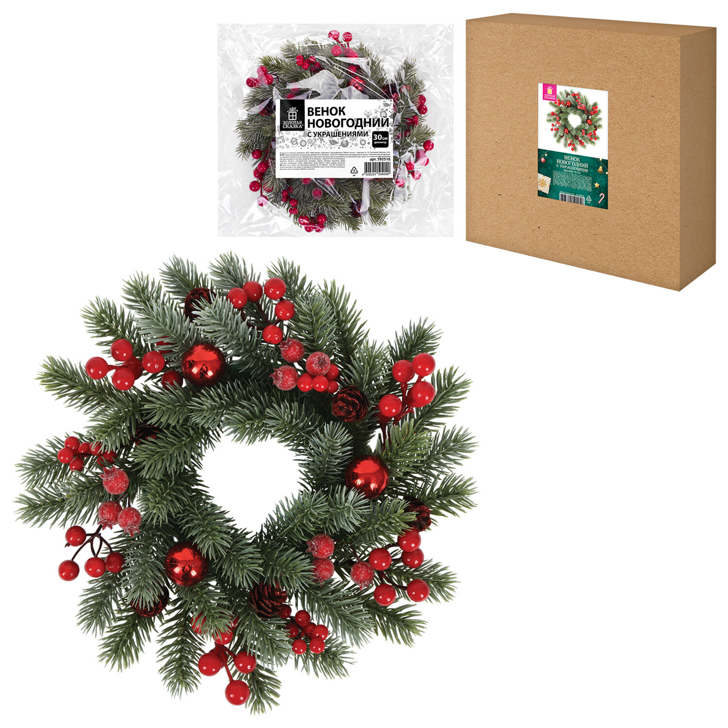 Венок новогодний заснеженный, диаметр 30 см "Зимняя сказка", с декором, литой ПЭТ, ЗОЛОТАЯ СКАЗКА Код товара: 592518 1 035,58 ₽ Купить Производитель:ЗОЛОТАЯ СКАЗКА Венок новогодний ЗОЛОТАЯ СКАЗКА станет прекрасным украшением для дома или офиса. Венок преобразит пространство и подарит ощущение праздника. Венок новогодний диаметром 30 см представляет собой конструкцию из пластикового каркаса и закрепленных к нему ветвей. Материал – 100% литой ПЭТ. Цвет хвои – зелёный, заснеженный. Венок из литого ПЭТ украшен ветками красных ягодок, пластиковыми красными шарами и шишками. Венок выглядит, как натуральный, и создает особую праздничную атмосферу. На задней части основания венка расположено отверстие, за которое можно легко повесить венок на стену или дверь. Можно разместить не только на вертикальную, но и на горизонтальную поверхность, сделав частью новогоднего украшения.Производство: КитайТип товара: ВенокМатериал: литой ПЭТДлина: 30 смШирина: 30 смЦвет: зеленый заснеженныйСпособ крепления: крючокДизайн: Зимняя СказкаВес: 326 грРазмер упаковки: 8.1 × 25.1 × 25.3 смОбъём: 0.0063 м3Промежуточная упаковка: 10 штТранспортная упаковка: 10 штШтрих-код: 4606224504049 Сертификат-1.jpg Сертификат-2.jpg