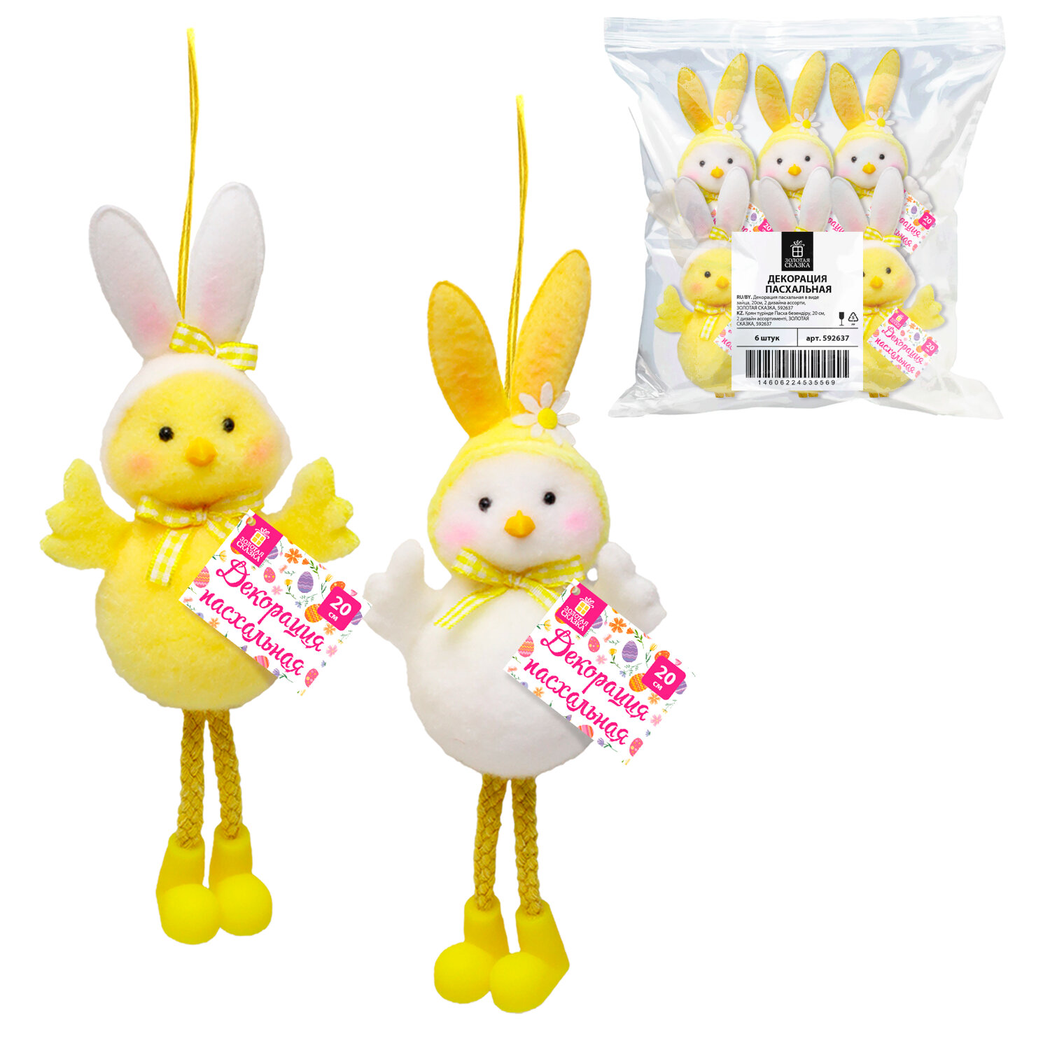 Декорация пасхальная (1 шт.) 20 см "Зайчик", полиэстер, 2 дизайна ассорти, ЗОЛОТАЯ СКАЗКА Код товара: 592637 152,9 ₽ Купить Производитель:ЗОЛОТАЯ СКАЗКА Окунитесь в атмосферу тёплого, светлого праздника Пасхи с очаровательной декорацией "Цыпа с ушами" ЗОЛОТАЯ СКАЗКА. Необычный и невероятно милый пасхальный цыплёнок в забавной шапочке с кроличьими ушками. Декорация выполнена из полиэстера, украшена яркими деталями и представлена в двух дизайнах (без возможности выбора). Благодаря удобной верёвочке, декорацию легко подвесить для украшения интерьера. Размер – 20 см.Производство: КитайТип товара: пасхальная декорацияМатериал: полиэстер, полистиролРазмер: 20х5х8 смКоличество в комплекте: 1 шт.Цвет: желтый/белыйДизайн: Цыпа с ушамиУпаковка: -Вес: 17 грРазмер упаковки: 5 × 7 × 10 смОбъём: 0.0003 м3Промежуточная упаковка: 6 штТранспортная упаковка: 96 штШтрих-код: 4606224535562 Сертификат-1.jpg Сертификат-2.jpg