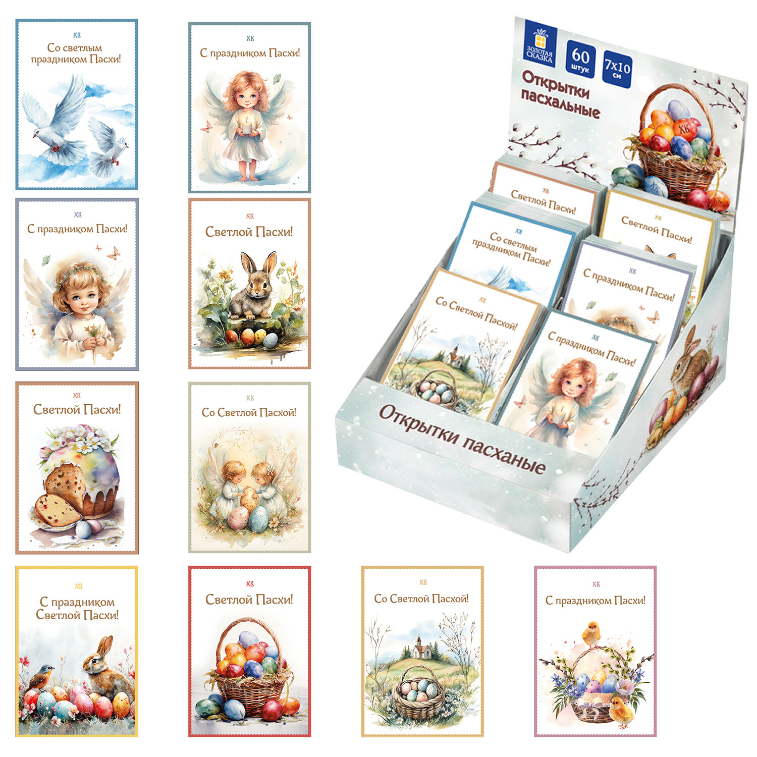 Открытка пасхальная (1 шт.), 7х10 см "Светлая Пасха", картон, ассорти, ЗОЛОТАЯ СКАЗКА Код товара: 592642 23,23 ₽ Купить Производитель:ЗОЛОТАЯ СКАЗКА Настоящее пасхальное настроение в каждой детали с открытками ЗОЛОТАЯ СКАЗКА, созданными, чтобы дарить тепло и улыбки! Открытки размером 7х10 см изготовлены из плотного картона 250 г/м2 с глянцевой поверхностью. Открытки поставляются в 10 уникальных дизайнах: с изображением пасхальных яиц, цыплят, кроликов, куличами, ангелочков, цветочных мотивов и нежных весенних узоров (без возможности выбора). Удобный формат открыток идеален для того, чтобы положить в пакетик к куличу, прикрепить на упаковку, использовать как бирки или в качестве сувенира. А насыщенные краски и глянец придают открыткам праздничный блеск и делают их настоящим акцентом в любом оформлении. Поставляются в цветном картонном дисплее. Дисплей упакован в дополнительный гофрокороб.Производство: КитайТип товара: открытка пасхальнаяРазмер: 7х10 смКоличество в комплекте: 1 шт.Дизайн: Светлая ПасхаУпаковка: дисплейВес: 2 грРазмер упаковки: 0.1 × 7 × 10 смОбъём: 0.0001 м3Промежуточная упаковка: 60 штТранспортная упаковка: 480 штШтрих-код: 4606224535616 Сертификат-1.jpg Сертификат-2.jpg