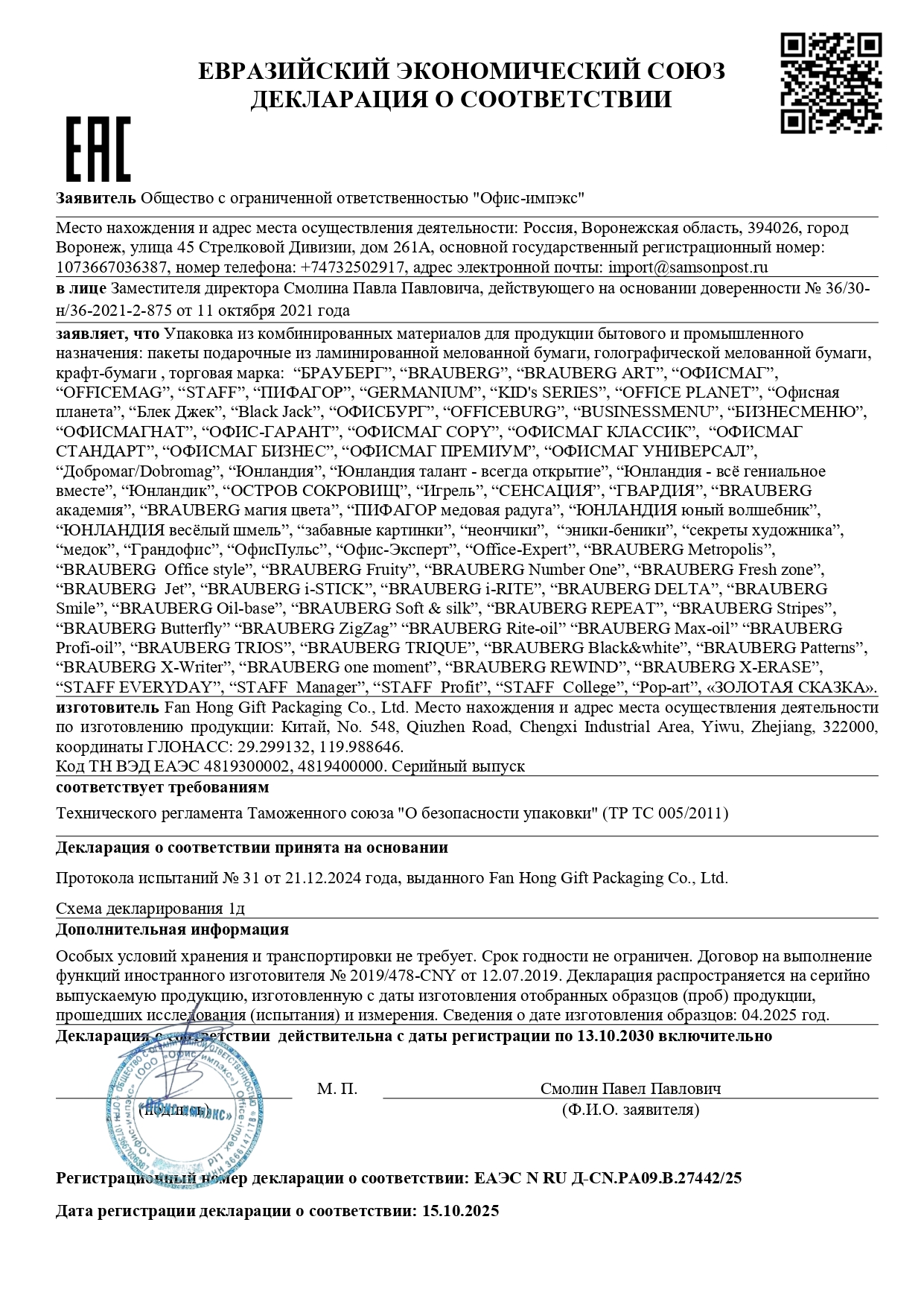 Пакет подарочный (1 штука) 26x13x32 см, ЗОЛОТАЯ СКАЗКА голография, ассорти 4 цвета Код товара: 606607 58,2 ₽ Купить Производитель:ЗОЛОТАЯ СКАЗКА Подарочный пакет ЗОЛОТАЯ СКАЗКА – отличное решение для упаковки любого презента, которое позволит с легкостью и со вкусом оформить выбранный подарок. Подарочный пакет, как и все виды подарочной упаковки, способен придать особый статус подарку, также он является достаточно практичным изделием, которое может использоваться в повседневной жизни. Голографический пакет изготовлен из мелованной бумаги с веревочными ручками из полипропилена и представлен в четырех цветах и дизайнах. Выполнен в красном, синем, серебристом и золотистом цветах. Размер – 26x13x32 см.Производство: КитайФормат: вертикальныйВид пакета: штучныйДизайн: голографияМатериал: мелованная бумагаКоличество в комплекте: 1 шт.Голографический эффект: даЦвет: ассортиРазмер пакета: L (26х13х32) смФормат размера пакета: LВес: 78 грРазмер упаковки: 0.3 × 32.7 × 25.9 смОбъём: 0.0003 м3Промежуточная упаковка: 12 штТранспортная упаковка: 96 штШтрих-код: 4606224271828 Сертификат-1.jpg Сертификат-2.jpg Сертификат-3.jpg