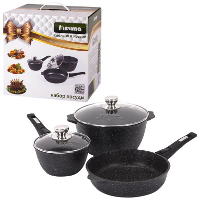 Наборы посуды для приготовления Популярное Новинки По размеру скидки Дешевле Дороже По названию А-Я По названию Я-А Код: 700722Набор посуды (сковорода 26 см, кастрюля 5 л, ковш 1,7 л, 2 съемных ручки, 2 крышки), МЕЧТА "Гранит Black", 00 7 061,16 ₽Купить Ничего не найдено Показать ещё Показано 1 из 1 товаров.