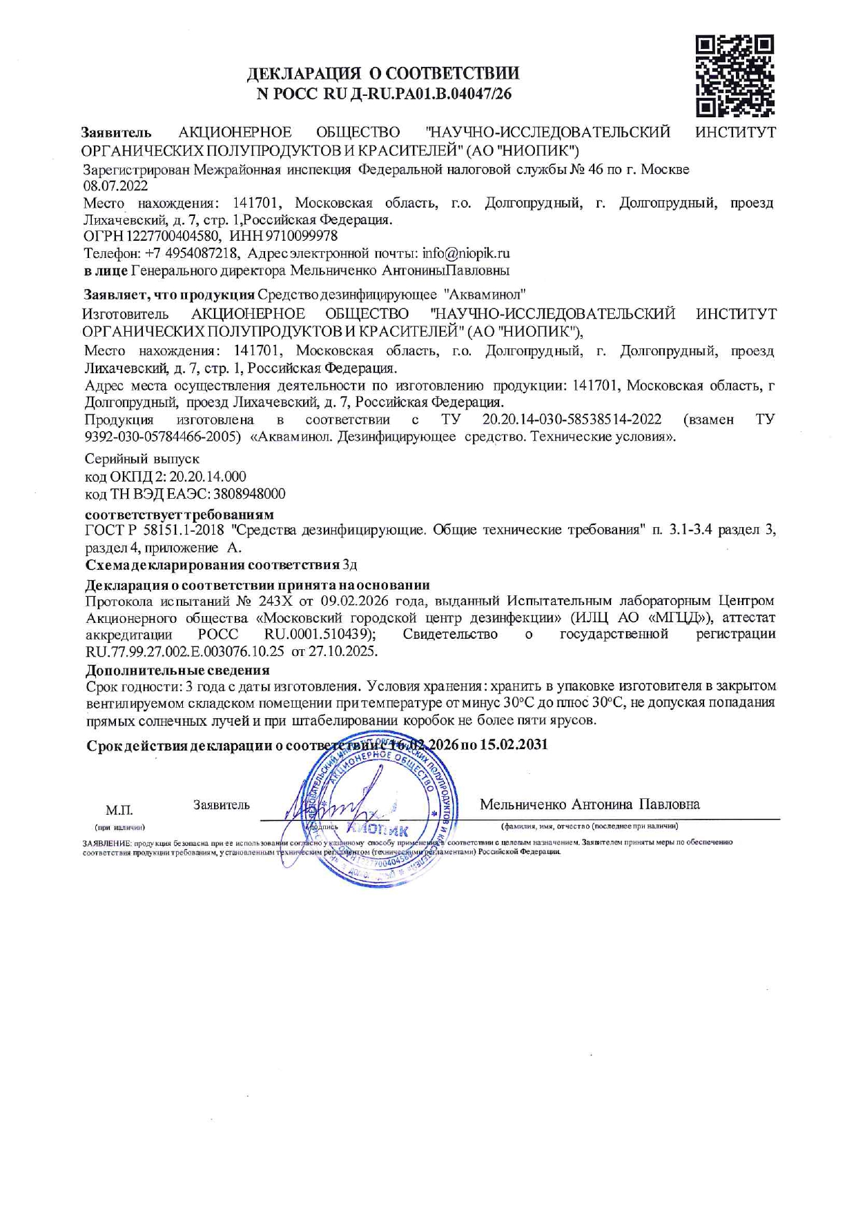 Условия хранения: средство следует хранить в упаковке изготовителя, в крытом вентилируемом складском помещении при температуре от -3 °С до +30 °С отдельно от лекарственных препаратов.