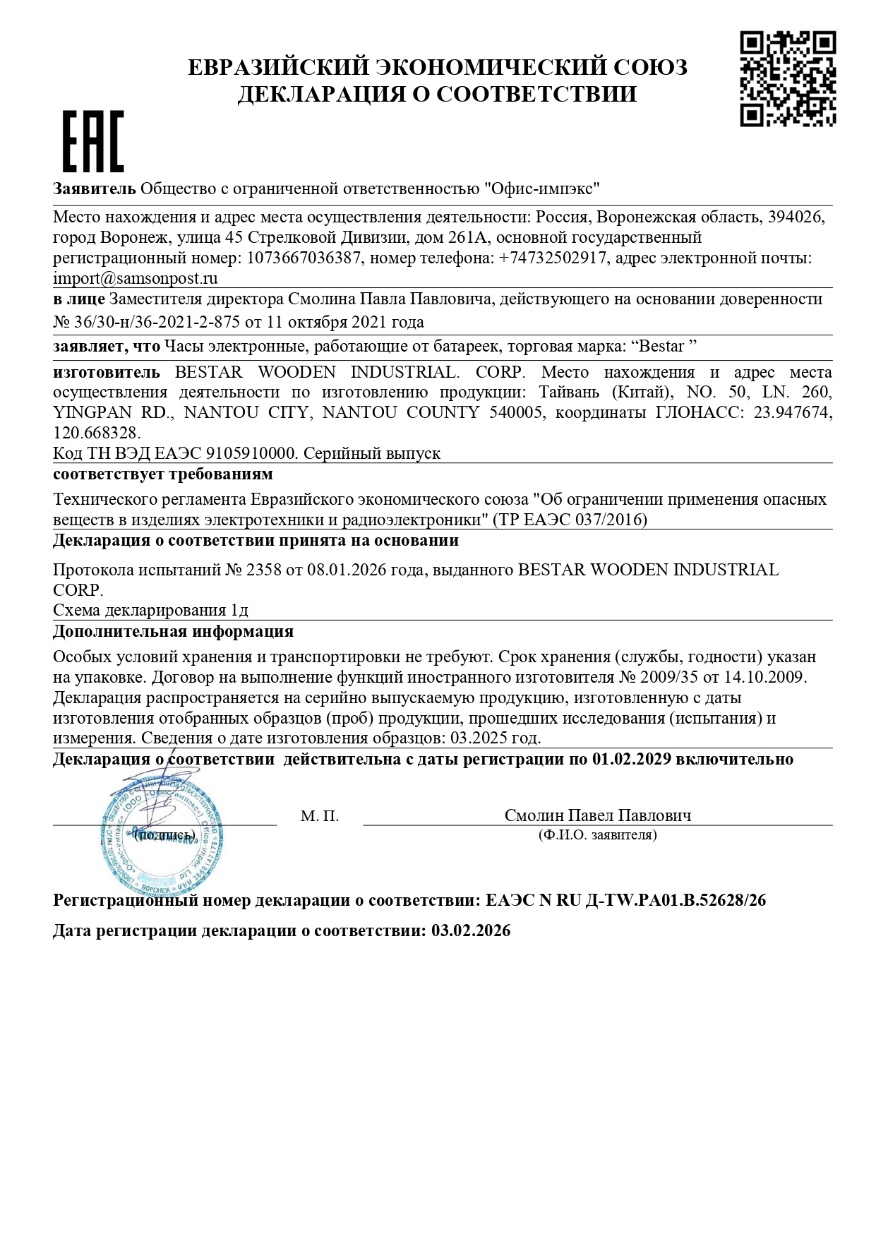 Набор подарочный настольный BESTAR "Platon" из дерева, 12 предметов, цвет "орех" Код товара: 236372 19 254,8 ₽ Купить Производитель:BESTAR Настольный набор премиум-класса BESTAR "Platon" - оригинальный подарок, отличающийся утонченным стилем и совершенством деталей. Набор состоит из 12 универсальных предметов: - коврик для письма (размер – 66х43 см) - два лотка (для бумаг формата А4), которые можно соединить в один двойной; - подставка для ручек (2 шариковые ручки в комплекте); - стакан-подставка для письменных принадлежностей и канцелярских мелочей; - рамка для фото; - часы; - нож для вскрытия конвертов; - подставка под листы для записей (листы в комплекте); - подставка под визитки; - магнитная скрепочница; - подставка для перекидного календаря. Все предметы изготовлены из дерева цвета "орех" с золотистой фурнитурой. Набор упакован в подарочную коробку, а также дополнительно в защитный гофрокорб для транспортировки. Представленный комплект относится к премиальному ценовому сегменту.Производство: Тайвань (Китай)Серия: PlatonЦвет: коричневыйКоличество предметов: 12 шт.Тип лотка: двойнойЧасы: даМатериал: МДФФирменная подарочная коробка: даСрок годности: 120 месВес: 4,97 кгРазмер упаковки: 13.2 × 51.1 × 40.8 смОбъём: 0.0316 м3Промежуточная упаковка: 3 штТранспортная упаковка: 3 штШтрих-код: 4710899102476 Файлы Сертификат-1.jpg Сертификат-2.jpg Сертификат-3.jpg