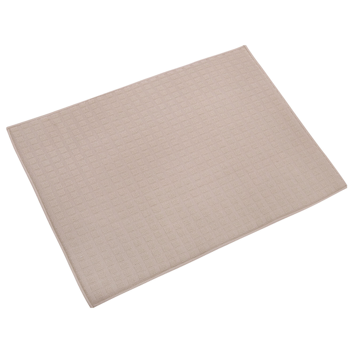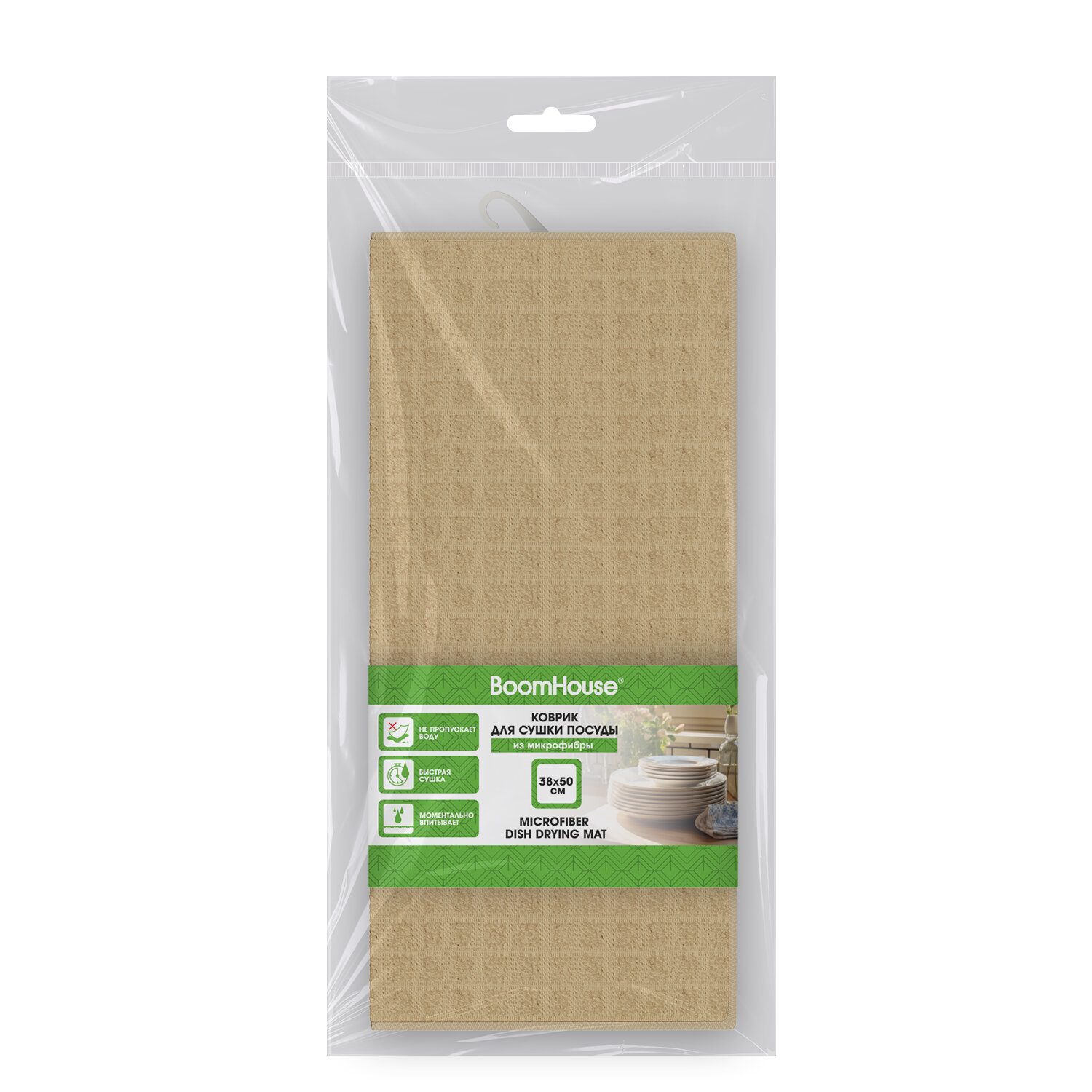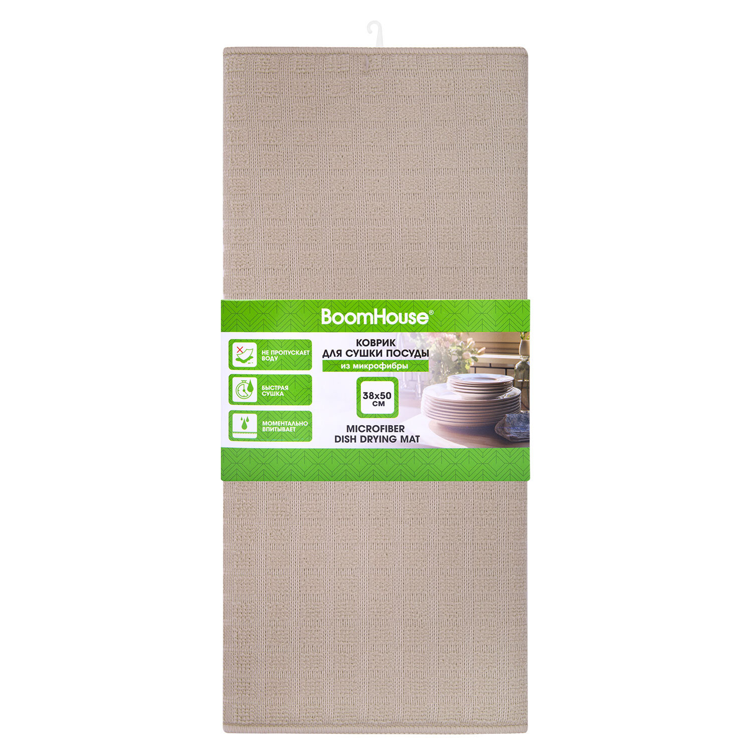 Коврик для сушки посуды из микрофибры, 38х50 см, вафельное плетение, БЕЖЕВЫЙ, 260 г/м2, BOOMHOUSE (БУМХАУС) Код товара: 701142 144,18 ₽ Купить Производитель:BoomHouse Коврик для сушки посуды BOOMHOUSE из микрофибры эффективно впитывает влагу и быстро сохнет, обеспечивая чистоту и порядок на кухне. Стильный и гигиеничный аксессуар идеально подойдёт для тех, кто заботится о собственном комфорте! Коврик для сушки посуды BOOMHOUSE – это современное гигиеничное решение для быстрой сушки любой посуды. Благодаря микрофибре и наличию внутренней прослойки из поролона коврик для сушки посуды BOOMHOUSE моментально впитывает всю влагу, гарантируя, что поверхность под ним и вокруг раковины останется идеально сухой, что предотвращает появление луж и размножение бактерий. Коврик быстро сохнет и прост в уходе. Внешние стороны коврика изготовлены из микрофибры с суммарной плотностью 260 г/м2 и вафельной фактурой. Края обработаны оверлоком, что гарантирует долговечность и отсутствие распускания даже после многократных стирок. Толщина – 5 мм. Размер коврика (38x50 см) оптимален для размещения на ограниченном пространстве, но при этом позволяет сушить сразу несколько тарелок или крупную кухонную утварь. Форма коврика – прямоугольная. Каждый коврик BOOMHOUSE поставляется в индивидуальном пакете, а также имеет удобный пластиковый крючок для вывешивания на стойку.Производство: КитайТип коврика: ВлаговпитывающийНазначение: Для сушки посудыМатериал: Микрофибра, поролонРазмер: 38х50 смТолщина: 5 ммРисунок: даТип рисунка: вафельная фактураЦвет: бежевыйВес: 104 грРазмер упаковки: 2.3 × 38.3 × 18.4 смОбъём: 0.0014 м3Промежуточная упаковка: 48 штТранспортная упаковка: 48 штШтрих-код: 4606224506784 Файлы Сертификат-1.jpg Сертификат-2.jpg