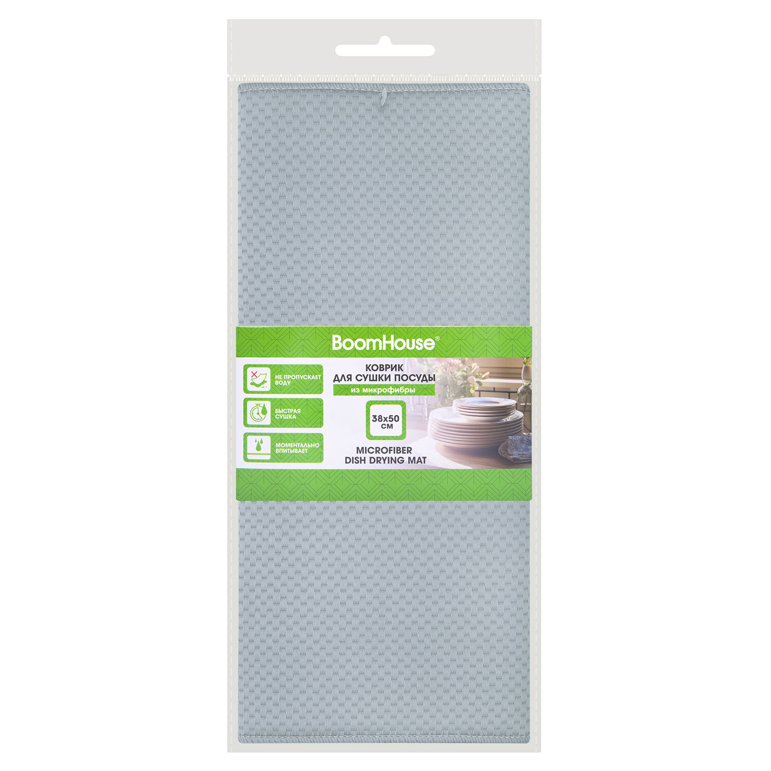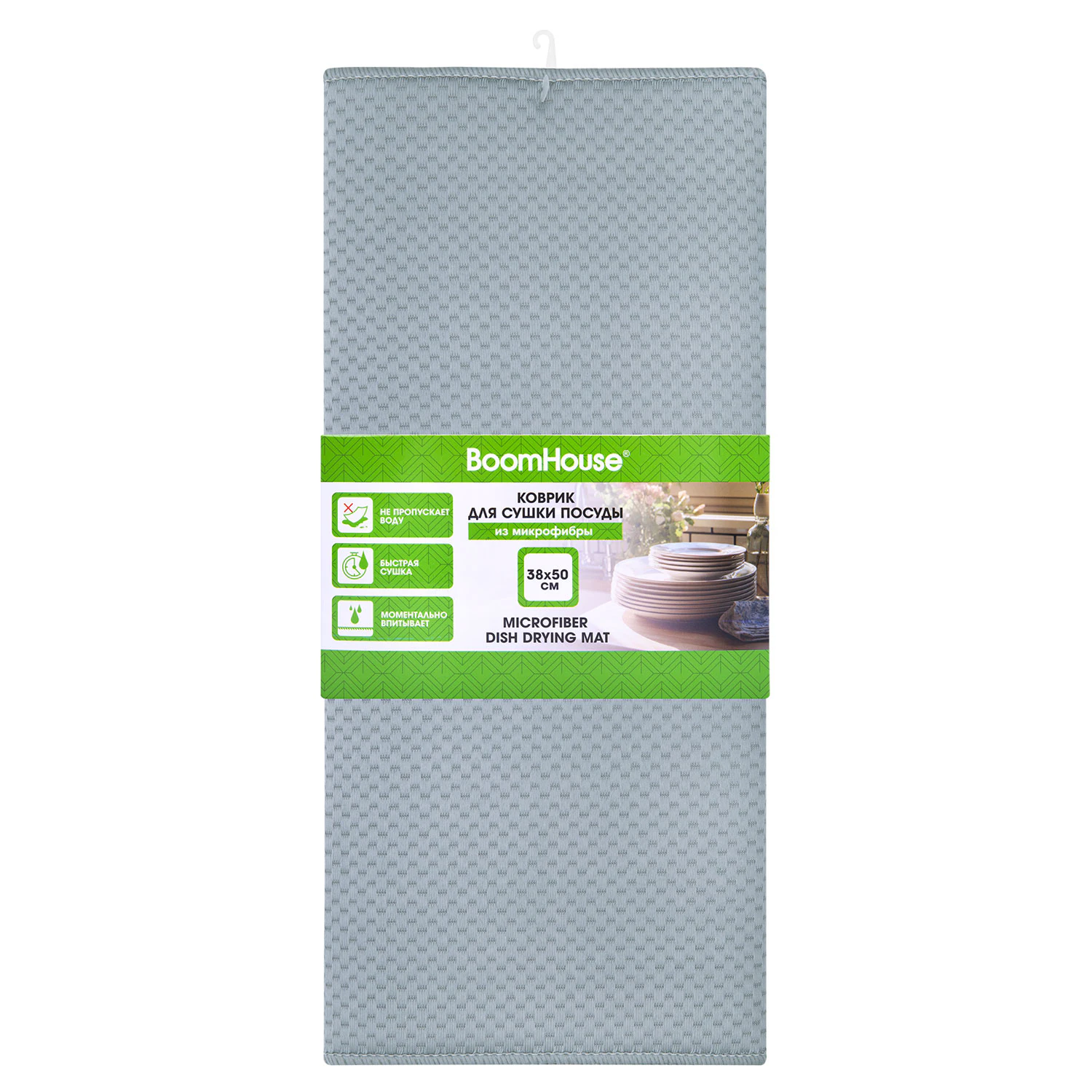 Коврик для сушки посуды из микрофибры, 38х50 см, "КЛЕТКА", сетка, СЕРЫЙ, 300 г/м2, BOOMHOUSE (БУМХАУС) Код товара: 701145 156,3 ₽ Купить Производитель:BoomHouse Коврик для сушки посуды BOOMHOUSE из микрофибры эффективно впитывает влагу и быстро сохнет, обеспечивая чистоту и порядок на кухне. Стильный и гигиеничный аксессуар идеально подойдёт для тех, кто заботится о собственном комфорте! Коврик для сушки посуды BOOMHOUSE – это современное гигиеничное решение для быстрой сушки любой посуды. Благодаря микрофибре и наличию внутренней прослойки из поролона коврик для сушки посуды BOOMHOUSE моментально впитывает всю влагу, гарантируя, что поверхность под ним и вокруг раковины останется идеально сухой, что предотвращает появление луж и размножение бактерий. Коврик быстро сохнет и прост в уходе. Внешние стороны коврика изготовлены из микрофибры с суммарной плотностью 300 г/м2. Одна из сторон имеет плетение в виде клетки, а другая представляет собой сетку для ускоренной сушки. Края обработаны оверлоком, что гарантирует долговечность и отсутствие распускания даже после многократных стирок. Толщина – 5 мм. Размер коврика (38x50 см) оптимален для размещения на ограниченном пространстве, но при этом позволяет сушить сразу несколько тарелок или крупную кухонную утварь. Форма коврика – прямоугольная. Каждый коврик BOOMHOUSE поставляется в индивидуальном пакете, а также имеет удобный пластиковый крючок для вывешивания на стойку.Производство: КитайТип коврика: ВлаговпитывающийНазначение: Для сушки посудыМатериал: Микрофибра, поролонРазмер: 38х50 смТолщина: 5 ммТип рисунка: плетение "Клетка"Цвет: серыйВес: 114 грРазмер упаковки: 2.1 × 39 × 17.4 смОбъём: 0.0016 м3Промежуточная упаковка: 48 штТранспортная упаковка: 48 штШтрих-код: 4606224506814 Файлы Сертификат-1.jpg Сертификат-2.jpg