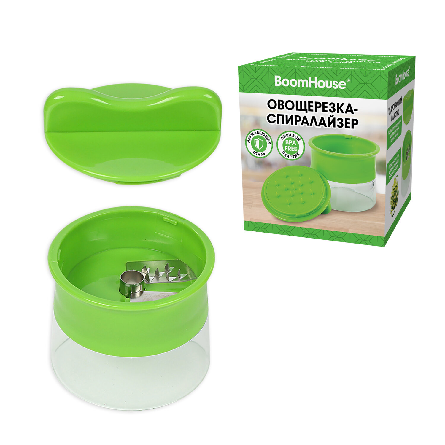 Овощерезка-спиралайзер, ручная, нержавеющая сталь, BOOMHOUSE (БУМХАУС) Код товара: 702097 227,19 ₽ Купить Производитель:BoomHouse Овощерезка-спиралайзер BOOMHOUSE – ваша надежная помощница на кухне. Благодаря острым лезвиям и прочной конструкции она сделает приготовление блюд не только максимально простым и комфортным, но и увлекательным. Овощерезка-спиралайзер BOOMHOUSE представляет из себя двухсоставную конструкцию из пластикового плододержателя для безопасного и комфортного использования инструмента и пластикового корпуса с лезвиями диаметром 3 мм из нержавеющей стали, которые быстро и качественно нарезают овощи ровной спиралью. Она идеально подходит для спиральной нарезки огурцов, моркови, цукини и других продуктов. Лезвие превосходно заточено, что обеспечивает качественную и быструю нарезку продуктов. Спиралайзер удобно держать, использовать и хранить благодаря оптимальному размеру – 9х7,7х7,7 см. А легкий вес изделия (90 г) позволит вам не уставать при долгом использовании. Рекомендации по использованию: 1) Сразу после каждого использования овощерезку следует очистить, тщательно вымыть и высушить. 2) При засорении лезвий не рекомендуется использовать абразивные средства или металлические скребки – можно воспользоваться щеткой, которой удобно очистить все поверхности. 3) Храните инструмент в сухом месте, вдали от агрессивных химикатов, которые могут вызвать коррозию, и металлических приборов, подверженных коррозии.Производство: КитайТип товара: овощерезкаНазначение: для овощейКоличество типов лезвий: 1Тип лезвий: спиральныеМатериал граней: Нержавеющая стальМатериал ручки: пластикЦвет ручки: салатовыйВысота: 9 смШирина: 7.7 смГлубина: 7.7 смУпаковка: коробкаВес: 126 грРазмер упаковки: 8.5 × 9.9 × 8.5 смОбъём: 0.0008 м3Промежуточная упаковка: 120 штТранспортная упаковка: 120 штШтрих-код: 4606224520049 Файлы