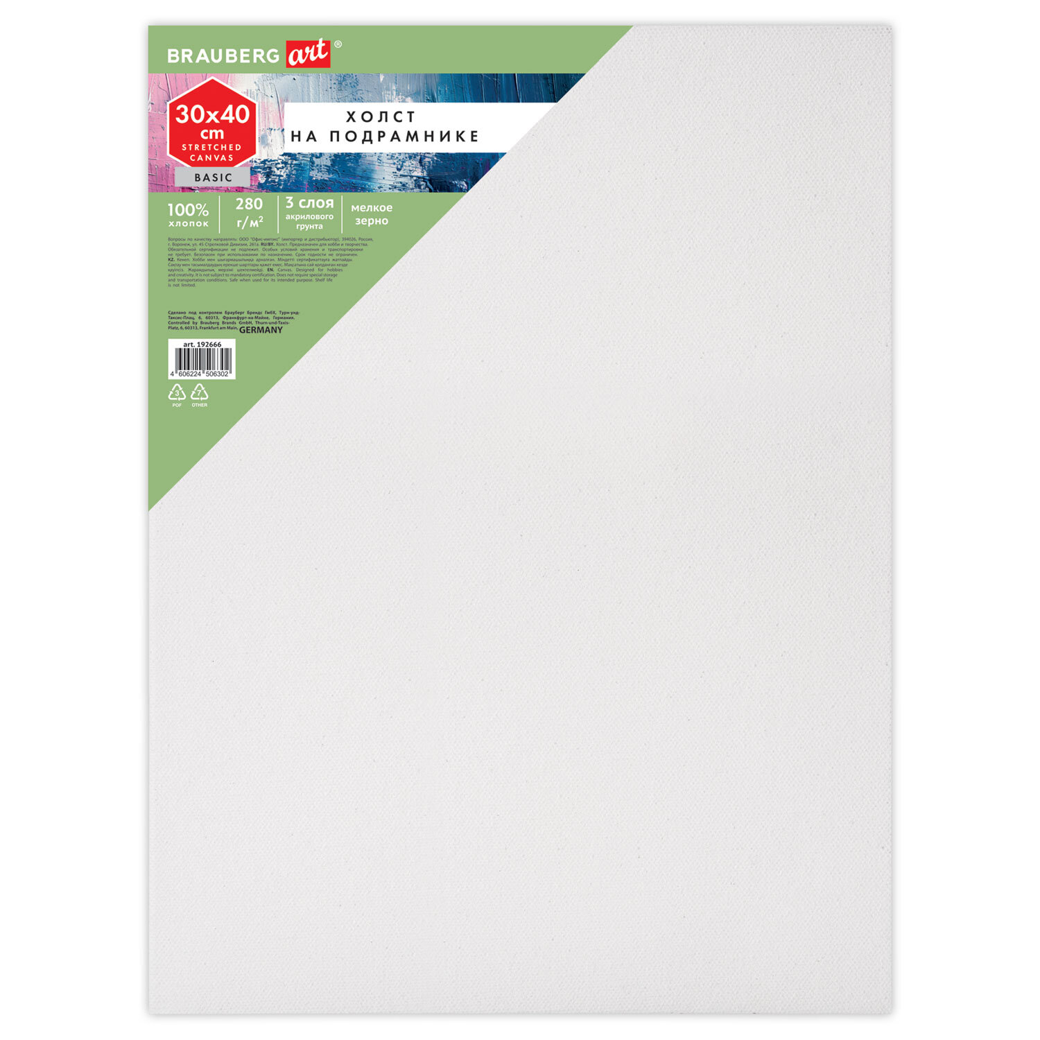 Холст на подрамнике BRAUBERG ART BASIC, 30х40 см, 280 г/м2, хлопок, мелкое зерно, грунт