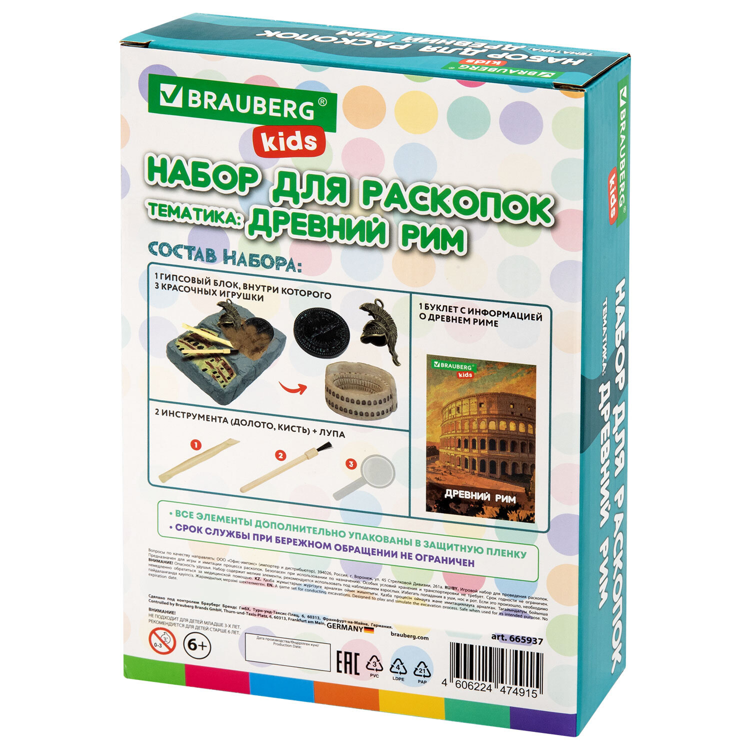 Набор для раскопок "Древний Рим" 16х23 см, инструменты, BRAUBERG KIDS Код товара: 665937 526,4 ₽ Купить Производитель:BRAUBERG KIDS Ваш маленький исследователь жаждет приключений и великих открытий? Тогда этот набор создан специально для него! Подарите вашему ребенку билет в эпоху великих цезарей и легионеров с набором для раскопок "Древний Рим" BRAUBERG KIDS! В набор входят: - гипсовый блок для раскопок; - 3 игрушки; - инструменты археолога; - буклет. Почему этот набор идеален для вашего ребенка? Игра знакомит с историей и культурой Древнего Рима в увлекательной форме, пробуждая интерес к науке и изучению мира. Раскопки отлично развивают мелкую моторику, усидчивость, концентрацию внимания и логическое мышление и дарят яркие эмоции от находки!Производство: КитайТип товара: набор для раскопокВозраст ребенка: 3+Комплектация: долото, карточка, кисточкаКоличество предметов в наборе: 1Серия: 1 гипсовый блок в набореСюжет: Древний РимМатериал: гипсДлина: 4.5 смШирина: 16 смГлубина: 23 смУпаковка: красочная коробкаВес: 453 грРазмер упаковки: 4.6 × 23.3 × 16.3 смОбъём: 0.0022 м3Промежуточная упаковка: 12 штТранспортная упаковка: 12 штШтрих-код: 4606224474915 Файлы Сертификат-1.jpg Сертификат-2.jpg Сертификат-3.jpg Сертификат-4.jpg