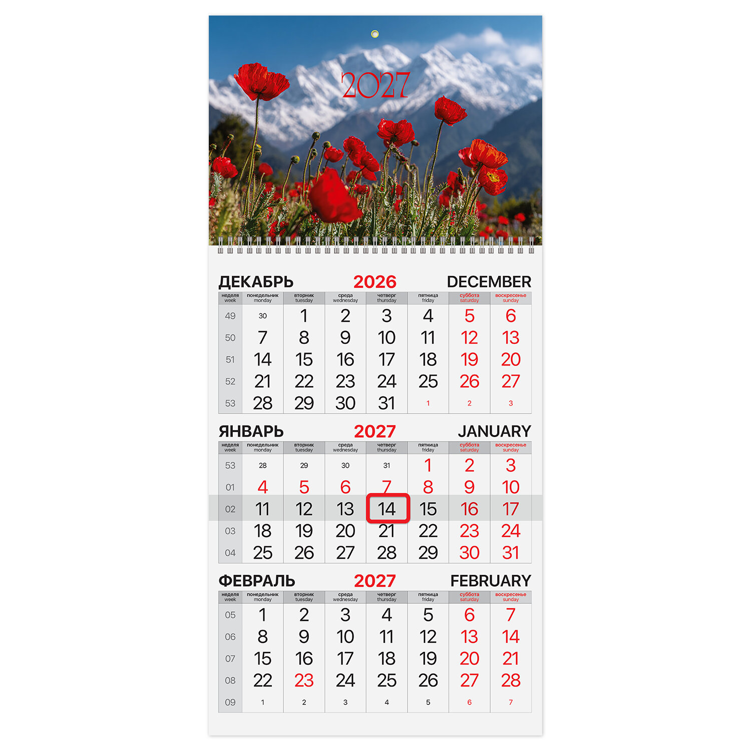 Календарь квартальный на 2027 г., 1 блок, 1 гребень, бегунок, офсет, BRAUBERG, "Маковое поле" Код товара: 118392 223,92 ₽ Купить Производитель:BRAUBERG Квартальный календарь BRAUBERG "Маковое поле" предназначен для делового планирования. Офисный календарь на 2027 год на гребне. Состоит из 1 блока с календарными сетками на три месяца – предыдущий, текущий и следующий. Блок календаря напечатан на офсетной бумаге плотностью 65 г/м2. Подложка изготовлена из картона плотностью 280 г/м2. Курсор-бегунок выделяет текущую дату. Вертикальный формат. Размер – 29,5х60 см. Календари ТМ BRAUBERG российского производства отпечатаны на современном высокотехнологичном оборудовании и соответствуют стандартам качества.Производство: РоссияТип календаря: квартальный на 1 гребнеГод: 2027Тип скрепления: гребеньРазмер: 29,5х60 смВнутренний блок: офсетная бумагаПлотность внутреннего блока: 65 г/м2Подложка: картонПлотность подложки: 280 г/м2Курсор: даПикколо: даДизайн: Маковое полеКалендарная сетка: с разбивкой на 3 месяцаИндивидуальная упаковка: даВес: 175 грРазмер упаковки: 0.7 × 44.3 × 29.8 смОбъём: 0.0005 м3Промежуточная упаковка: 30 штТранспортная упаковка: 30 штШтрих-код: 4606224528762 Файлы