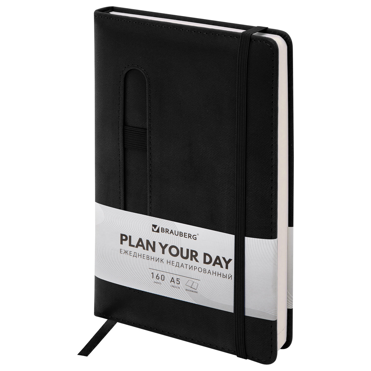 Ежедневник недатированный А5 148x218 мм BRAUBERG "Optimal", под кожу, 160 листов, резинка, держатель для ручки, черный Код товара: 118640 439,21 ₽ Купить Производитель:BRAUBERG Серия "Optimal" создана для тех, кто ценит естественность в дизайне и практичность в использовании. Внутренний блок включает 160 листов тонированной бумаги плотностью 70 г/м2. Каждая страница снабжена перфорированным уголком. Благодаря стандартному формату А5 (148х218 мм) недатированный ежедневник удобно использовать как в офисе, так и на выездных деловых встречах. Твердая обложка стилизована под старинную кожу в рубчик и выполнена в стильном черном цвете. Подходит для горячего тиснения. Модель оснащена резинкой-фиксатором, предотвращающей самопроизвольное открытие в сумке или портфеле. Также предусмотрены закладка-ляссе для быстрого доступа к нужной странице и держатель для ручки. Справочный материал дополнительно расширяет функциональность ежедневника. В конце внутреннего блока есть 4 страницы для записей и заметок.Производство: КитайТип ежедневника: недатированныйФормат: А5Обложка: под старинную кожуВид обложки: твердаяКоличество листов: 160 шт.Особенности: закладка-ляссе, перфорация уголков, поролоновая прослойка, прострочка по периметру, скругленные углы, справочная информация, фиксатор для ручкиСерия: OptimalГод: нетТип застежки: резинка-фиксаторОсновной цвет обложки: черныйДополнительный цвет обложки: нетЦвет среза: нетЦвет внутреннего блока: тонированныйПлотность внутреннего блока: 70 г/м2Высота строки для записи: 4 ммТип крепления: сшивкаПечать блока: 2 краскиПодходит для блинтового тиснения: даПодходит для тиснения фольгой: даПодходит для заливки полимерной смолой: даПодходит для УФ-печати: даДлина: 218 ммШирина: 148 ммТолщина: 20 ммВес: 440 грРазмер упаковки: 2.6 × 14.8 × 21.8 смОбъём: 0.001 м3Промежуточная упаковка: 20 штТранспортная упаковка: 20 штШтрих-код: 4606224538204 Файлы