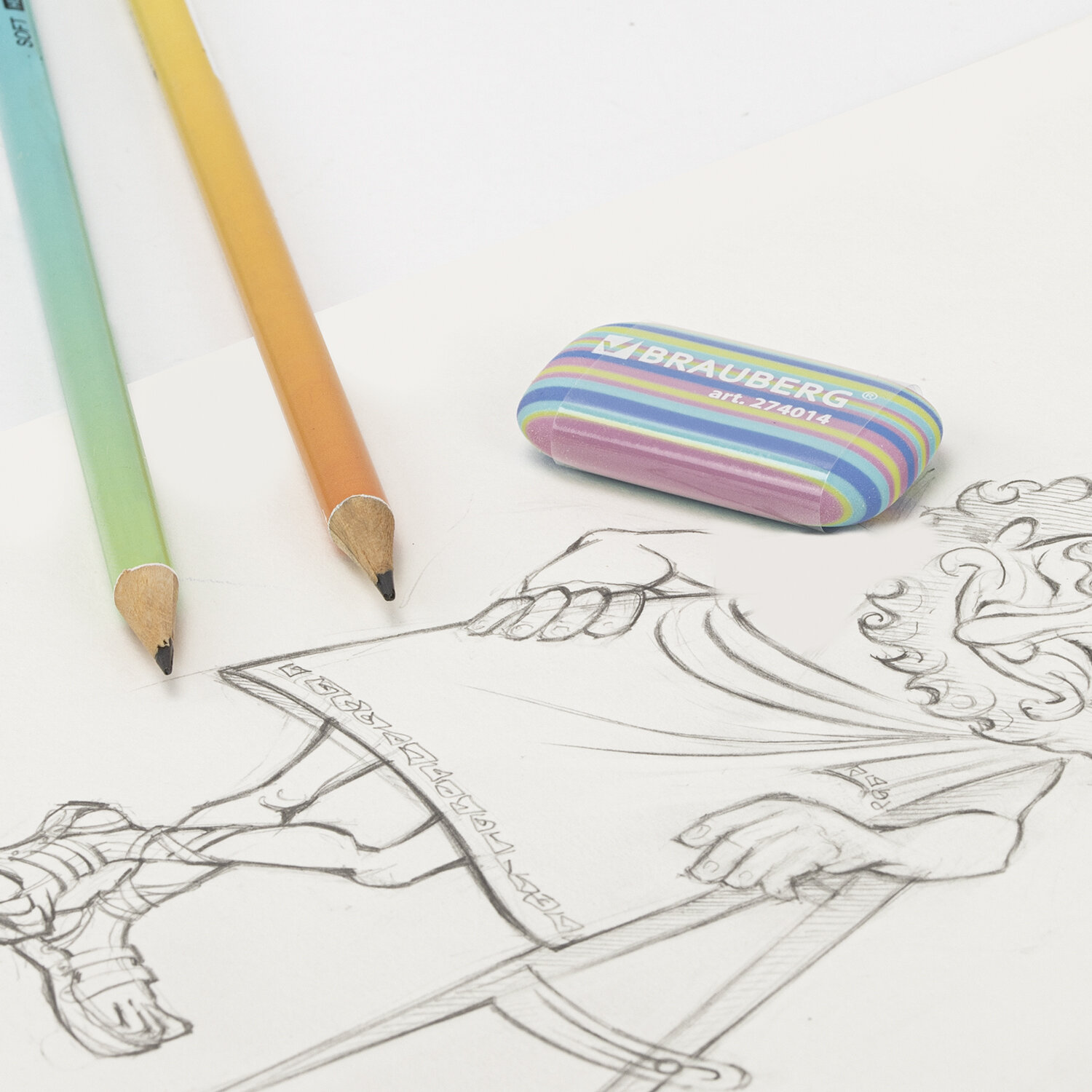 Ластик BRAUBERG "PASTEL STRIPES", 45х24х10 мм, пастельные цвета ассорти Код товара: 274014 40,33 ₽ Купить Производитель:BRAUBERG Ластик BRAUBERG "PASTEL STRIPES" предназначен для удаления надписей, сделанных чернографитными карандашами. Мягкий ластик прямоугольной формы со скругленными краями удобно лежит в руке. Представлен в трёх вариантах полосатого принта. Размер ластика – 45х24х10 мм. Упакован в прозрачный рукав. Универсальный дизайн и высокое качество делают его незаменимым помощником школьника и студента, художника, сотрудника офиса.Производство: КитайКоличество в упаковке: 1 шт.Материал: термопластичная резинаФорма: прямоугольнаяЦвет: пастельный ассортиСерия: PASTEL STRIPESНе оставляет бумажной пыли: даРазмер: 45х24х10 ммИндивидуальная упаковка: даУпаковка: дисплейВес: 16 грРазмер упаковки: 0.9 × 4.4 × 2.4 смПромежуточная упаковка: 24 штТранспортная упаковка: 288 штШтрих-код: 4606224512426 Файлы Сертификат-1.jpg Сертификат-2.jpg