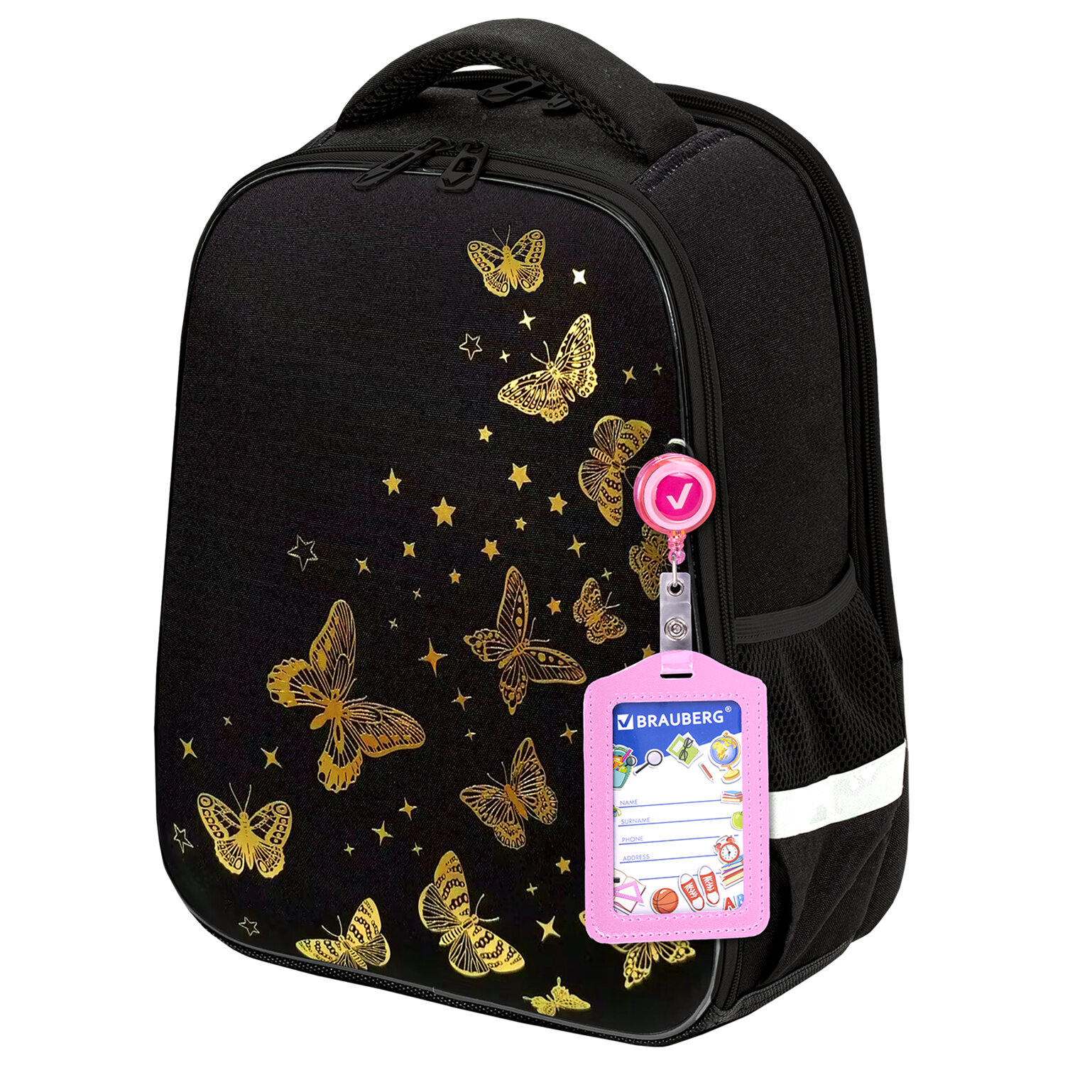 Ранец BRAUBERG FIT, 2 отделения, "Golden butterflies", 38х27х14 см Код товара: 274383 4 389,91 ₽ Купить Производитель:BRAUBERG Ранец BRAUBERG серии FIT изготовлен из легкого, формоустойчивого, экологичного материала EVA. Серия ранцев предназначена для учеников 7-11 лет. Ранцы имеют эргономичную вентилируемую спинку и фиксирующий нагрудный ремешок. Бейдж в комплекте. Ранцы BRAUBERG FIT протестированы НИИ гигиены и охраны здоровья детей и подростков ФГАУ "Национальный медицинский исследовательский центр здоровья детей". В рамках проведенных исследований* было установлено, что конструкции и материалы ученических ранцев соответствуют современным эргономическим требованиям и способствуют формированию здоровой осанки у школьников. Рисунок на передней панели ранца выполнен с применением золотой краски. Ранец покрыт высококачественной влагоотталкивающей нейлоновой тканью с приятной шелковистой поверхностью. Эта ткань легко чистится. Регулируемые по длине S-образные лямки можно оптимально подогнать под комплекцию ребенка, чтобы ранец носился с комфортом, несмотря на избыточный вес содержимого: учебников, тетрадей, канцтоваров. Регулируемый в двух направлениях нагрудный ремешок с фиксатором-защелкой поможет правильно распределить нагрузку. При правильной регулировке ранец практически не будет ощущаться на плечах и не будет доставлять дискомфорт. Удобная мягкая вентилируемая спинка с воздушными спонжевыми панелями разработана с учетом анатомических особенностей детей младшего школьного возраста. В процессе эксплуатации конструкция ранца позволит сохранить правильную осанку. В основном отделении ранца можно легко и быстро разместить учебники и тетради. Внутри основного отделения находится именная карточка школьника и большое отделение из сетки. Такая организация пространства поможет держать принадлежности в сохранности и приучить ребенка к порядку. Ранец широко раскрывается, повышая удобство использования, а благодаря боковым перегородкам содержимое не выскользнет из ранца. Ранец легко открывать и закрывать одной рукой с любой стороны – каждое отделение имеет долговечную реверсивную молнию с двумя металлическими бегунками. В боковых карманах на резинке можно разместить бутылочку, термос или зонт. На спинке ранца находится отделение на молнии для ценных вещей. Нести ранец будет удобно не только на плечах, но и в руке за прочную уплотненную ручку. Светоотражающие элементы ранца расположены спереди, на торцах и на лямках. Они необходимы для безопасности ребенка на дороге в темное время суток. Имеются резиновые ножки для устойчивости и защиты от загрязнений. В комплекте с ранцем поставляется бейдж для пропуска на рулетке. Для его надежной фиксации на одной из лямок ранца имеется специальное металлическое кольцо. Это очень удобно и экономит массу времени – ребенок просто прикладывает пропуск к турникету, вытягивая его на нужное расстояние, а рулетка автоматически возвращает его обратно. Пропуск всегда под рукой! Яркая этикетка расположена на передней стороне ранца, делая его более заметным на полке магазина, а информация в ней отражает главные потребительские свойства, помогая покупателю принять решение о покупке. Ранец упакован в плотный ПЭТ-пакет с замком Zip Lock, который сохранит качество и товарный вид при хранении и транспортировке. *Заключен