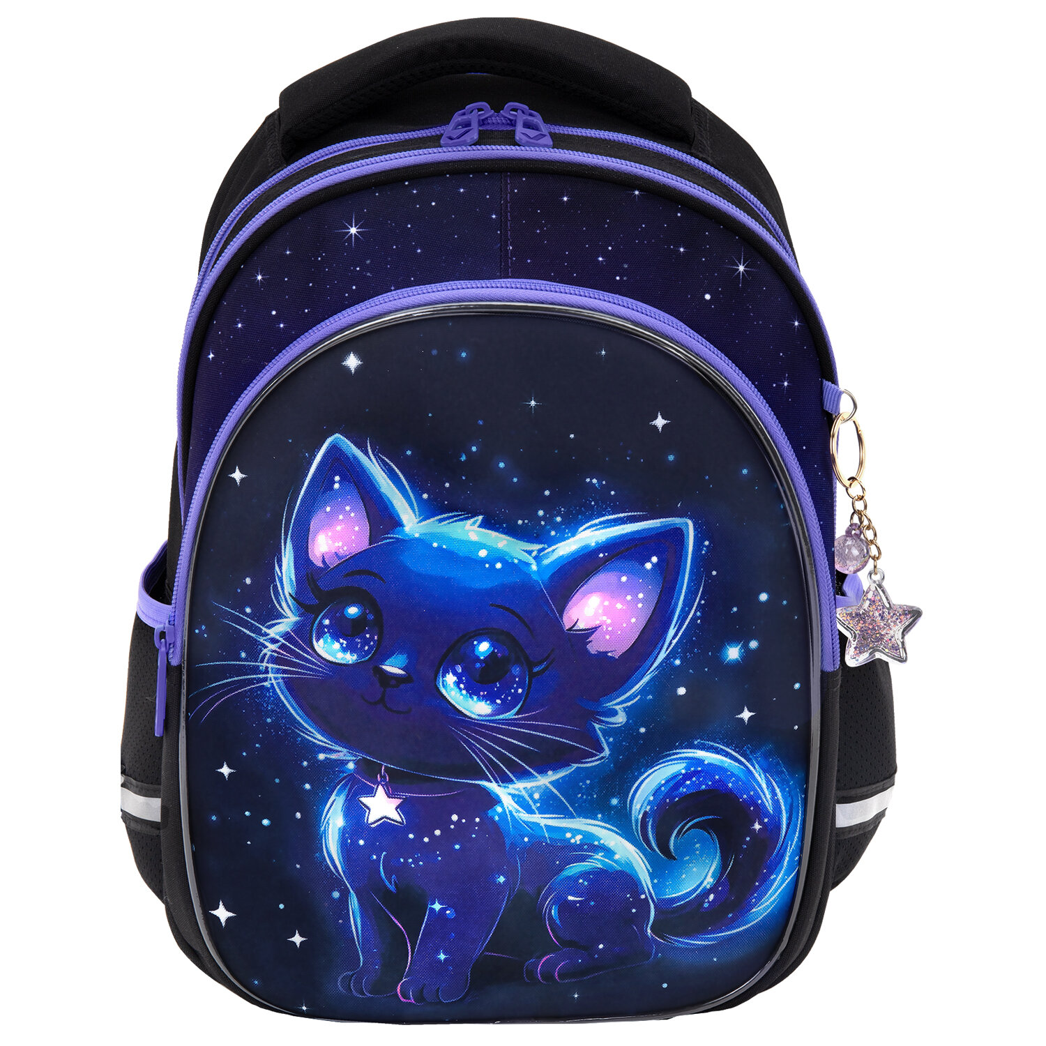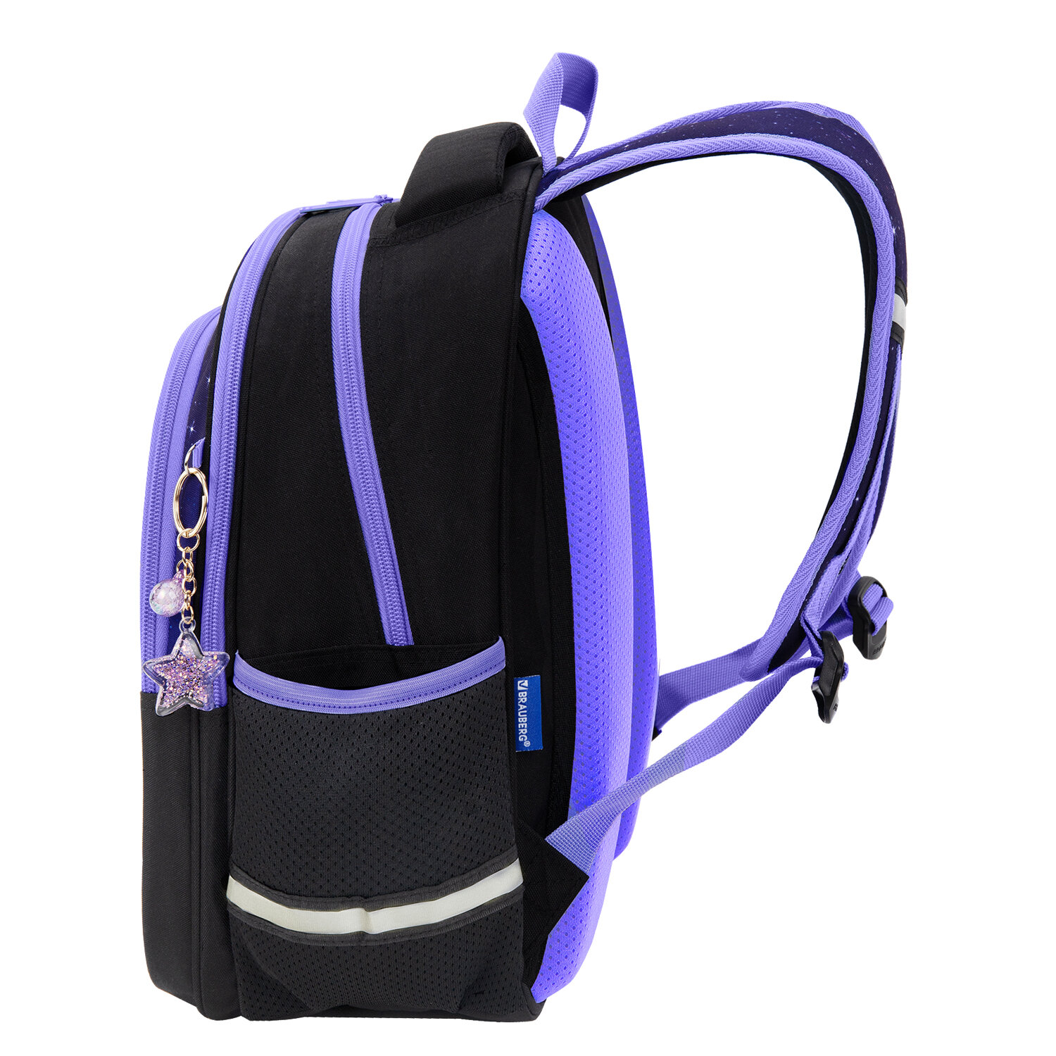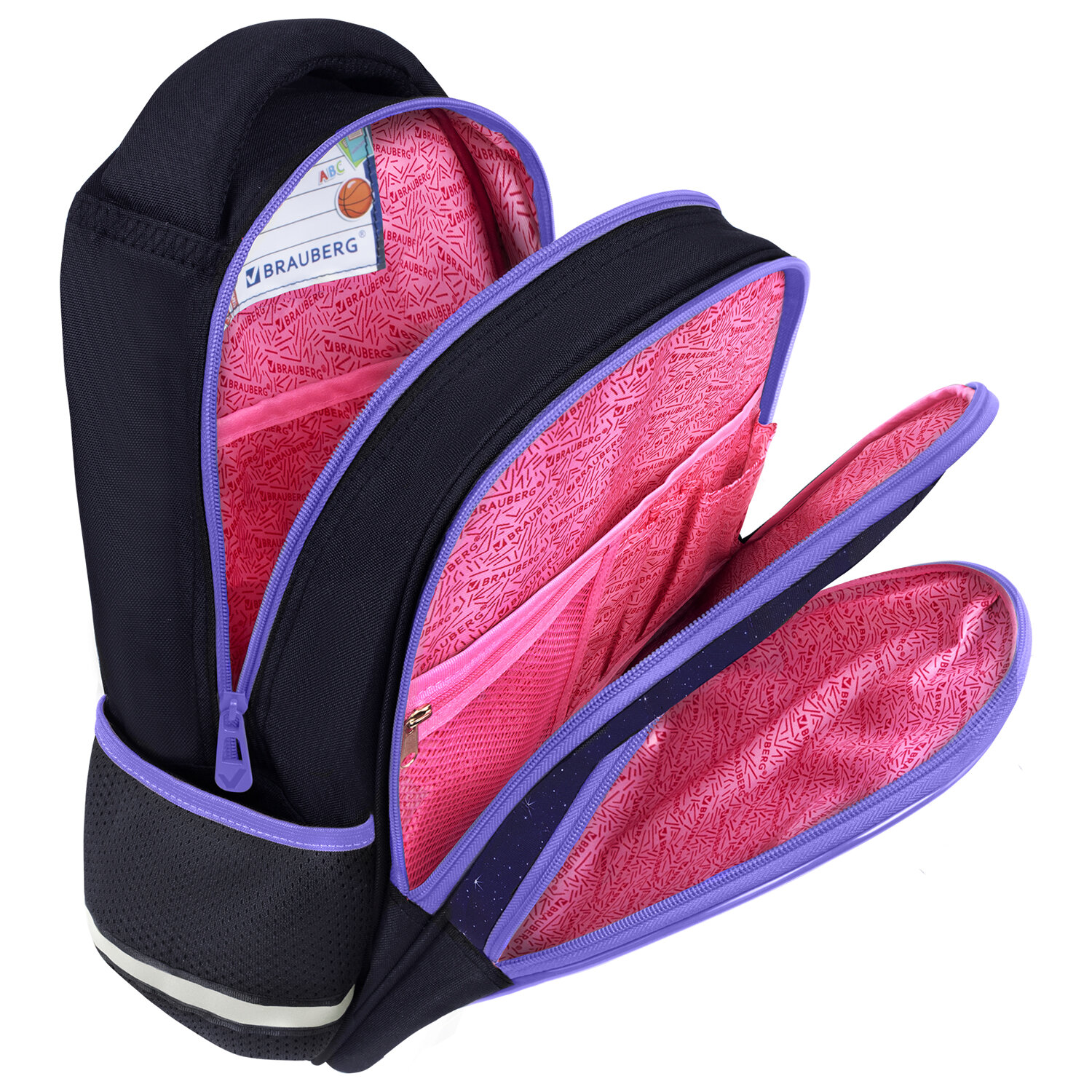 Рюкзак BRAUBERG OPTIMA, 2 отделения, с брелком, "Glowing kitten", 36х27х18 см Код товара: 274417 2 446,55 ₽ Купить Производитель:BRAUBERG Серия рюкзаков OPTIMA предназначена для учеников начальной школы. Передний карман рюкзака изготовлен из легкого формоустойчивого материала EVА. Благодаря усиленному дну рюкзак отлично держит форму и защищает содержимое от деформации. Основными преимуществами рюкзака являются: вместительность, компактный размер, эргономичность и меньший вес по сравнению с жесткокаркасным ранцем. Рюкзак изготовлен из высококачественной влагоотталкивающей нейлоновой ткани – кордура, в которой за счёт особой структуры нити достигнута четырёхкратная стойкость к истиранию по сравнению с обычным нейлоном. Ткань легко чистится. Декоративный брелок-подвеска в подарок! Широкие дышащие лямки имеют S-образную форму, что обеспечивает комфорт при ношении рюкзака. Удобная мягкая вентилируемая спинка с воздушными спонжевыми панелями разработана с учётом анатомических особенностей детей младшего и среднего школьного возраста. В процессе эксплуатации равномерное распределение нагрузки поможет сохранить правильную осанку. В основном отделении рюкзака можно легко разместить учебники и тетради формата А4+, воспользоваться дополнительным карманом. Также в основном отделении находится именная карточка школьника. Фронтальное отделение вмещает тетради и учебники формата А5; внутри расположены органайзер для канцтоваров, карман для телефона и отделение из сетки на молнии. Такая организация пространства поможет сохранить принадлежности в порядке и приучить ребёнка к аккуратности. Рюкзак легко открывать и закрывать одной рукой с любой стороны – каждое отделение оснащено долговечной реверсивной молнией с двумя металлическими бегунками. В боковых карманах на резинке можно разместить бутылочку, термос или зонт. Нести рюкзак будет удобно не только на плечах, но и в руке благодаря прочной уплотнённой ручке. Также имеется специальная петелька из плетёной нейлоновой нити для подвешивания рюкзака на крючок парты. Светоотражающие элементы расположены спереди, на торцах и на лямках. Они обеспечивают безопасность пользователя в тёмное время суток. В основном отделении рюкзака предусмотрено жёсткое откидное дно на липучке, которое усиливает каркас рюкзака. Яркая этикетка на передней стороне рюкзака делает его более заметным на полке магазина, а информация на ней отражает ключевые потребительские свойства, помогая покупателю принять решение о покупке. Рюкзак упакован в плотный ПЭТ-пакет с замком zip-lock, который сохраняет качество и товарный вид изделия при хранении и транспортировке.Производство: КитайПол ребенка: для девочекСерия: OPTIMAДизайн: Glowing kittenВозрастная группа: 7-10 летОбъем: 15 лТип спинки: анатомическая, вентилируемая, формоустойчиваяКоличество отделений: 2Перегородка в основном отделении: даКоличество карманов: 3 шт.Фронтальный карман: даБоковые карманы: даСветоотражающие элементы: даНаличие ручки для переноса: даРегулируемые лямки: даВентилируемые лямки: даМатериал спинки: спонжевые панели анатомической формыМатериал дна: плотная тканьВнутренний органайзер: даПерсонализация: именная карточкаЦвет: черный/фиолетовыйУзор: кошкаВысота: 36 смШирина: 27 смГлубина: 18 смДлина лямок: 72 смВес: 0.64 кгРазмер упаковки: 7 × 38.8 × 29.8 смОбъём: 0.0094 м3Пром
