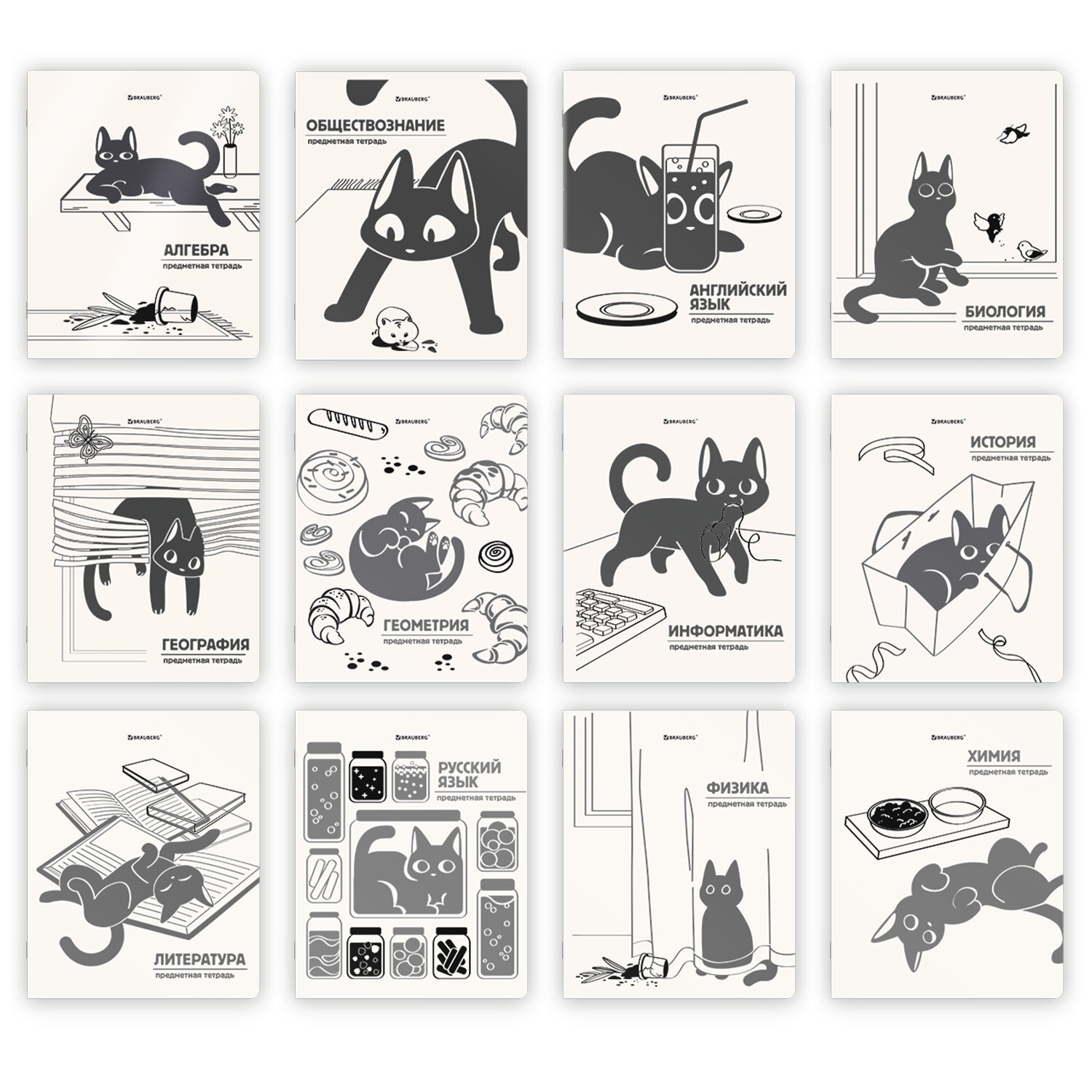 Тетради предметные, КОМПЛЕКТ 12 ПРЕДМЕТОВ 48 л., пластиковая обложка, BRAUBERG "КОТ-НЕПОСЕДА" Код товара: 405542 690,28 ₽ Купить Производитель:BRAUBERG Предметные тетради BRAUBERG из серии "КОТ-НЕПОСЕДА" предназначена для учащихся средних и старших классов. Выполнены в стильном и лаконичном дизайне. В комплекте 12 тетрадей: Алгебра, Английский язык, Биология, География, Геометрия, Обществознание, История, Информатика, Литература (в линию), Русский язык (в линию), Физика, Химия. Тетради формата А5 с двойной обложкой: внешняя выполнена из высококачественного износостойкого черного пластика, внутренняя – из качественной офсетной бумаги. Преимущество таких тетрадей заключается в том, что для сохранения внешнего вида не нужно покупать дополнительную обложку. На подкладных листах содержится справочный материал по предмету. Внутренний блок плотностью 60 г/м2 из офсетной бумаги содержит 48 листов в клетку с полями. Белизна блока – 100%. Скрепка надежно соединяет листы между собой.Производство: КитайПредмет: комплектСерия: Тетради предметные пластикКоличество листов: 48Формат: А5Линовка блока: клетка/линияКрасные поля: даТип скрепления: скобаВнутренний блок: офсетПлотность внутренного блока: 60 г/м2Белизна: 100 %Обложка: пластикДизайн: КОТ-НЕПОСЕДАПлотность обложки: 300 г/м2Тип спецэффектов на обложке: шелкографияСправочный материал: даДлина: 202 ммШирина: 165 ммИндивидуальная упаковка: даВес: 1,56 кгРазмер упаковки: 6 × 20.4 × 16.5 смОбъём: 0.0023 м3Промежуточная упаковка: 8 штТранспортная упаковка: 8 штШтрих-код: 4606224516219 Файлы Сертификат-1.jpg Сертификат-2.jpg