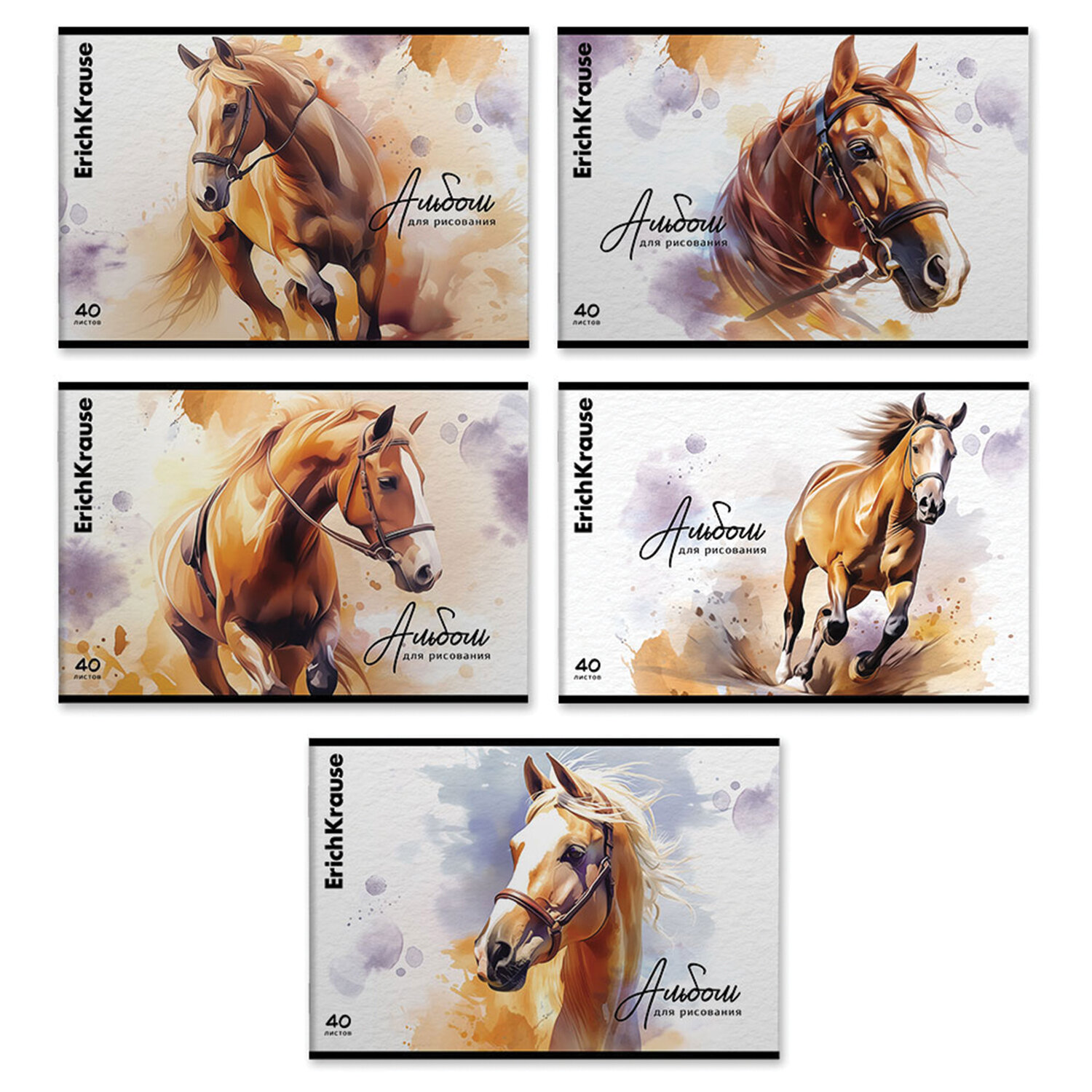Альбом для рисования, А4, 40 л., скоба, TWIN-лак, ERICH KRAUSE, 203х297 мм, "Wild Mane" (микс в спайке) Код товара: 107793 126,63 ₽ Купить Производитель:ERICH KRAUSE Альбомом для рисования "Wild Mane" от ERICH KRAUSE! Яркий дизайн, качественная бумага и надёжное крепление – идеальный выбор для юных художников, студентов художественных школ и всех, кто любит творить. Альбом для рисования формата А4 (203х297 мм). Обложка с отделкой TWIN-лак из высококачественного мелованного картона плотностью 170 г/м2. В блоке 40 листов. Бумага плотностью 100 г/м2. Тип скрепления – скоба. Альбомы разного дизайна упакованы в термоусадочную пленку по 5 штук. Альбомы ERICH KRAUSE российского производства отпечатаны на современном высокотехнологичном оборудовании и соответствуют стандартам качества.Производство: РоссияКоличество листов: 40Формат: А4Обложка: мелованный картонТип спецэффектов на обложке: TWIN-лакТип товара: Альбом для рисования ErichKrauseДизайн: Wild ManeТип скрепления: скобаПлотность бумаги: 100 г/м2Пол ребенка: для всехКоличество дизайнов в минимальной упаковке: 5 шт.Количество дизайнов в транспортной упаковке: 5 шт.Вес: 265 грРазмер упаковки: 0.6 × 29.3 × 20.3 смОбъём: 0.0005 м3Промежуточная упаковка: 5 штТранспортная упаковка: 30 штШтрих-код: 4601921634501 Файлы
