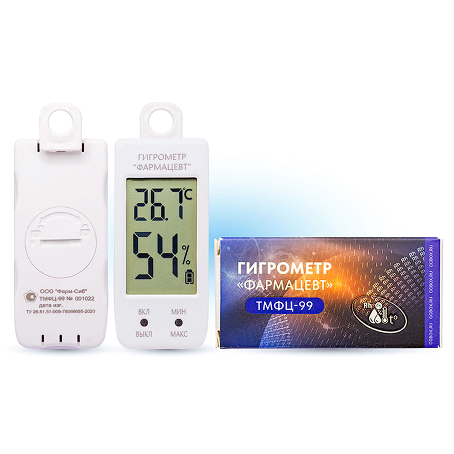Гигрометр-термометр электронный ФАРМ-СИБ ТМФЦ-99 с поверкой РФ Код товара: 671376 1 458,78 ₽ Купить Производитель:ФАРМ-СИБ ГИГРОМЕТР - это измерительный прибор, предназначенный для определения влажности воздуха и различных газов. ГИГРОМЕТР "ФАРМАЦЕВТ" является зарегистрированным средством измерения. Гигрометр служит надежным инструментом контроля температуры и влажности в процессах производственного контроля и облегчает работу ответственных специалистов при соблюдения требований установленных Приказами Росздравнадзора №646н, №706н, №9438, условий хранения и транспортировки лекарственных средств, вакцин и термолабильных лекарственных средств, микроклимата помещений лечебных учреждений, СанПин 2.1.3678-20, стандартов GPP и GDP. Гигрометр "Фармацевт" представляет собой автономное переносимое устройство, которое обеспечивает измерение и отображение относительной влажности и температуры воздуха в реальном времени на ж/к дисплее гигрометра; автоматическую запись и хранение измеренных значений с передачей на внешнее устройство. Гигрометр может применяться в медицинских, фармацевтических учреждениях, лабораториях и прочих организациях с целью измерения и контроля параметров относительной влажности и температуры воздуха. Снятие показаний гигрометра может осуществляться с компьютера при помощи оригинальной программы "FS Service", разработанной специально для гигрометров ТМФЦ. Государственная поверка: межповерочный интервал прибора - 24 месяца с даты проведения первичной поверки. ИСПОЛЬЗОВАНИЕ ГИГРОМЕТРА "ФАРМАЦЕВТ ПОЗВОЛЯЕТ: - Вести контроль относительной влажности и температуры в нерабочее время и нерабочие дни, все гигрометры снабжены энергонезависимой памятью. - Отказаться от трудоемких процедур при работе с психометрическими гигрометрами - такими как замена дистиллированной воды, создание принудительной аспирации, математических расчетов по психометрической таблице. - Использовать приборы надлежащего качества и точности измерений, не переплачивая за торговую марку или излишний функционал. Заменяемы элементы питания.Производство: РоссияТип товара: термогигрометрНазначение: для помещенийДиапазон измерения: от 0 до +50Цена деления: нет °CМатериал основания: пластикТермометрический элемент: электронный датчикСпособ крепления: гвоздь, саморезОсобенности: электронныйТермометр: даДлина: 72 ммШирина: 32 ммВысота: 18 ммВес: 0.032 кгРазмер упаковки: 2.5 × 7.6 × 3.6 смОбъём: 0.0001 м3Промежуточная упаковка: 125 штТранспортная упаковка: 125 штШтрих-код: 4673771600180 Файлы Сертификат-1.jpg Сертификат-2.jpg Сертификат-3.jpg Сертификат-4.jpg Сертификат-5.jpg Сертификат-6.jpg Сертификат-7.jpg Сертификат-8.jpg Сертификат-9.jpg Сертификат-10.jpg Сертификат-11.jpg Сертификат-12.jpg Сертификат-13.jpg Сертификат-14.jpg Сертификат-15.jpg Сертификат-16.jpg Сертификат-17.jpg Сертификат-18.jpg Сертификат-19.jpg Сертификат-20.jpg Сертификат-21.jpg Сертификат-22.jpg Сертификат-23.jpg Сертификат-24.jpg Сертификат-25.jpg Сертификат-26.jpg