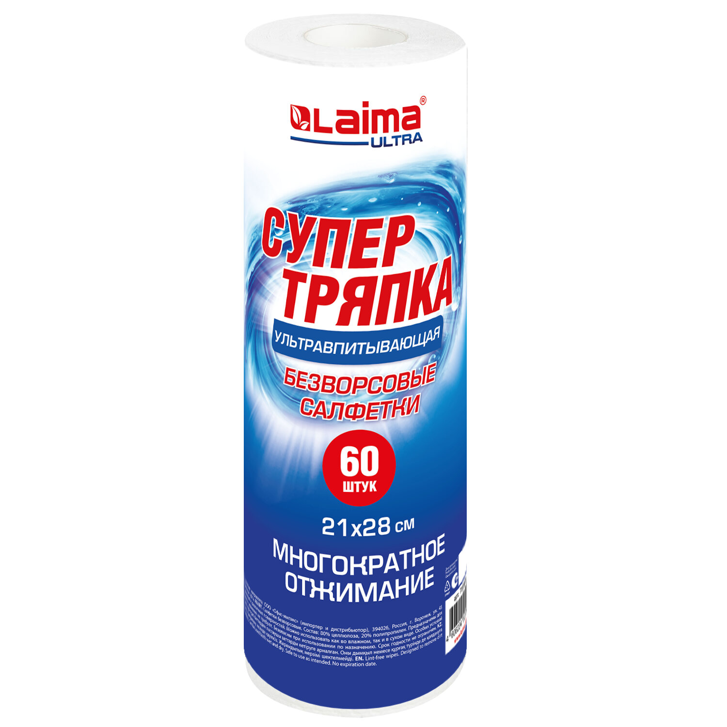 Салфетки БЕЗВОРСОВЫЕ 60 штук, 21х28 см, СУПЕРВПИТЫВАЮЩИЕ многоразовые, ЦЕЛЛЮЛОЗНЫЕ LAIMA ULTRA Код товара: 700989 237,14 ₽ Купить Производитель:LAIMA Откройте для себя идеальное решение для уборки с нашими супервпитывающими многоразовыми безворсовыми салфетками LAIMA ULTRA. Используются как для влажной, так и для сухой уборки, подойдут для любых задач в вашем доме! В рулоне 60 высококачественных целлюлозных салфеток. Супервпитывающие салфетки легко справятся с любыми жидкостями, что делает их идеальными для быстрого удаления пролитых загрязнений. Благодаря прочной структуре салфетки можно использовать многократно, что делает их экономичным и экологически чистым выбором. Салфетки не оставляют остаточных волокон и ворсинок, что особенно важно при уборке стеклянных и зеркальных поверхностей. Практичная картонная втулка позволяет удобно хранить и использовать салфетки, а специальная перфорация между салфетками позволяет легко оторвать нужное количество. Размер салфетки – 28х21 см. Количество салфеток – 60 штук. Цвет – белый. Диаметр втулки – 35 мм.Производство: КитайМатериал: целлюлоза/полипропиленПрименение: для влажной и сухой уборкиКоличество салфеток: 60 шт.Отрывная перфорация: даРазмер (ДхШ): 28х21 смЦвет: белыйСерия: ULTRAПлотность: 65 г/м2Упаковка: термоусадкаВес: 298 грРазмер упаковки: 28 × 9.1 × 9.1 смОбъём: 0.0026 м3Промежуточная упаковка: 42 штТранспортная упаковка: 42 штШтрих-код: 4606224505138 Файлы Сертификат-1.jpg Сертификат-2.jpg Сертификат-3.jpg