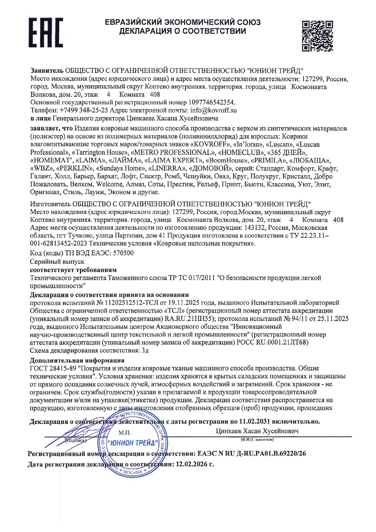 Коврик ДОРОЖКА 0,9х10 м, КОРИЧНЕВЫЙ, влаго-грязезащита, 430 г/м2, ребристая, LAIMA EXPERT Код товара: 701044 8 296,22 ₽ Купить Производитель:LAIMA Влаговпитывающий ворсовый коврик LAIMA предназначен для защиты помещения от уличной грязи, влаги и пыли. Пригоден для сухой и влажной чистки. Коврик влаго-грязезащитный LAIMA – надежный барьер на пути грязи и влаги. Изготовлен из высококачественного, износостойкого материала, он способен выдерживать интенсивную эксплуатацию, не теряя своих свойств. Нескользящая основа не дает влаге проникнуть на пол, предотвращает скольжение и возможные травмы при падении. Ворсовое покрытие удерживает влагу и грязь. Основные характеристики: Размер – 90х1000 см. Толщина – 7 мм. Ворс изготовлен из 100% полиэстера. Коврик выполнен в коричневом цвете.Производство: РоссияНазначение: влаго-грязезащитныйРазмер (ШхД): 90х1000 смТолщина: 7 ммМатериал основы: ворс, ПВХМатериал ворса: 100% полиэстерМетод производства: вулканизацияЦвет: коричневыйВес: 20,42 кгРазмер упаковки: 26 × 91.5 × 32 смОбъём: 0.0761 м3Промежуточная упаковка: 1 штТранспортная упаковка: 1 штШтрих-код: 4606224505824 Файлы Сертификат-1.jpg Сертификат-2.jpg Сертификат-3.jpg