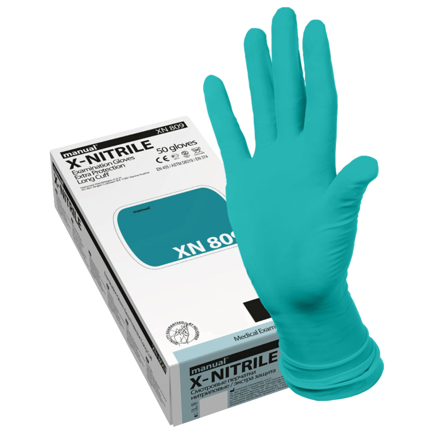 Перчатки нитриловые смотровые особо прочные удлиненные MANUAL XN809, Австрия, 25 пар (50 шт.), размер L (большой) Код товара: 631738 1 361,25 ₽ Купить Производитель:Manual Особо прочные перчатки смотровые нитриловые MANUAL XN809, устойчивые к механическим повреждениям, с высоким уровнем защиты от воздействия химически агрессивных сред. Высокая механическая прочность, увеличенная толщина. Гипоаллергенные за счет отсутствия протеинов латекса и пудры. Имеют удлиненную манжету от 310 мм для более надежной защиты области предплечья. Обладают высокой устойчивостью к спиртам, спиртосодержащим веществам и дезинфектантам. Текстурированные по всей поверхности для более надежной фиксации инструмента в сухой и влажной среде. Возможно использование для патанатомии и хозяйственных нужд. Сертифицированы для контакта с пищей. Надежность перчатки подтверждена тестами на вирусопроницаемость, химическую устойчивость и механическую прочность в соответствии с европейскими стандартами. Правила применения: • Предназначены для использования в качестве средства индивидуальной защиты рук. • Одноразовые. • Недопустимо использование при нарушении целостности перчаток. • Недопустимо использование перчаток несоответствующего размера. • Не рекомендуется длительное (более 2 часов) ношение перчаток. • При частом и длительном ношении перчаток рекомендуется соответствующий уход за кожей рук. Предупреждения: • Возможна индивидуальная непереносимость материалов. • При появлении раздражения кожи прекратите использовать перчатки и обратитесь за консультацией к врачу. • Возможно проявление дерматитов и иных кожных раздражений как следствие неправильного ухода за кожей рук и жестких условий изоляции кожи рук от естественной вентиляции воздухом. • Не обеспечивают гарантированной защиты от проколов и порезов. Условия хранения: Хранить в сухом месте при температуре от +10 до +40 °С. Избегать воздействия озона и прямого солнечного света. Размер, номер партии и срок годности указаны на упаковке. Зарегистрированы Федеральной службой по надзору в сфере здравоохранения. Сертифицированы для контакта с пищевыми продуктами и средами. Соответствуют требованиям Технического регламента Таможенного Союза ТР ТС 019/2011 "О безопасности средств индивидуальной защиты". ГОСТ Р 52239-2004.Производство: АвстрияМатериал: нитрилРазмер перчаток: 8-9 (L)Серия: XN809Тип: смотровыеНеопудренные: даТип поверхности: текстурированныеХлоринация: даФорма: плоскаяОсобенности: особо прочные, удлиненная манжетаСоответствует требованиям ГОСТа: ГОСТ Р 52239-2004Количество в комплекте: 25 парШирина ладони: 106 ммЦвет: сине-зеленыйВид упаковки: картонная коробкаВес: 628 грРазмер упаковки: 6.5 × 26.6 × 11.8 смОбъём: 0.0023 м3Промежуточная упаковка: 10 штТранспортная упаковка: 10 штШтрих-код: 9120029750494 Файлы