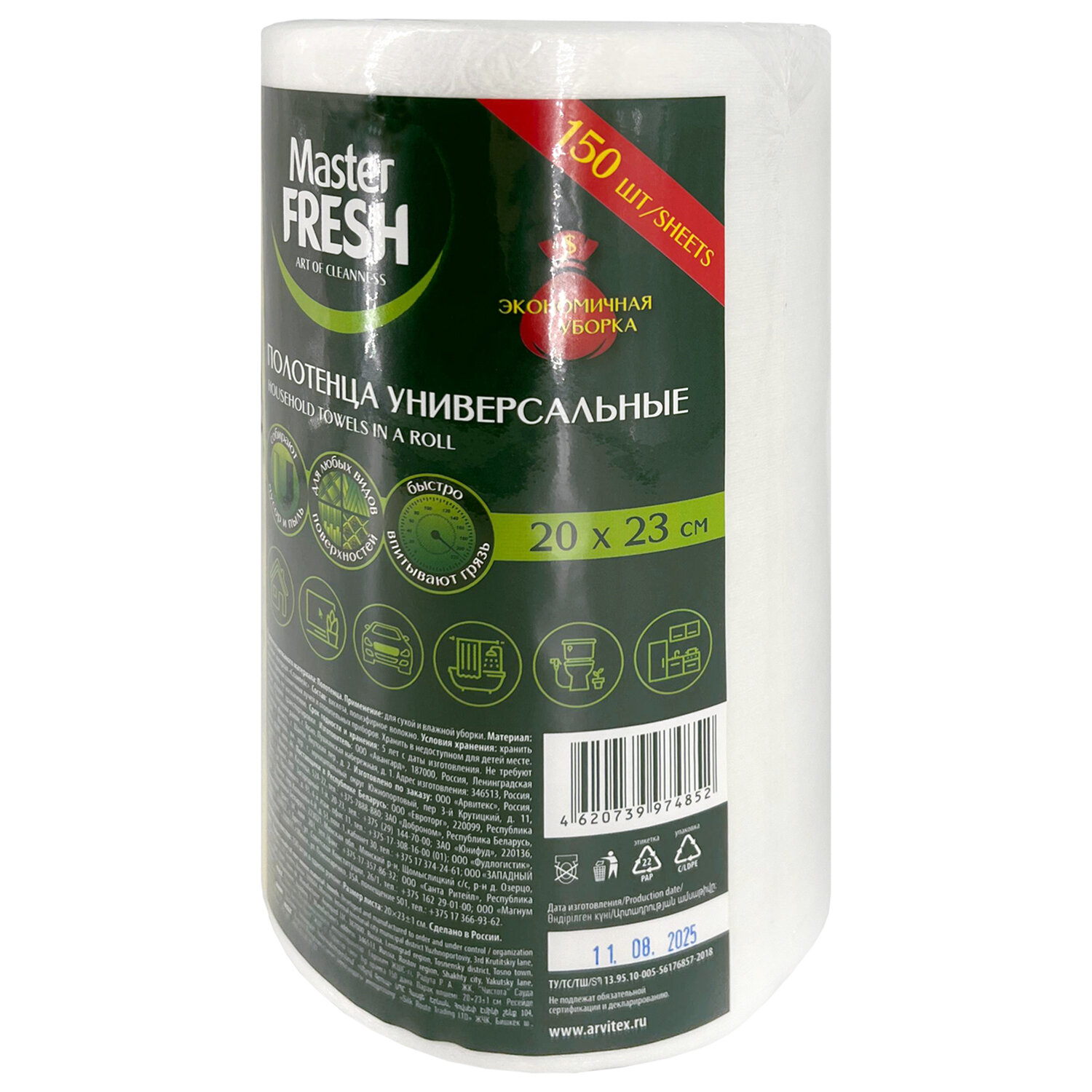Универсальные полотенца в рулоне 150 шт., 20х23 см, 70% вискозы (спанлейс), Master FR Код товара: 703039 482,73 ₽ Купить Производитель:Master FRESH Производство: РоссияМатериал: вискоза-полиэфирПрименение: универсальноеКоличество салфеток: 150 шт.Отрывная перфорация: даРазмер (ДхШ): 20х23 смЦвет: белыйУпаковка: рулонВес: 300 грРазмер упаковки: 12.5 × 12.5 × 20 смОбъём: 0.003 м3Промежуточная упаковка: 12 штТранспортная упаковка: 12 штШтрих-код: 4620739974852 Файлы