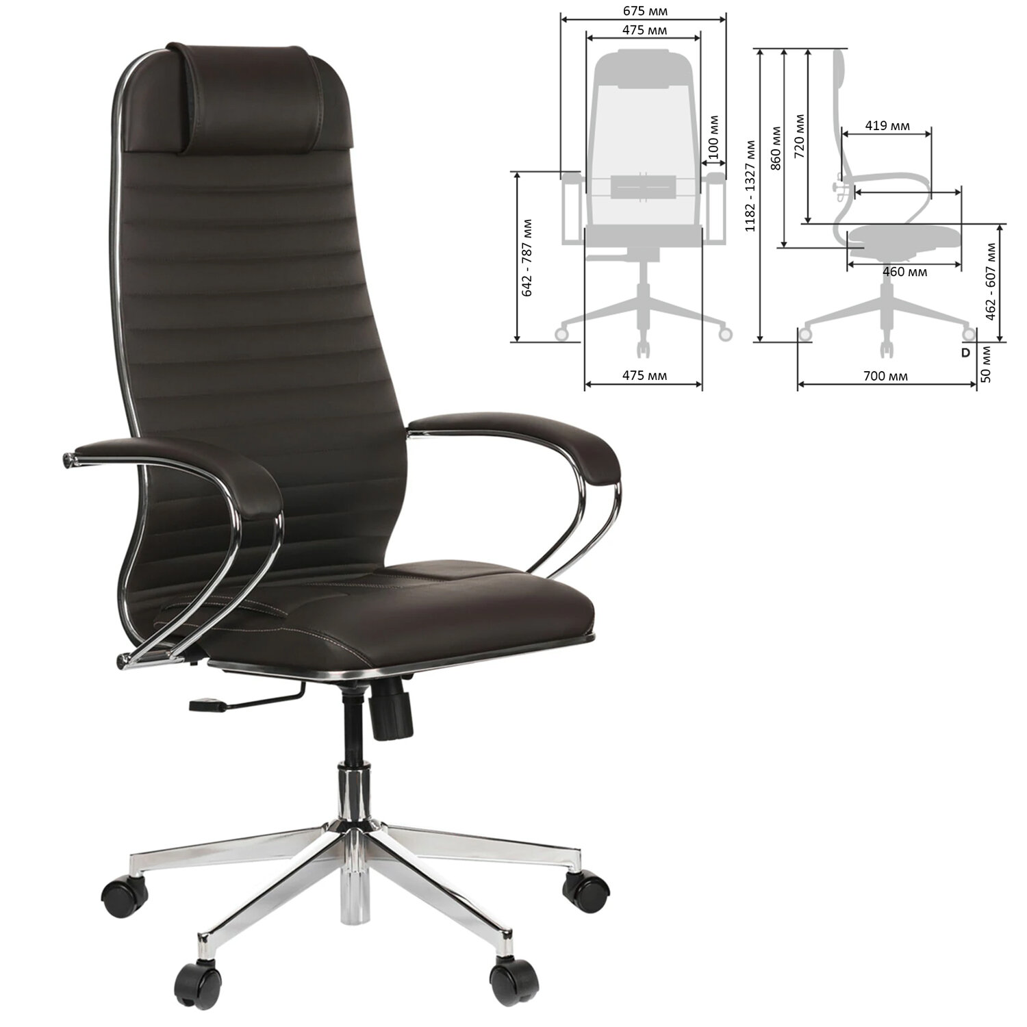 Кресло офисное МЕТТА "К-6" хром, экокожа, сиденье и спинка мягкие, темно-коричневое Код товара: 532454 27 717,8 ₽ Купить Производитель:МЕТТА Современное технологичное кресло на сверхпрочном стальном каркасе. Отличительной особенностью кресел МЕТТА является узнаваемый дизайн, абсолютная эргономика, соответствующая анатомической форме человека и набор индивидуальных регулировок для каждого. Сверхпрочный стальной каркас. Спинка мягкая высокая, эргономичной формы с ярко выраженной поясничной поддержкой. Эргогиб, как у кресел SAMURAI. Спинка имеет стальной регулируемый поясничный подпор. Спинка снабжена мягким комфортным подголовником. Сиденье мягкое, объемное на столярном каркасе с хромированным молдингом. Уникальная форма передней части сиденья исключает сдавливание сосудов ног, сохраняя ощущение легкости в ногах. Регулировка глубины сиденья за счет перемещения места крепления сидения (450-480 мм). Обивка спинки и сиденья: износостойкий, дышащий, экологичный материал – экокожа Extra с прошивкой. Подлокотники стальные классические покрытые зеркальным хромом, с мягкими накладками из экокожи. Пятилучие – современного дизайна, металлическое хромированное. Колеса-ролики имеют полиуретановое покрытие, обеспечивающее бесшумный ход и защиту пола от повреждений. Модель оснащена механизмом качания "Top-Gun" с регулировкой под вес и возможностью фиксации в рабочем положении. Современный дизайн и максимальный комфорт по доступной цене.Производство: РоссияМатериал обивки: экокожа ExtraМаксимальная нагрузка: до 150 кгЦвет обивки: темно-коричневыйТип механизма кресла: "Топ-ган" - качание с регулировкой под вес и фиксацией в 1 положенииКрестовина (пятилучие): металл/хромированный металлПодлокотники: хром с накладкамиМинимальная высота кресла: 1182 ммМаксимальная высота кресла: 1327 ммШирина кресла: 675 ммМинимальная высота до сиденья: 462 ммМаксимальная высота до сиденья: 607 ммСиденье ширина: 475 ммСиденье глубина: 460 ммСпинка ширина: 475 ммСпинка высота: 860 ммСерия: К-6Соответствует требованиям ГОСТа: ГОСТ 19917-93Поставляется в разобранном виде: даВес: 19,96 кгРазмер упаковки: 92 × 68.6 × 25.4 смОбъём: 0.1603 м3Промежуточная упаковка: 1 штТранспортная упаковка: 1 штШтрих-код: 4665316515400 Файлы Приложение-1.pdf Сертификат-1.jpg Сертификат-2.jpg Сертификат-3.jpg Сертификат-4.jpg Сертификат-5.jpg Сертификат-6.jpg